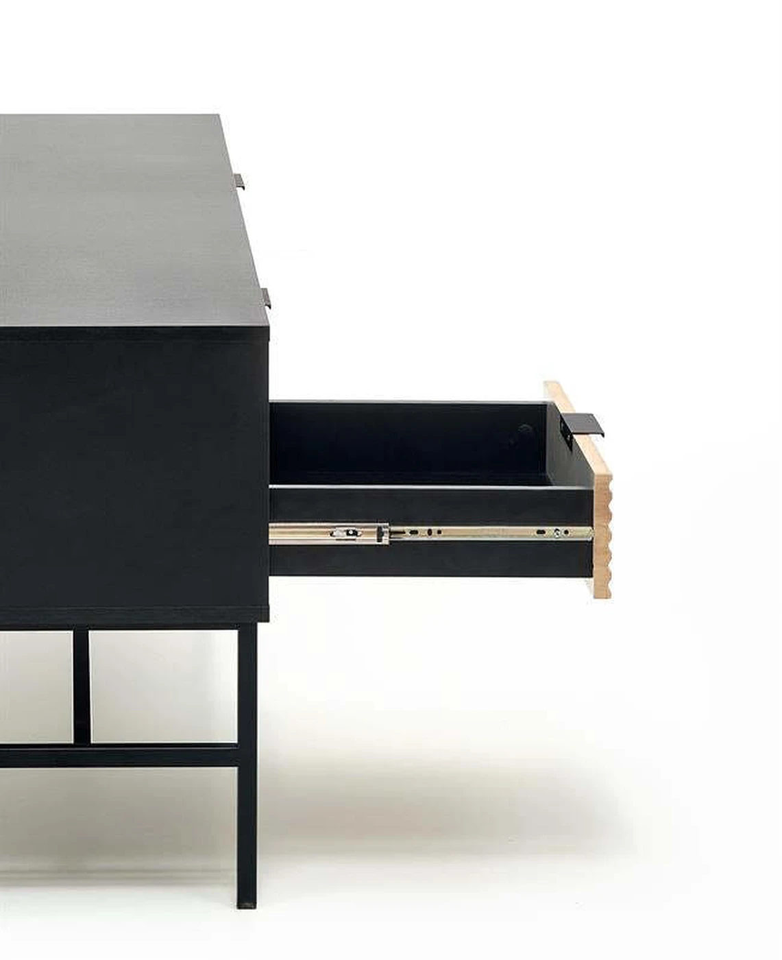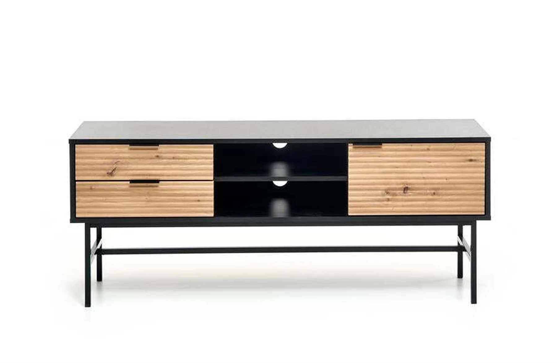 TV stovas, matmenys: 150/40/61 cm, medžiaga: laminuota MDF / laminuota medžio drožlių plokštė / milteliniu būdu dažytas plienas, spalva: amatinis ąžuolas / juoda
