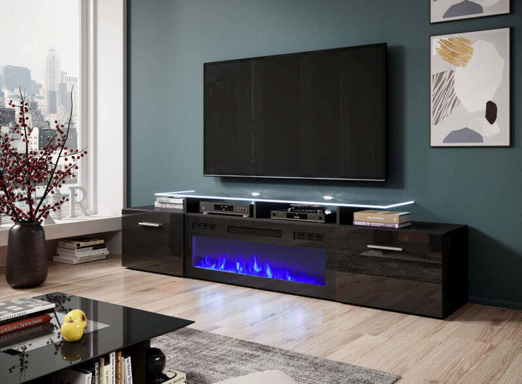galimybė įsirengti židinį, užsakoma atskirai CAMA-KOMINEK. Kaina su židiniu 465 EUR. matmenys: a/s/g- 48/190/37 cm Korpusas: laminuota medžio drožlių plokštė 16mm, CARB standartas Priekinės dalys: blizgi MDF plokštė 16 mm su CARB standartu Kojos: plastikinė medžiaga Rankena: plastikinė medžiaga Stiklas: 8 mm grūdintas stiklas, trapecijos formos pjaustytuvas