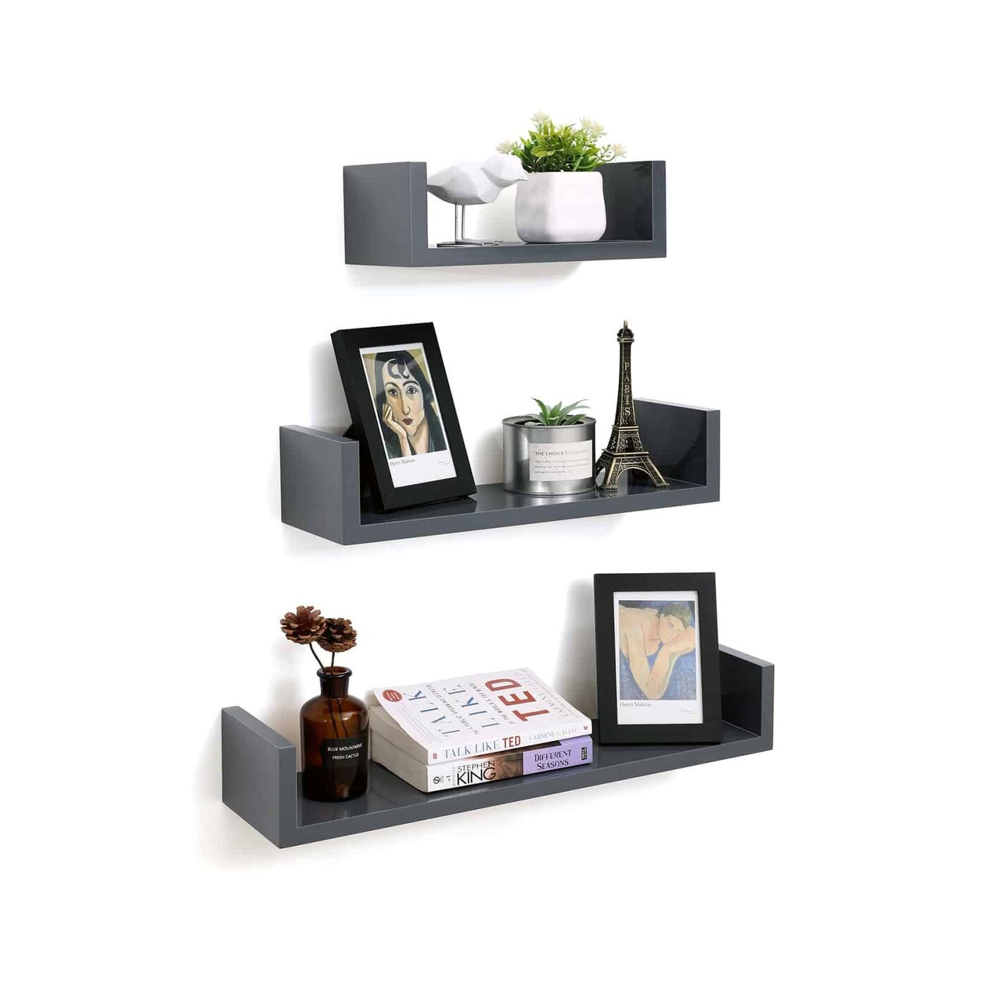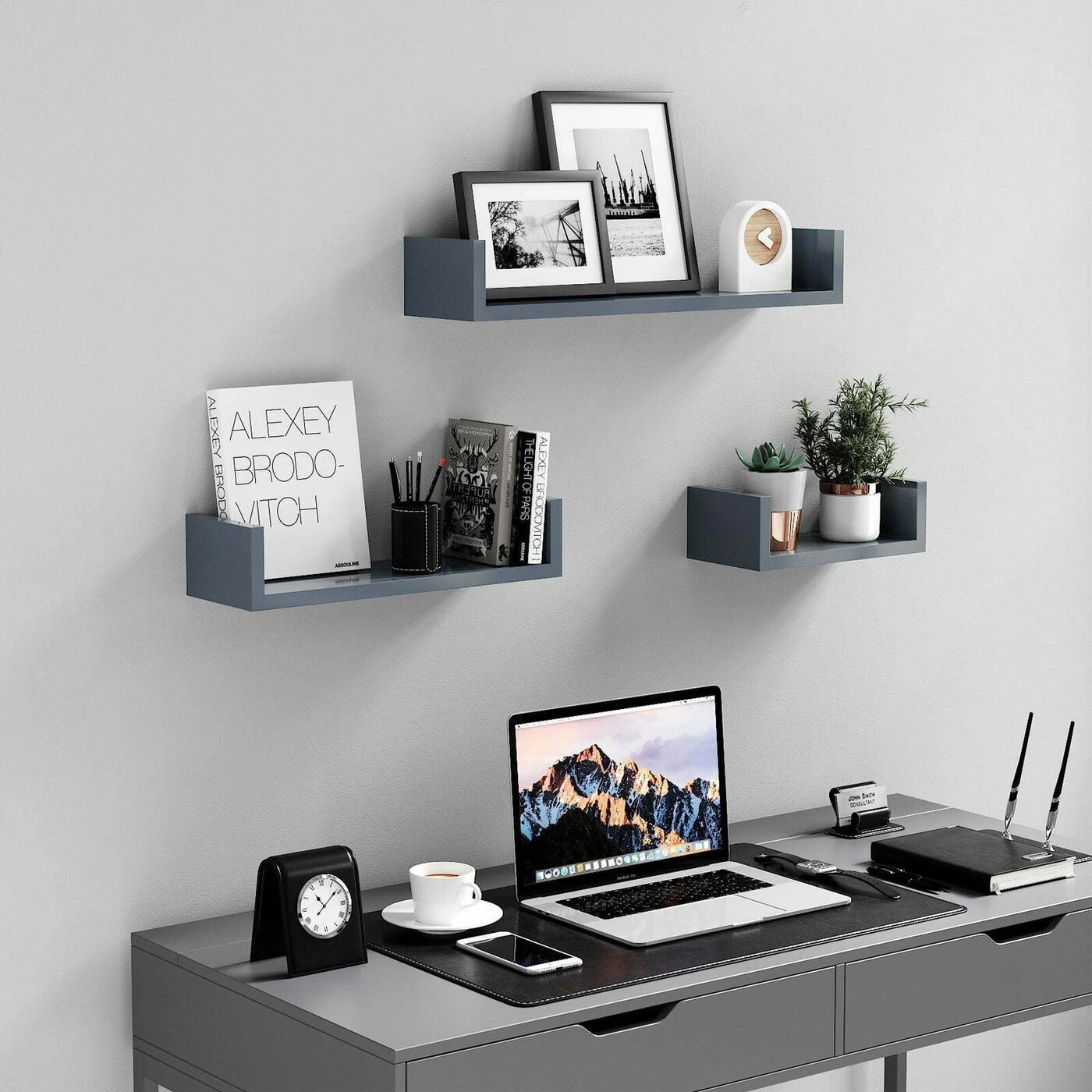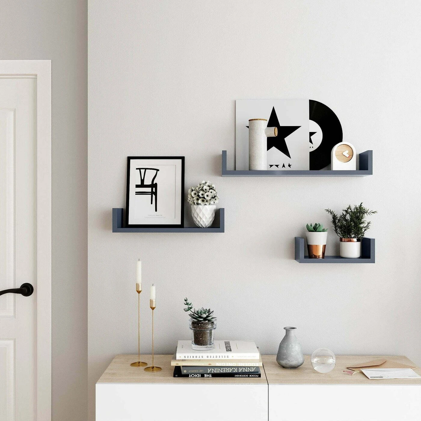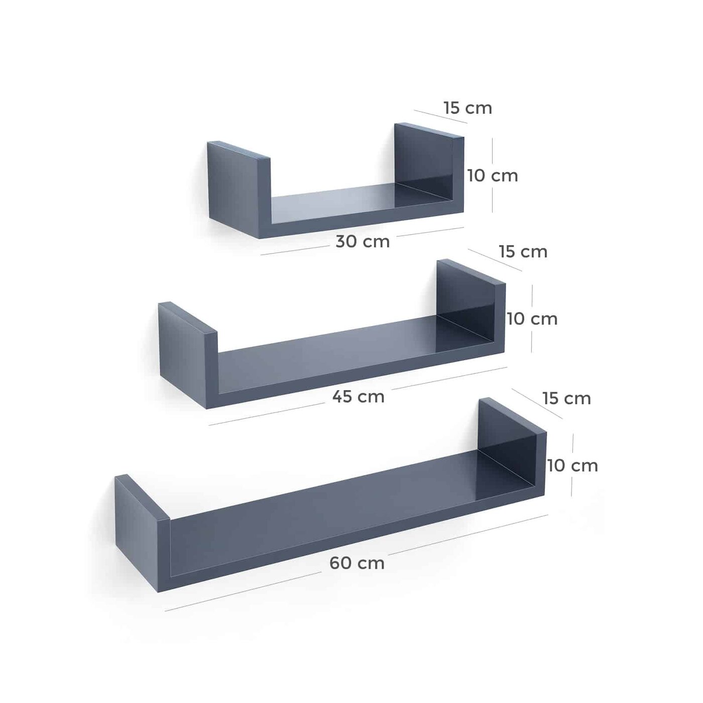 Aprašymas buvo automatiškai išverstas, gali pasitaikyti klaidų.Ar manote, kad tuščios sienos jūsų namuose pernelyg nuobodžios? Neturite pakankamai vietos saugyklai ant grindų? Čia įsijungia 3 sieninių lentynų rinkinys! Tvirtos plaukiojančios lentynos visoms progoms Gaukite šias plaukiojančias lentynas iš aukštos kokybės medienos plaušų plokštės ir efektyviai naudokite tuščias sienas. Kiekviename jūsų namų kambaryje bus prašoma šių patogių lentynų, nes jos yra patvarios ir nesideformuoja net ilgai naudojant. Smulkiems augalams patalpinti svetainėje, knygų laikymui miegamajame ar prieskonių laikymui virtuvėje – šios plaukiojančios lentynos tinka įvairiems tikslams. Apverstas ar įprastas? Galite pritvirtinti šias plaukiojančias lentynas prie sienos naudodami nematomas metalines pakabas. Dvi lentynos viena ant kitos arba kai kurios apverstos, o kai kurios nukreiptos į viršų pačiu įprastu būdu... Maišykite ir derinkite šias lentynas, kad sukurtumėte unikalias formas. Norėdami įkvėpti, pažiūrėkite į mūsų pavyzdinius vaizdus!Išsami informacija apie gaminį: - Spalva: Pilka - Medžiaga: E1 klasės MDF plokštės - Mažos lentynos išmatavimai: 30 x 15 x 10 cm (I x P x A) - Vidutiniai lentynos matmenys: 45 x 15 x 10 cm (I x P x A) - Didžiosios lentynos matmenys: 60 x 15 x 10 cm (P x P x A) - Maksimali lentynos apkrova: 15 kg - Bendras svoris: 3,65 kg Pristatymo komplektas: - 3 x sieninė lentyna - 1 x priedų krepšys - 1 x Instrukcijos (DE, EN, FR, IT, ES) SONGMICS Pastabos: - Lentynoms surinkti reikalingas atsuktuvas, gulsčiukas, elektrinis grąžtas ir plaktukas. - Montuokite gaminį ant tvirto betono arba plytų sienos