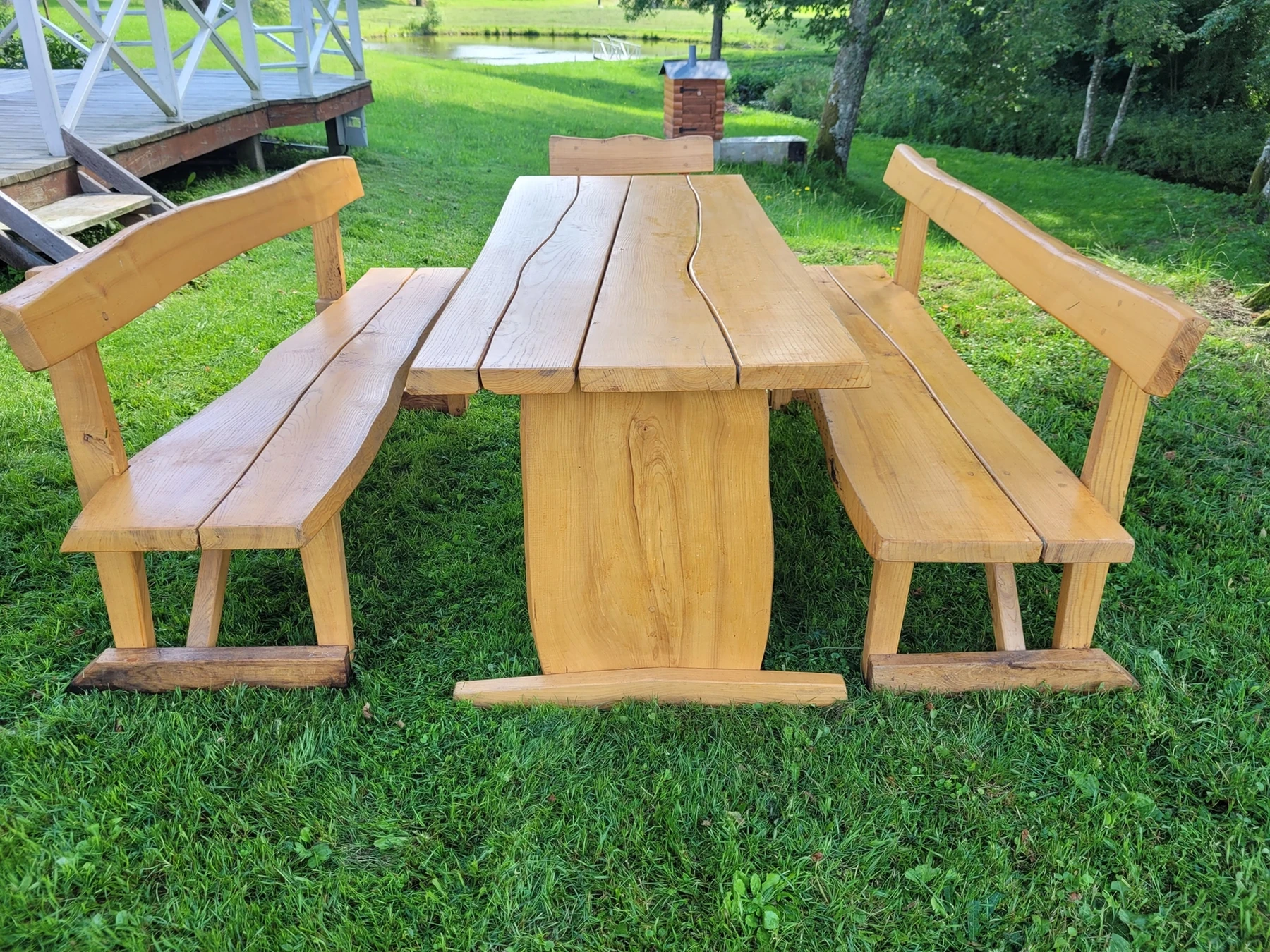 Parduodu uosio medienos lauko baldus. Naudoti 1 sezoną. 1. Stalas - 1.80x 0.75 m; 2. Du suolai; 3. vienas suoliukas (statomas už galo stalo). Tel. +370 656 20456