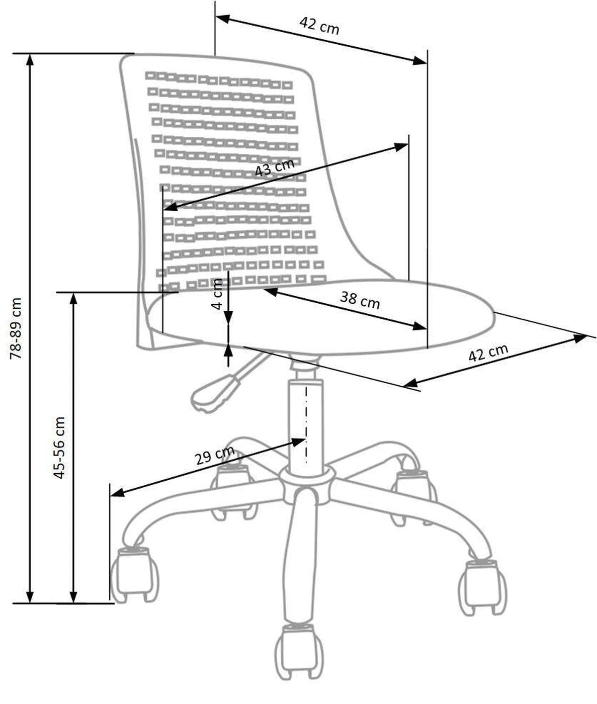 matmenys: 43/42/78-89/45-56 cm, pagrindinis mechanizmas, guminiai ratukai, polipropilenas / eko oda, spalva: pilka