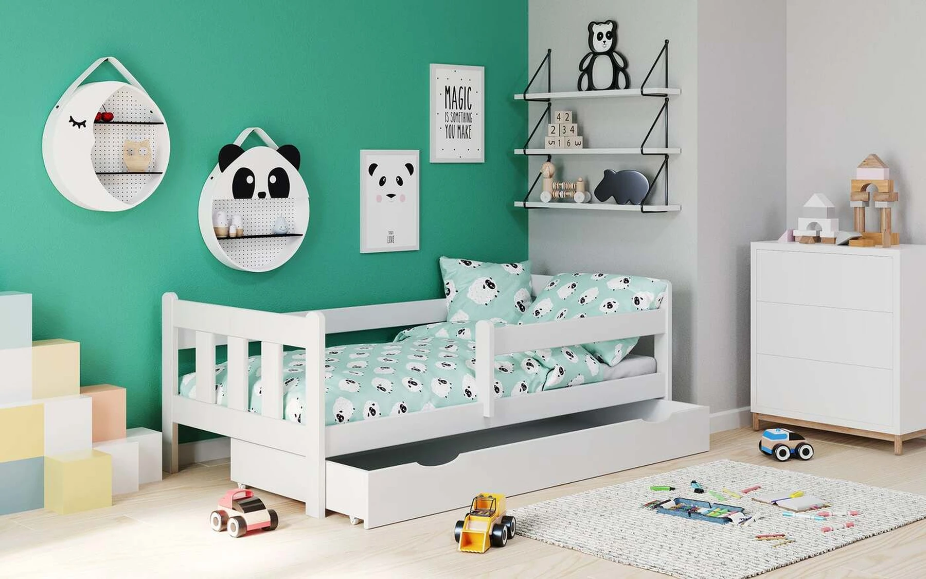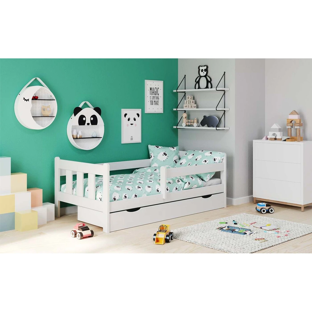 lova su ištraukiamu apatiniu stalčiumi, matmenys: 164/88/60 cm, medžiaga: lakuota pušies masyvo, spalva: balta