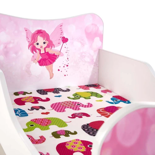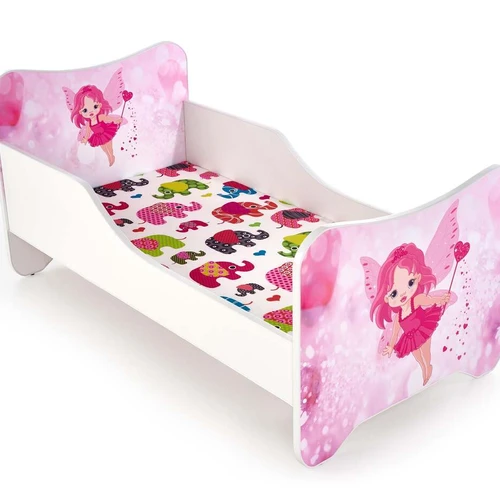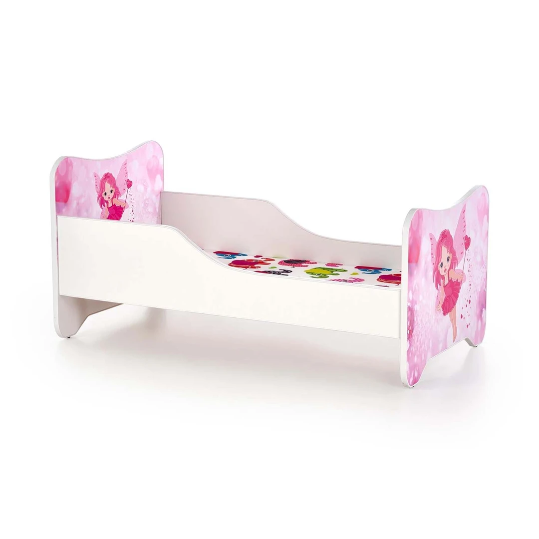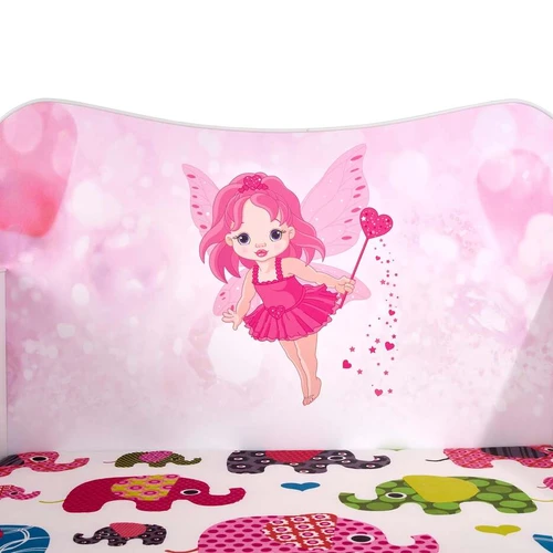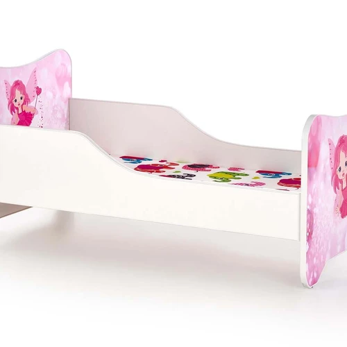 matmenys: 145/76/70/61 cm, medžiaga: laminuota medžio drožlių plokštė + minkšti PVC kraštai, spalva: balta / rožinė * lova su čiužiniu komplekte