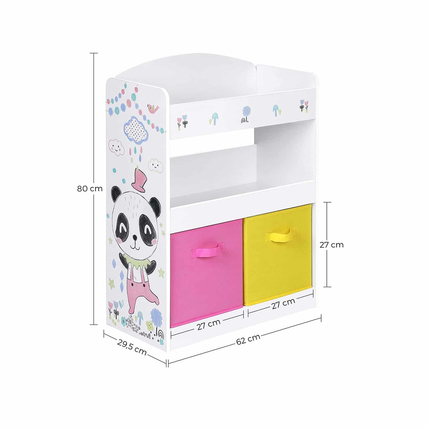 Aprašymas buvo automatiškai išverstas, gali pasitaikyti klaidų.Papuoškite savo namus Klasikinis baltas rėmelis, gražūs raštai, spalvingos dėžutės ir vaikams patogus dizainas – šis žaislų tvarkytuvas padarys jūsų namus gražesnius. Kad būtų gera pradžia, geriau leiskite vaikams išmokti būti organizuotiems ir anksti ateiti į mokyklą paruoštas. Ši žaislų lentyna su didele laikymo vieta ir žavinga išvaizda privers jūsų vaikus su džiaugsmu susitvarkyti daiktus. Išsami informacija apie gaminį: - Spalva: balta, rožinė ir geltona - Medžiaga: MDF (vidutinio tankio medienos plaušų plokštė), medžio drožlių plokštė, neaustinis audinys - dydis : 62 x 29, 5 x 80 cm (P x P x A) - Vienos medžiaginės dėžutės dydis: 29,5 x 27 x 27 cm (I x P x A) - Svoris: 12,5 kgPristatymo komplektas: - 1 x vaikų kambario lentyna - 1 x priedų pakuotė - 2 x laikymo dėžutė - 1 x instrukcija (DE, EN, FR, ES, IT) SONGMICS Pastabos: - Gaminys neplaunamas - nuvalykite drėgnu skudurėliu šluoste ir padėkite į sausą aplinką.- Jei išpakavus gaminį jaučiamas „naujo“ kvapas, trumpam padėkite jį į gerai vėdinamą vietą.