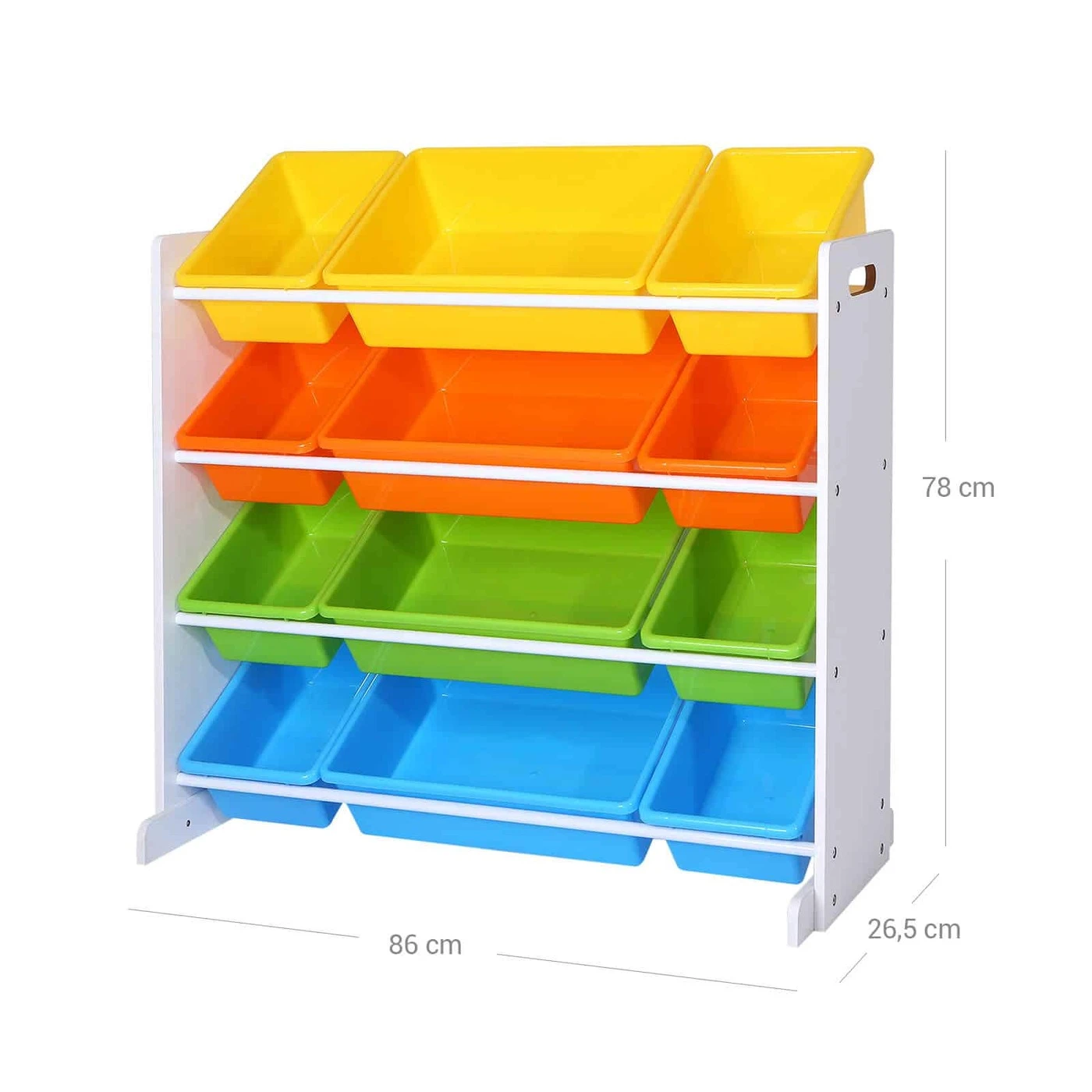 Aprašymas buvo automatiškai išverstas, gali pasitaikyti klaidų.Informacija apie gaminį: - Spalva: Rėmas: balta Dėžutės: oranžinė, geltona, mėlyna, žalia - Medžiaga: MDF plokštės, metaliniai vamzdžiai, PP plastikas - Matmenys (maža dėžutė): 30 x 12 x 19,5 cm (P x A x G) - Matmenys (didelė dėžė): 41 x 12 x 29,5 cm (P x A x G) - Bendri matmenys: 86 x 78 x 26,5 cm (P x A x G) - Grynasis svoris: 7,9 kg - Bruto svoris: 9 ,2 kg Pristatymo apimtis: - 1 x žaislų lentyna - 2 x apsaugai nuo apvirtimo - 1 x montavimo krepšys - 1 x rankinis (DE, EN, IT, FR, ES) Pastabos: 1. Reguliariai valykite gaminį. 2. Siekdami užtikrinti saugumą, reguliariai tikrinkite gaminį, kad įsitikintumėte, jog varžtai ir apsaugos nuo posvyrio įtaisas yra priveržti. 3. Naudokite gaminį tik sausoje aplinkoje ir saugokite nuo tiesioginių saulės spindulių ir drėgmės.
