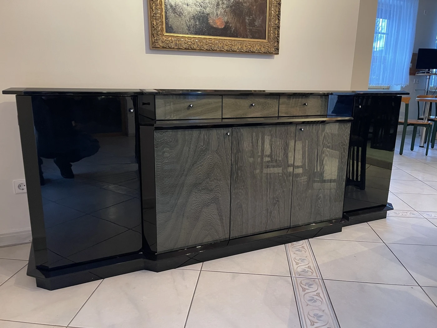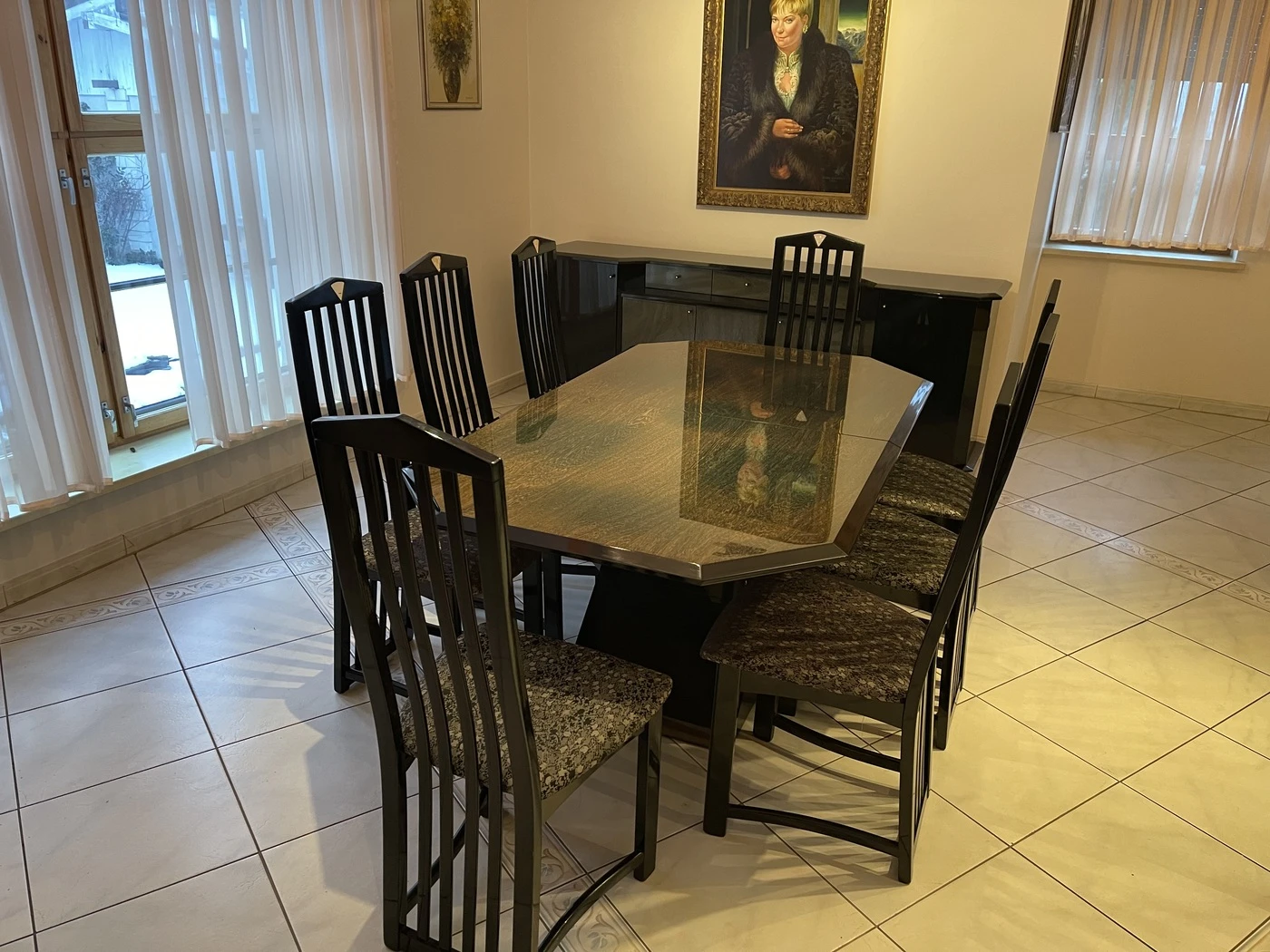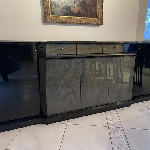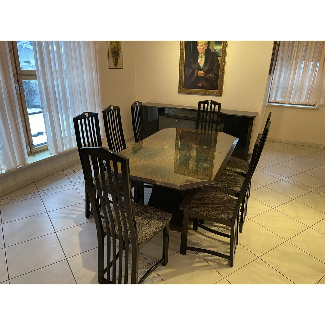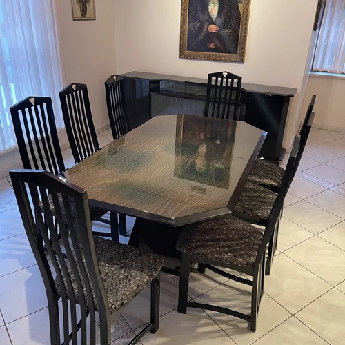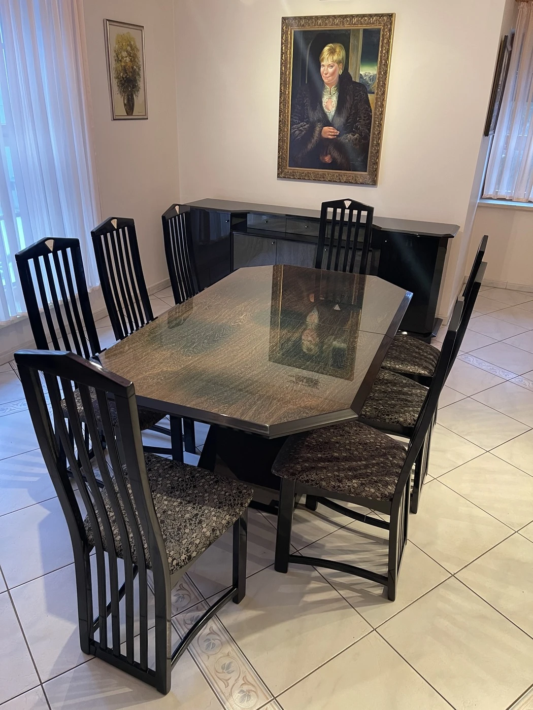 Parduodamas Italu dizainerio CAMELGROUP valgomasis komplektas, kuri sudaro: stalas (prasiilgina), 10 kedziu ir komoda. Stalas 1050x1850, komoda 500x2250.