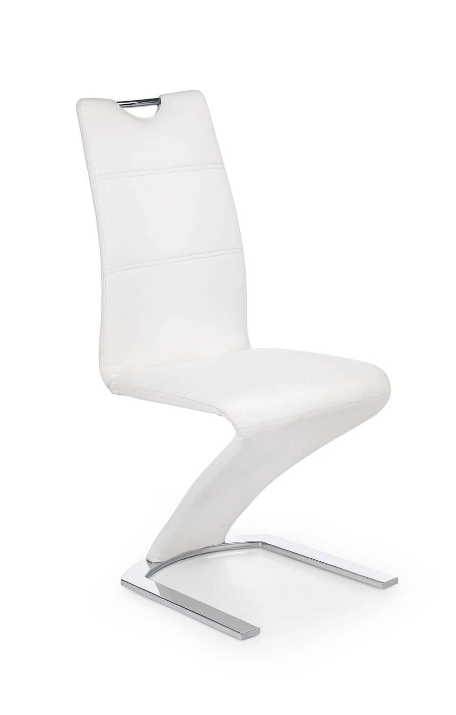 Modernūs balti kėdės su chromo karkasu ir eko odaErgonominiai balti baldai iš chromo ir eko odosBalti baldai su chromo karkasu – 45/63/101 cm