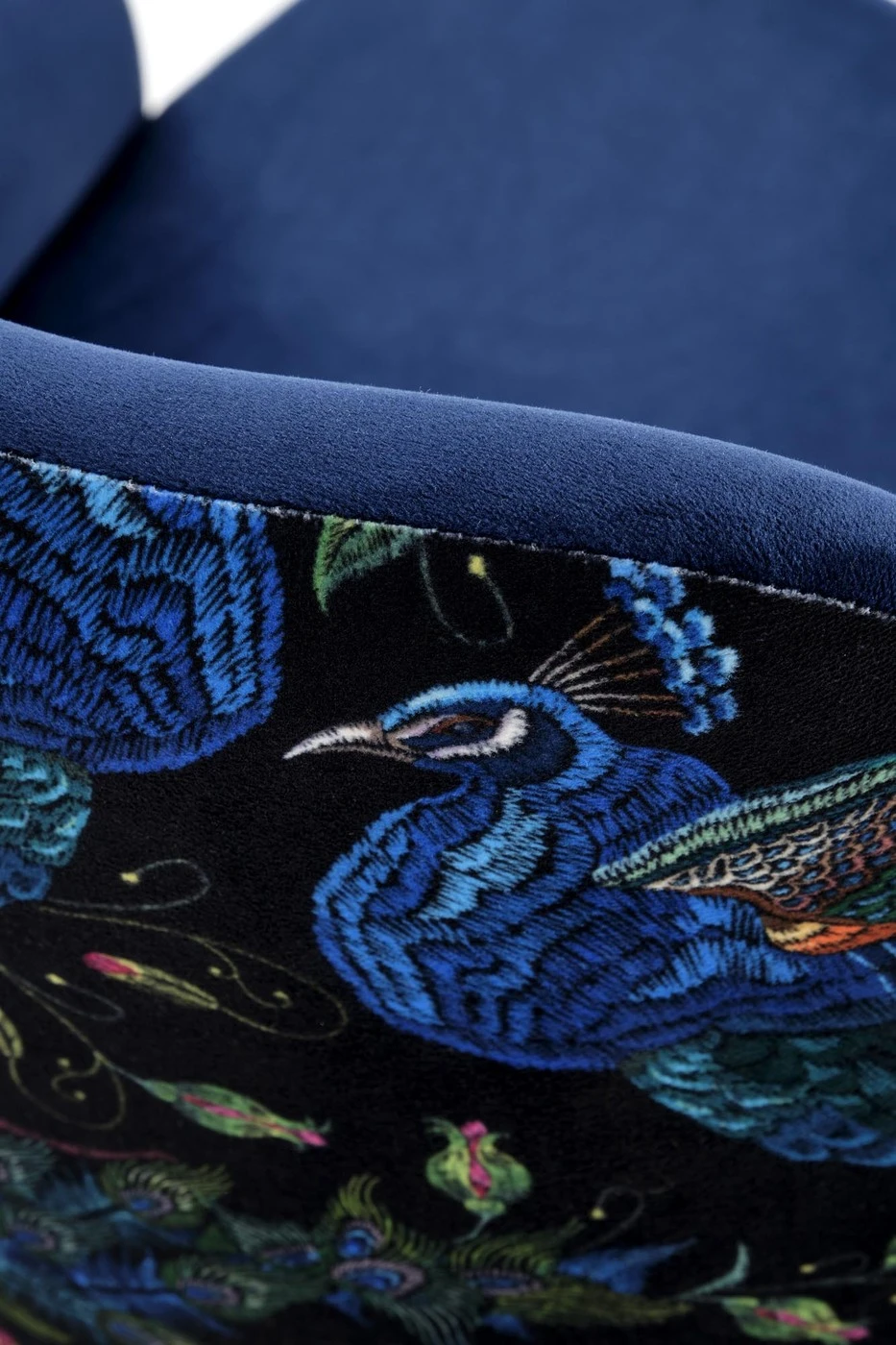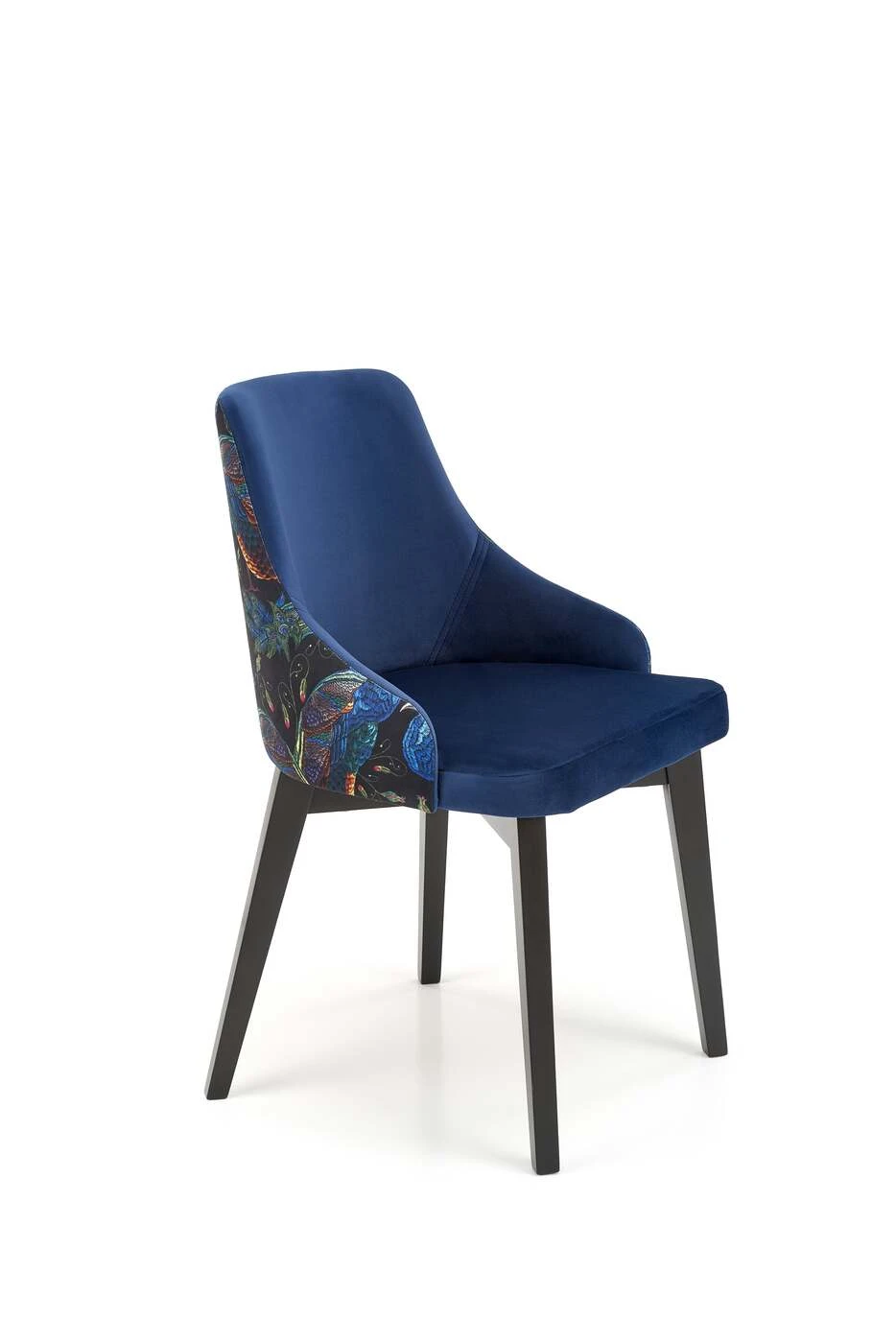 minkšta kėdė, matmenys: 57/56/86/47 cm, medžiaga: buko masyvo / aksomo audinys, spalva: tamsiai mėlyna