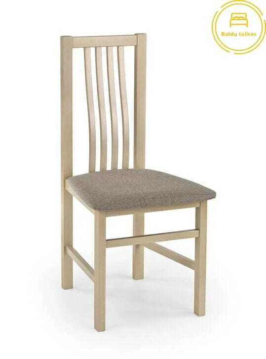 Tvirta ir dailiai atrodanti valgomojo kėdė, pagaminta iš natūralios medienos ir su patogia audiniu dengta sėdimąja dalimi puikiai atrodys prie Jūsų stalo.