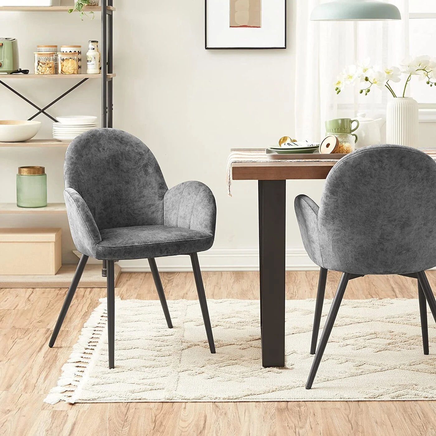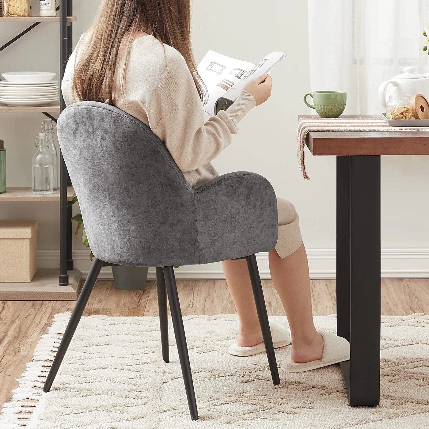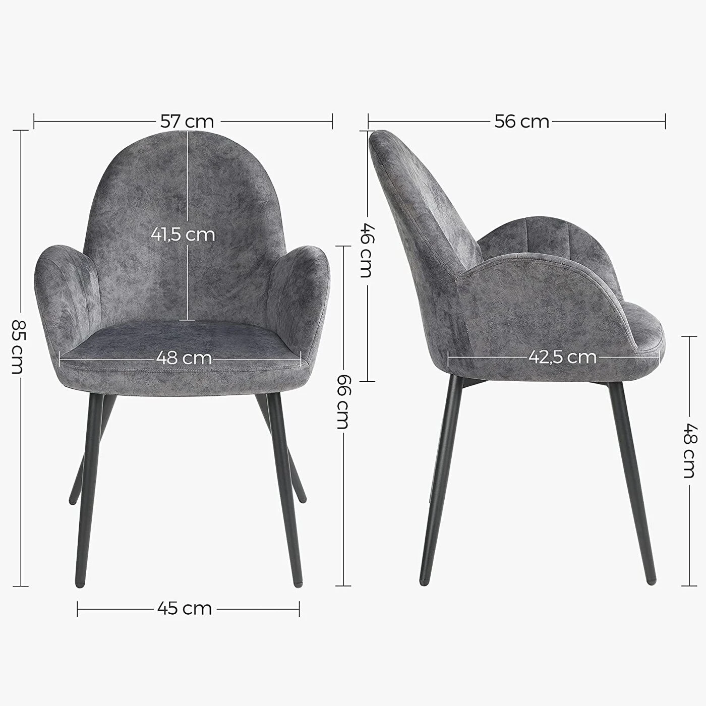 Aprašymas buvo automatiškai išverstas, gali pasitaikyti klaidų.Kokie yra pagrindiniai jūsų naujosios kėdės privalumai? Komfortas? Taip! Ergonomiškas dizainas, 7 cm storio paminkštinta sėdynė ir minkštas aksominis užvalkalas užtikrina didesnį komfortą. Stabilumas? Natūralu! Tvirtos metalinės kojelės ir reguliuojamos kojelės užtikrina saugumą. Lengva surinkti? Tiesiog priveržkite 5 varžtus ir viskas paruošta! Ir tai dar ne viskas: dėl savo gražios išvaizdos ši kėdė prisitaiko prie bet kokio kambario Išsami informacija apie gaminį: Spalva: Pilka Medžiaga: metalinės kojos, medinis viršus, aksominis užvalkalas, putplasčio paminkštinimas Kėdės dydis: 57 x 56 x 85 cm (P x P x H) Sėdynės aukštis: 48 cm, sėdynės Plotis cm: 48 cm, sėdynės gylis: 42,5 cm, atlošo aukštis: 46 cm, porankių aukštis (nuo grindų): 66 cm, svoris: 5,5 kg, maks. statinė apkrova: 110 kgPakuotės turinys: 1 x kėdė 1 x aksesuarų komplektas 1 x Instrukcijos SONGMICS Pastabos: nestovėkite ant kėdės ir nenaudokite jos kaip pagalbinės kopėčios ar laipiojimo. Nedelsdami nuvalykite kėdę sausa šluoste, jei ji sušlaptų. Pastatykite kėdę. ant lygaus paviršiaus. Grindų kilimėlis po kėde gali apsaugoti jūsų kietmedžio grindis.