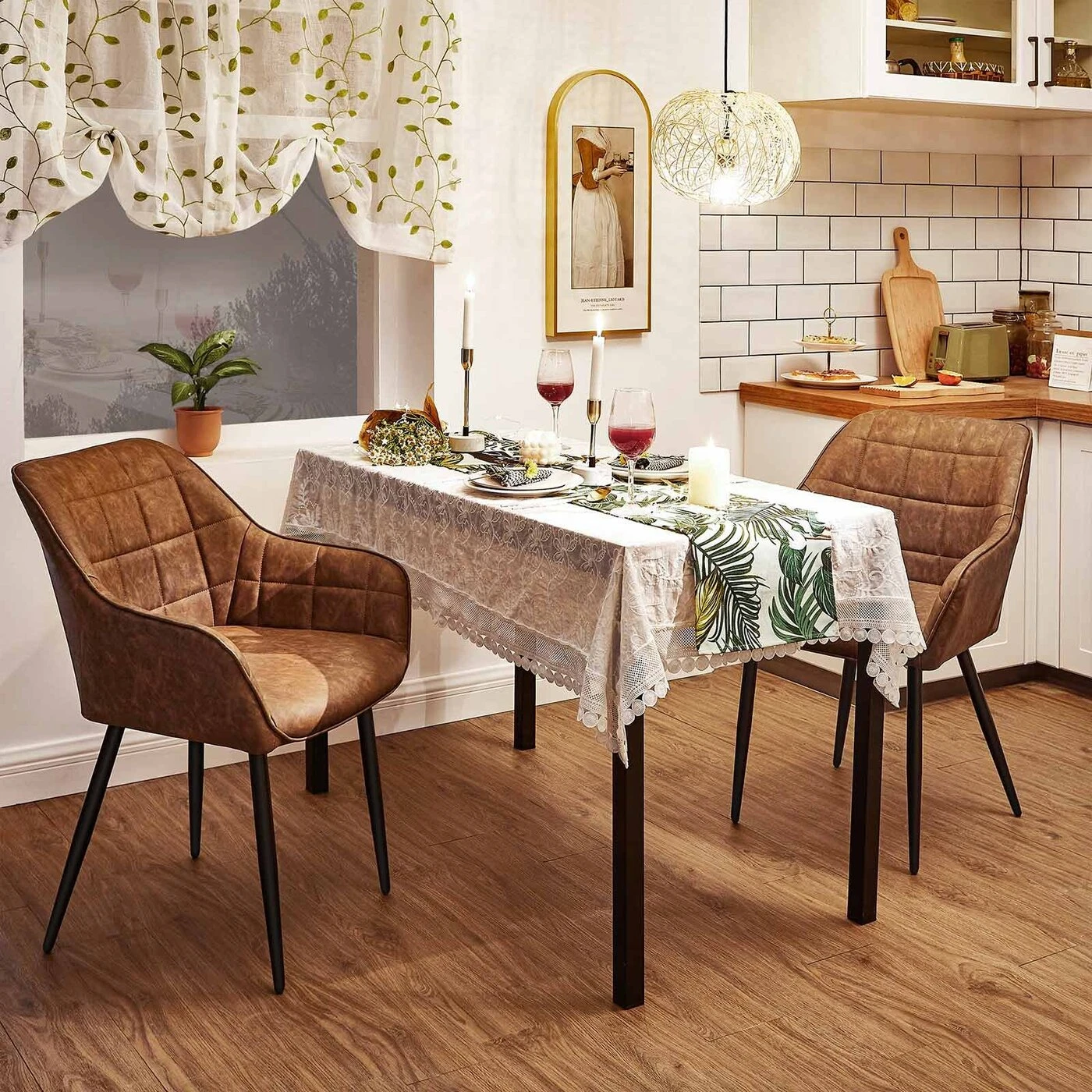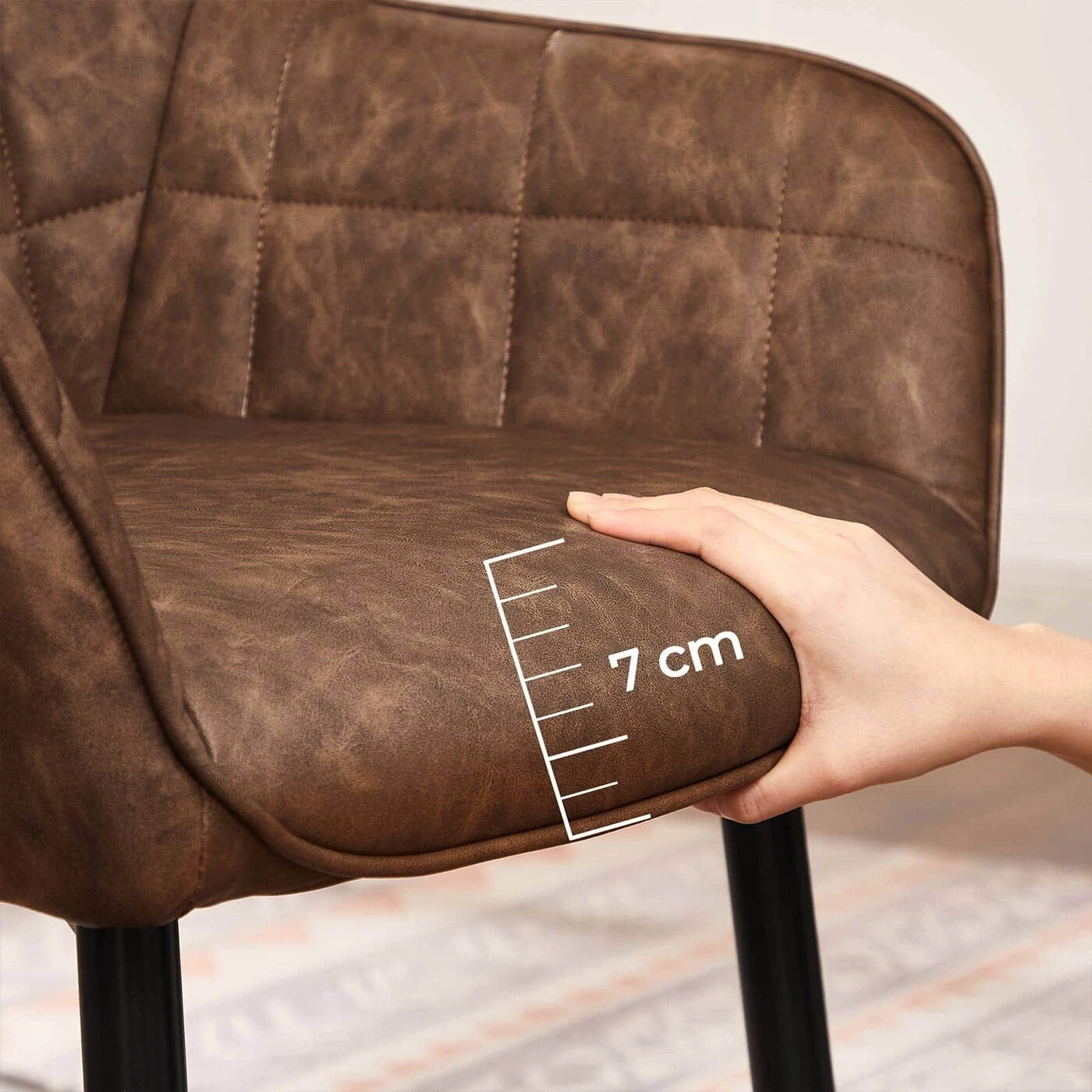 Aprašymas buvo automatiškai išverstas, gali pasitaikyti klaidų.Išbandykite jaukumą: Ergonomiškas dizainas, 7 cm storio putplasčio paminkštinimas, aukštos kokybės PU danga ir patvarios metalinės kojos, kurių keliamoji galia iki 110 kg – šie elementai sukuria tvirtą ir patogią kėdę. Dar geriau, kad kėdė yra gražios išvaizdos, kuri įneša malonią atmosferą į bet kurį kambarį.Visada šalia jūsų: kur norite sėdėti ir atsipalaiduoti, ši minkšta kėdė jums paruošta. Nesvarbu, ar valgomajame, svetainėje, miegamajame, darbo kambaryje ar deginantis balkone, ši kėdė visada tiks poilsio akimirkoms Išsami informacija apie gaminį: Spalva: tamsiai ruda Medžiaga: milteliniu būdu dengtos metalinės kojelės, medinis viršus, PU, putplasčio paminkštinimas Bendras dydis: 62,5 x 60 x 85 cm (P x P x A) Sėdynės aukštis: 50 cm Sėdynės Plotis cm: 49 cm Sėdynės gylis: 44,5 cm Atlošo aukštis: 39,5 cm Porankių aukštis (nuo grindų): 64 cm Sėdynės pagalvėlės storis: 7 cm Svoris: 6,5 kg Maks. statinė apkrova: 110 kgPakuotės turinys: 1 x kėdė 1 x priedų paketas 1 x instrukcija SONGMICS Pastabos: Saugokite gaminį nuo tiesioginių saulės spindulių. Saugokite gaminį nuo smailių ar aštrių daiktų, kad nesugadintumėte. Nestokite ant kėdės ir nenaudokite jos kaip laipiojimo priemonė arba kopėčios. Jei kėdė sušlapo, nedelsdami nuvalykite sausu skudurėliu. Padėkite kėdę ant lygaus paviršiaus. Grindų kilimėlis po kėde gali apsaugoti jūsų parketo grindis.