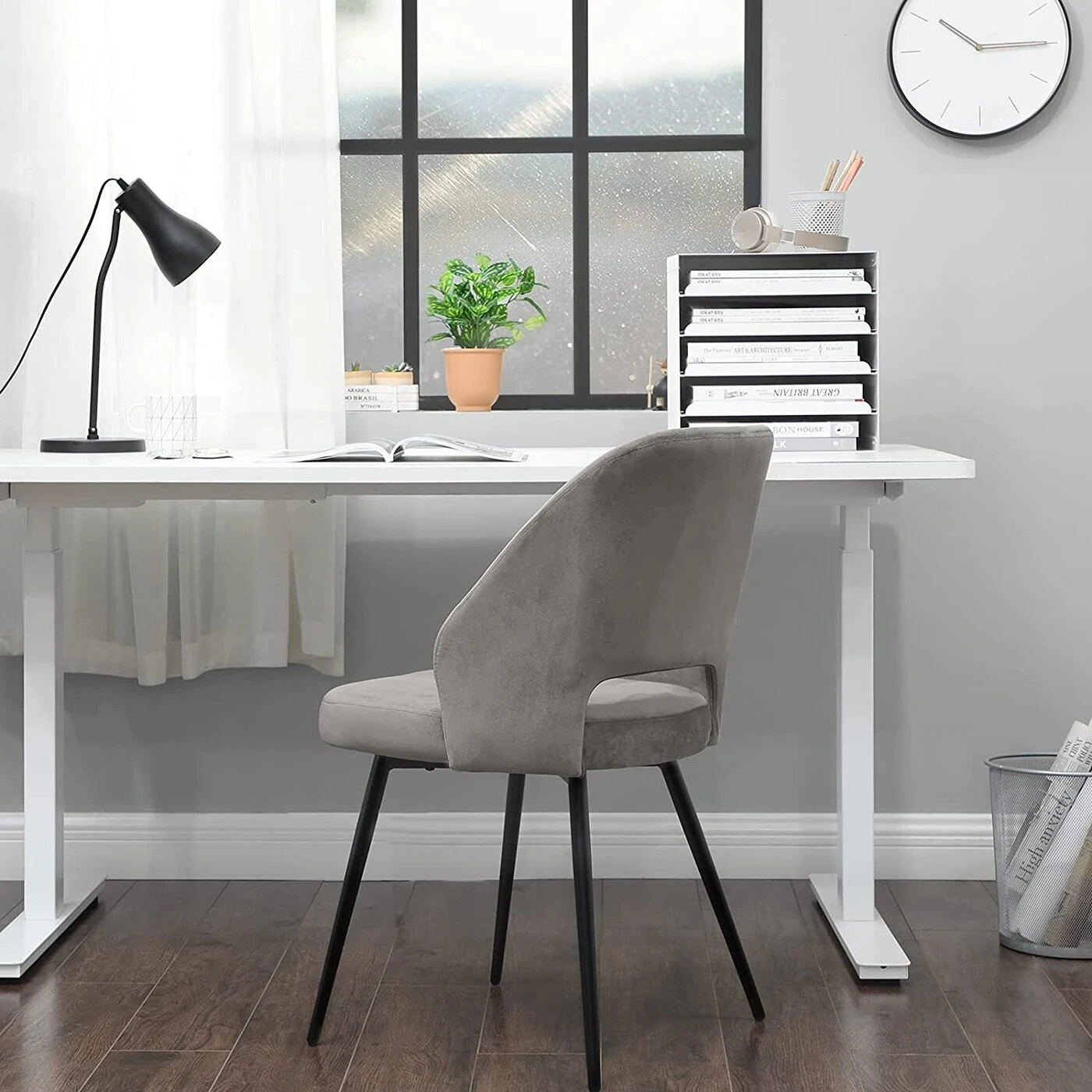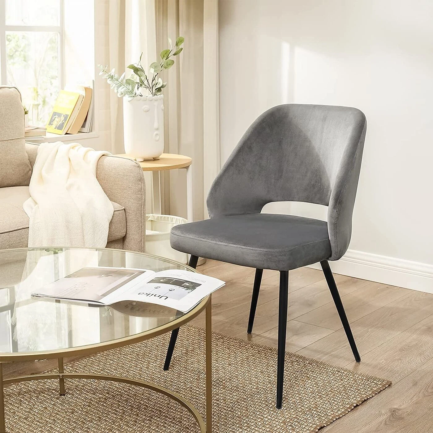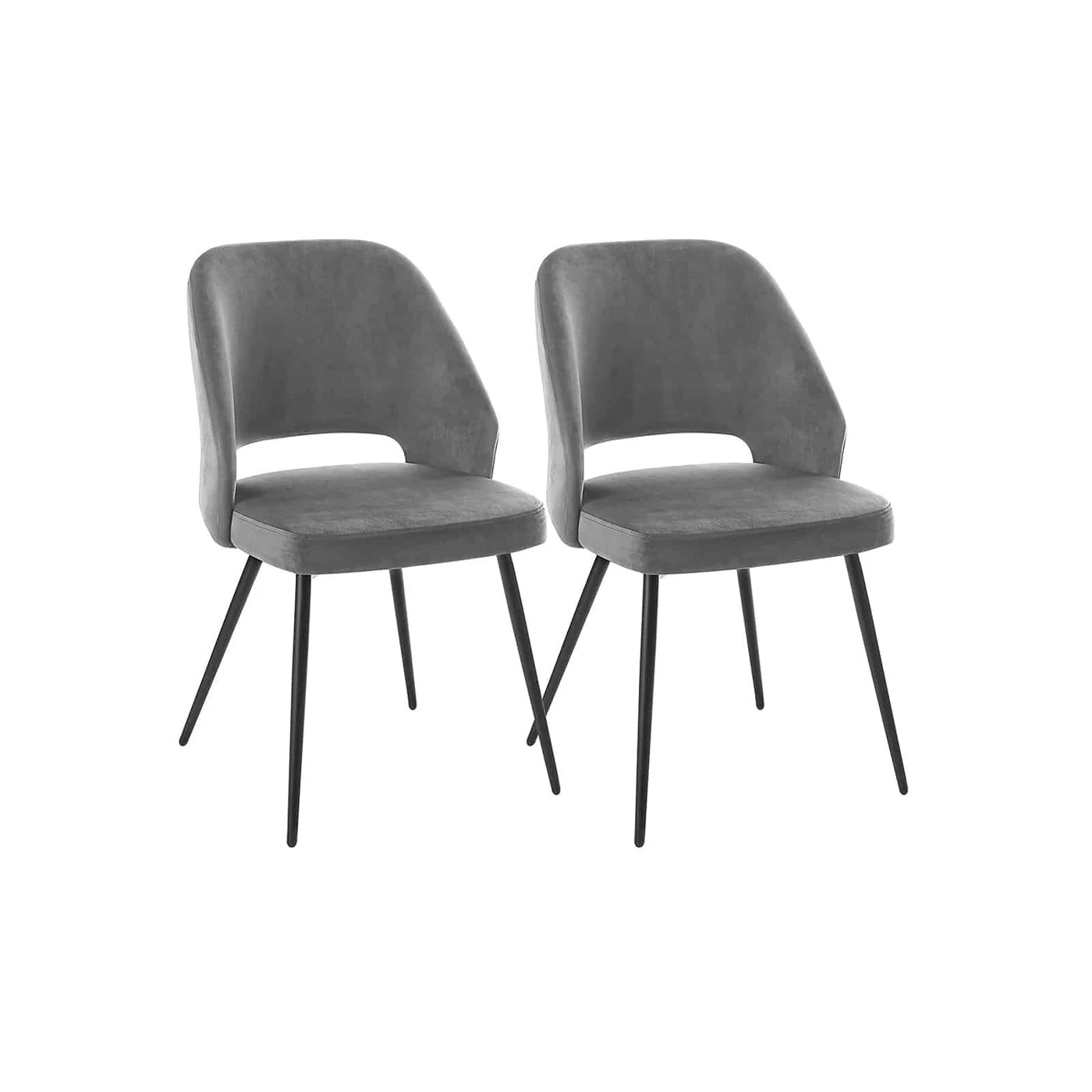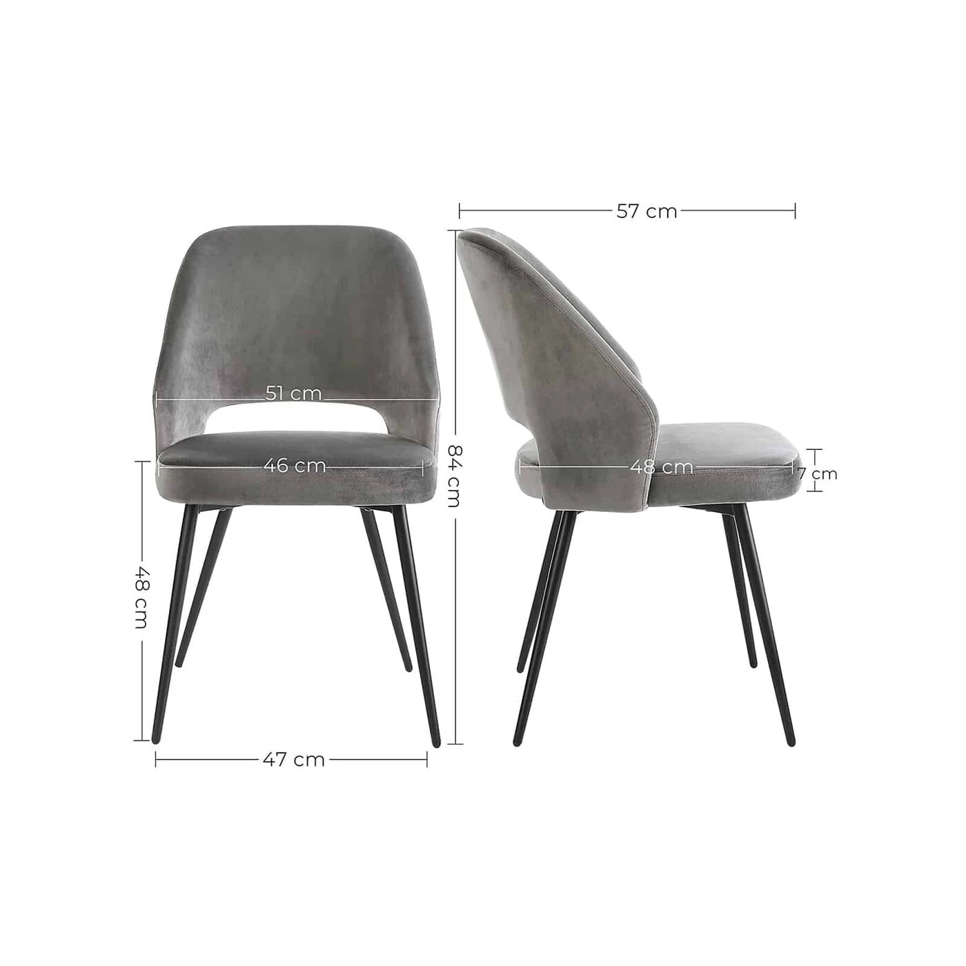 Aprašymas buvo automatiškai išverstas, gali pasitaikyti klaidų.Retro prašmatnus komfortas Gražus fasadas neturėtų būti svarbesnis už komfortą. Su šiuo rinkiniu, kurį sudaro 2 aksomu dengtos valgomojo kėdės, gausite 2 madingo retro stiliaus poilsio kėdes, kurios užtikrina puikų sėdėjimo komfortą. Minkštų baldų privalumai – Aptakios išlenktos ir linijos, kartu su unikaliu iškirptu atlošu, suteikia šiam kėdžių rinkiniui madingo, retro stiliaus, kuris papildys įvairius namų apstatymus. - Išoriškai išsikišusios kėdžių kojos atrodo kaip medinės. Tačiau iš tikrųjų jie pagaminti iš tvirtos geležies. Kiekvieną iš minkštų kėdžių galima apkrauti po 110 kg. - 7 cm storio paminkštinimas, aukščiausios kokybės aksominis užvalkalas ir geležinės kojelės derina komfortą ir ilgaamžiškumą. - 4 kėdės kojelės susideda tik iš 2 dalių, todėl jums tereikia priveržti 5 varžtus, kad surinktumėte vieną iš šių kėdžių. Taip sutaupysite brangaus laiko. – Šios minkštos kėdės skirtos ne tik valgomajam. Jie taip pat puikiai tinka jūsų svetainei, miegamajam, biurui, viešbučio registratūrai ar holui ir daugeliui kitų erdvių.Išsami informacija apie gaminį: - Spalva: Pilka - Medžiaga: Aksomas, geležinės kėdės kojos su medžio drožlėmis, geležinis rėmas, putplasčio paminkštinimas - Dydis: 47 x 58 x 83,5 cm (P x P x A) - Sėdynės aukštis: 47,5 cm - Sėdynės Plotis cm: 46 cm - Sėdynės gylis: 49 cm - Atlošo aukštis: 40 cm - Svoris: 5,5 kg - Maksimali statinė apkrova vienai kėdei: 110 kg Pristatymo komplektas: - 2 x valgomojo kėdė su aksominiu užvalkalu - 2 x konteineriai su priedais - 1 x instrukcijos ( DE, EN, FR, ES, IT) SONGMICS Pastabos: - Saugokite gaminį nuo tiesioginių saulės spindulių. - Saugokite gaminį nuo smailių ar aštrių daiktų, kad nesugadintumėte.