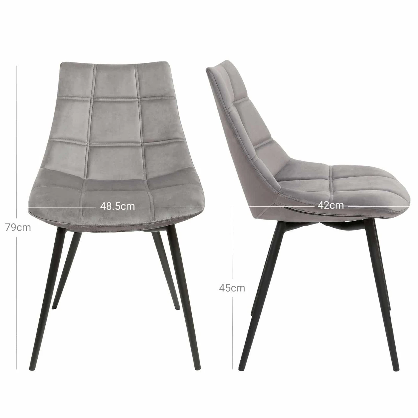 Aprašymas buvo automatiškai išverstas, gali pasitaikyti klaidų.Stilius su komfortu Gražus fasadas neturėtų būti svarbesnis už komfortą. Su šiuo 2 aksomu dengtų valgomojo kėdžių rinkiniu gausite 2 modernias poilsio kėdes, kurios užtikrina puikų sėdėjimo komfortą. Visada šalia 5 cm storio putplasčio paminkštinimas, aukštos kokybės aksominis užvalkalas, ergonomiškos formos sėdynės apvalkalas – šios minkštos kėdės yra nenugalimos tiems, kurie ieško minkštos ir patogios sėdėjimo galimybės valgomajame. Atsisėskite ant vienos iš šių kėdžių ir ramiai išgerkite kavos ryte arba mėgaukitės šaltais gėrimais karštomis vasaros dienomis. Be to, šios virtuvės kėdės turi 4 tvirtas geležines kojeles, kurios užtikrina didelę statinę apkrovą (iki 110 kg). Informacija apie gaminį: - Spalva: Pilka - Medžiaga: Milteliniu būdu dengta geležis, polipropilenas (PP), aksomas - Bendras dydis: 49 x 54 x 80 cm (P x P x A) - Sėdynės aukštis: 46 cm - Sėdynės Plotis cm: 48,5 cm - Sėdynės gylis: 42 cm - Atlošo aukštis: 38 cm - Sėdynės paminkštinimo storis: 5 cm - Svoris: 5,5 kg - Maksimali kėdės statinė apkrova: 110 kgPristatymo komplektas:- 2 x valgomojo kėdės- 2 x priedų krepšiai- 1 x rankinis (DE,EN,FR,ES,IT)SONGMICS Pastabos:- Nelaikykite gaminio tiesioginiuose saulės spinduliuose.- Laikykite gaminį toliau nuo smailius ar aštrius daiktus, kad nesugadintumėte. - Nestovėkite ant kėdės ir nenaudokite jos kaip pagalbinės kopėčios ar kopėčių. - Nedelsdami nuvalykite kėdę sausa šluoste, jei ji sušlaptų. - Uždėkite kėdę lygus paviršius.