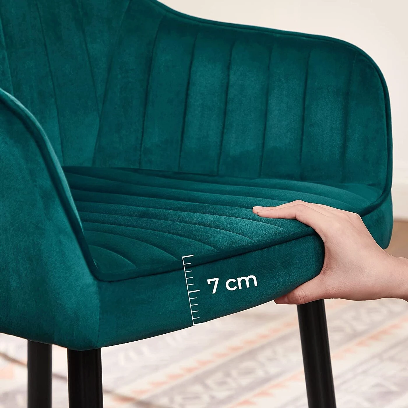 Aprašymas buvo automatiškai išverstas, gali pasitaikyti klaidų.Išbandykite patogiai: Ergonomiškas dizainas, 7 cm storio putplasčio paminkštinimas, aukštos kokybės aksominis užvalkalas ir patvarios metalinės kojelės, kurių apkrova iki 110 kg – šie elementai sukuria tvirtas ir patogias kėdes. Dar geriau, kad kėdės yra gražios išvaizdos, kuri suteikia malonią atmosferą bet kokiam kambariui.Visada šalia jūsų: kad ir kur norėtumėte sėdėti ir atsipalaiduoti, šios minkštos kėdės jums paruoštos. Nesvarbu, ar valgomajame, svetainėje, miegamajame, darbo kambaryje ar deginantis balkone, šios kėdės visada tiks poilsio akimirkoms.Informacija apie gaminį: Spalva: Benzinas Medžiaga: Milteliniu būdu dengtos metalinės kojelės, medinis viršus, aksomas, putplasčio paminkštinimas Bendras dydis: 62,5 x 60 x 85 cm (P x P x A) Sėdynės aukštis: 50 cm Sėdynės Plotis cm: 49 cm Sėdynės gylis: 44,5 cm Atlošo aukštis: 39,5 cm Porankių aukštis (nuo grindų): 64 cmSėdynės pagalvėlės storis: 7 cm Vienos kėdės svoris: 6,5 kgMaks. Vienos kėdės statinė apkrova: 110 kg Į pakuotę įtraukta: 4 x kėdė 4 x priedų paketas 4 x instrukcijos SONGMICS Pastabos: Saugokite gaminį nuo tiesioginių saulės spindulių. Saugokite gaminį nuo smailių ar aštrių daiktų, kad nesugadintumėte. Neatsistokite kėdes ir nenaudokite jų kaip laipiojimo pagalbinių priemonių ar kopėčių. Jei kėdės sušlapo, nedelsdami nuvalykite jas sausa šluoste. Padėkite kėdes ant lygaus paviršiaus. Grindų kilimėlis po kėdėmis gali apsaugoti jūsų parketą.