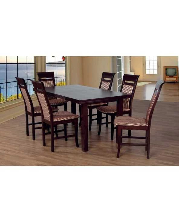 Stalas faneruotas, frezuotas, prailginamas. Kojos iš natūralios medienos.
