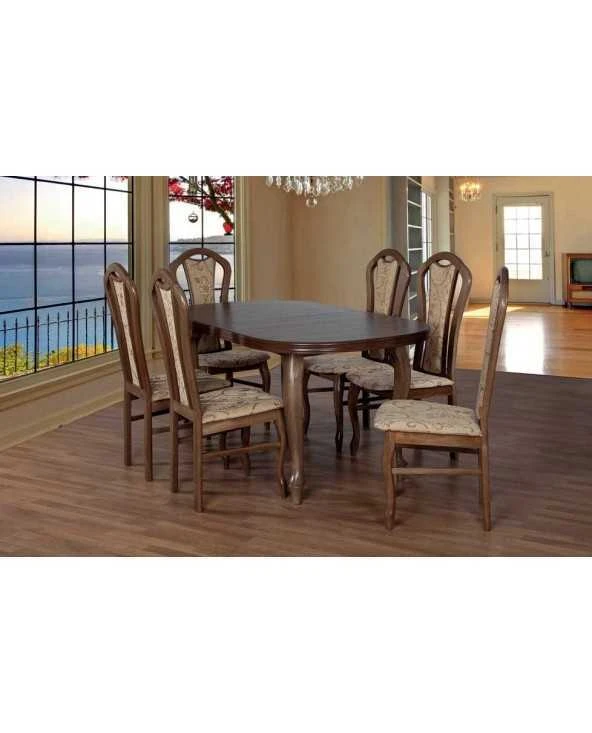 Stalas faneruotas, prailginamas. Kojos iš natūralios medienos.