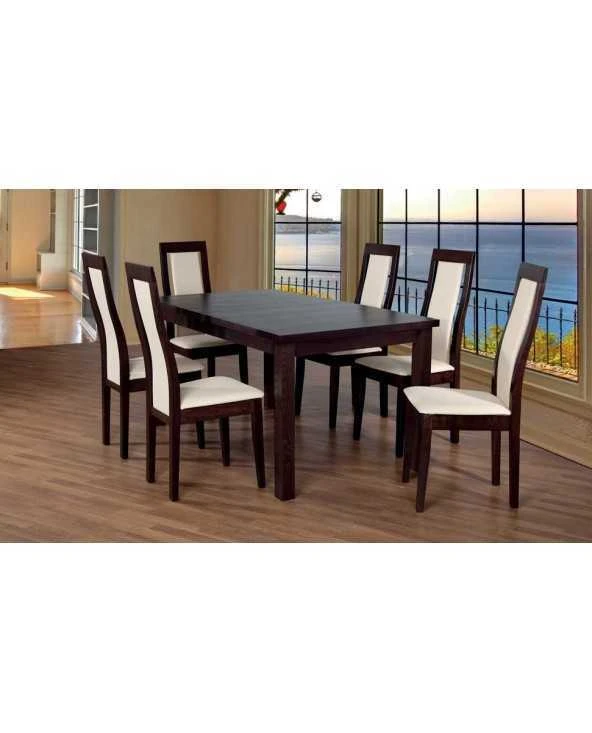 Stalas faneruotas, prailginamas. Kojos iš natūralios medienos.