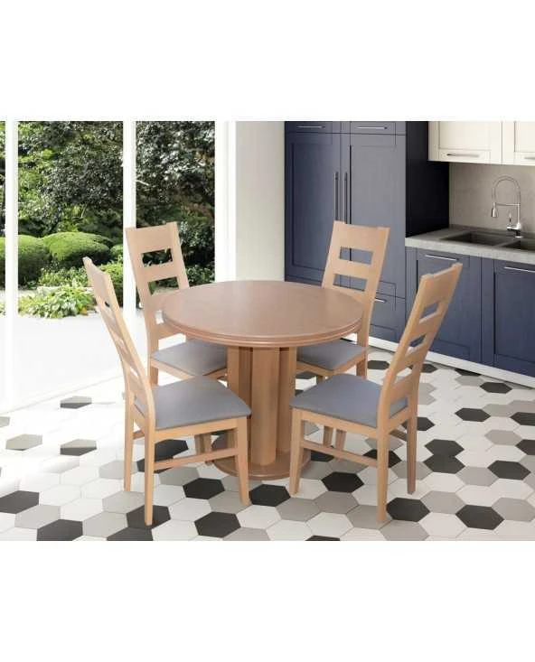 Stalas faneruotas, prailginamas. Kojos iš natūralios medienos.