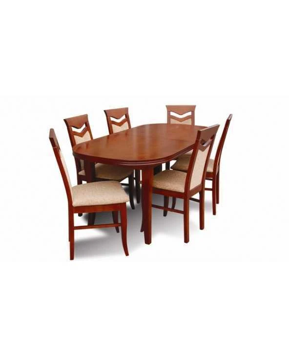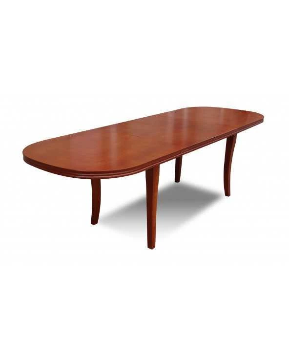 Stalas faneruotas, ovalus, prailginamas. Kojos iš natūralios medienos.