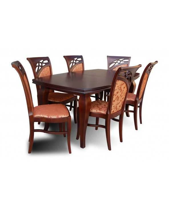 Stalas faneruotas, prailginamas. Kojos iš natūralios medienos.