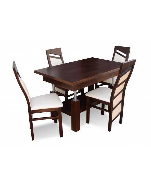 Stalas faneruotas, prailginamas. Kojos iš natūralios medienos.