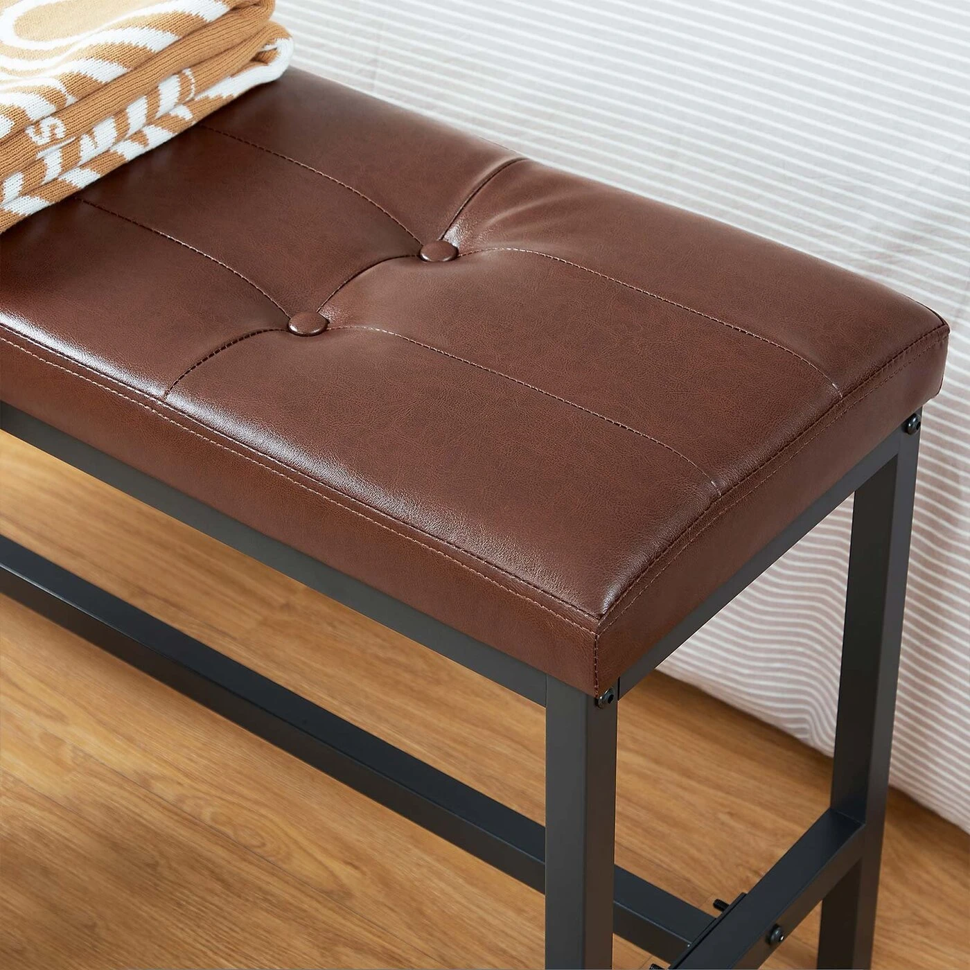 Aprašymas buvo automatiškai išverstas, gali pasitaikyti klaidų.Informacija apie gaminį: - Spalva: ruda-juoda - Medžiaga: PU, putplastis, medžio drožlių plokštės, plienas - Dydis: 108 x 32,5 x 48 cm (P x P x A) - Svoris: 6,8 kg - Maksimali statinė apkrova: 100 kgPristatymo apimtis:- 1 x valgomojo suolas- 1 x priedų paketas- 1 x instrukcija (DE, EN, ES, FR, IT) VASAGLE Pastabos:- Saugumo sumetimais vaikams neleidžiama laipioti ar žaisti su gaminiu. - Didžiausia statinė paviršiaus apkrova yra 100 kg. Prašome neviršyti šio didžiausio svorio.