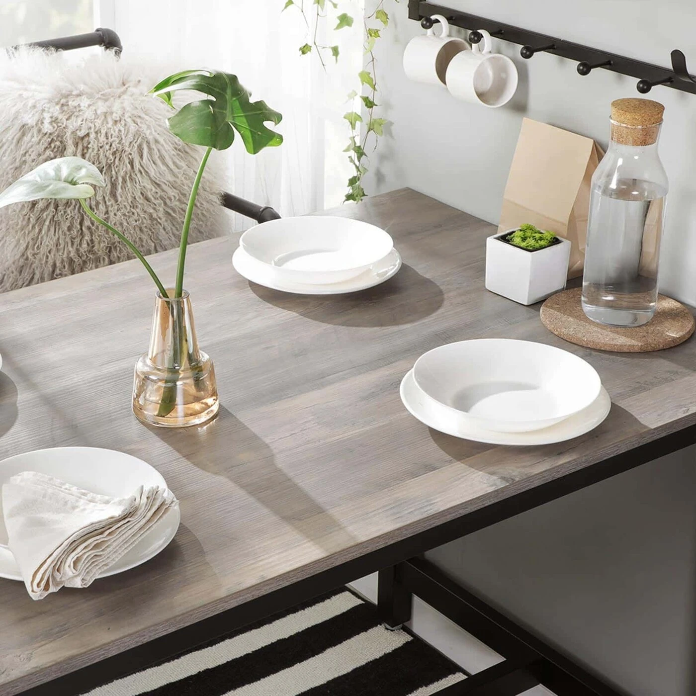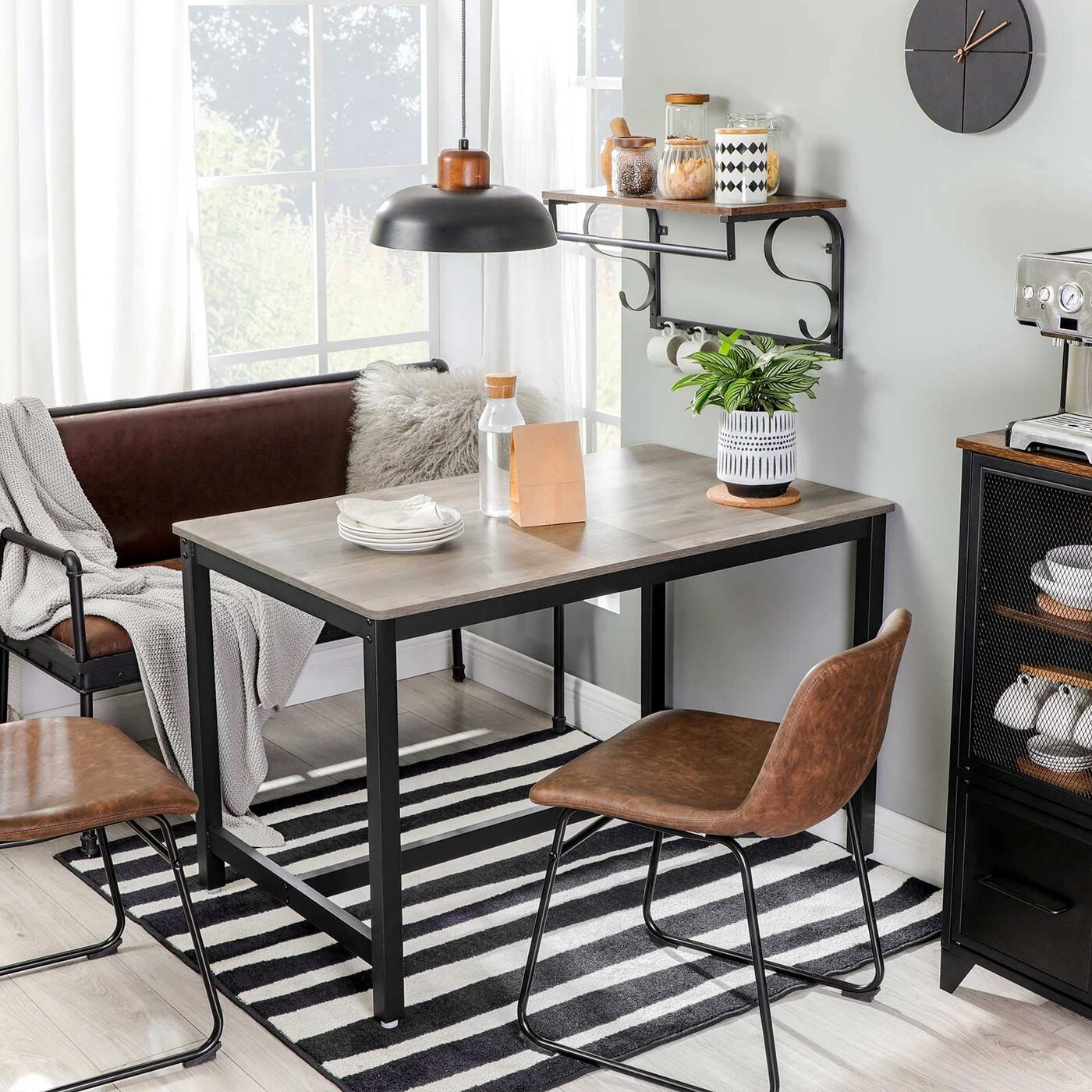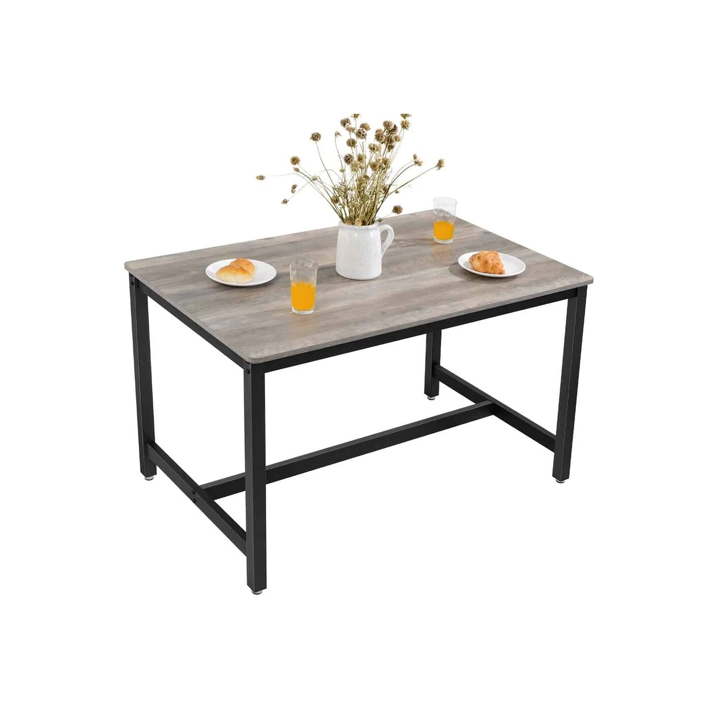 Aprašymas buvo automatiškai išverstas, gali pasitaikyti klaidų. Išsami informacija apie gaminį: - Spalva: pilkai juoda - Medžiaga: medžio drožlių plokštės, plienas - Dydis: 120 x 75 x 75 cm (P x P x A) - Svoris: 17,2 kg - Maksimali statinė apkrova: 100 kg Pakuotės turinys: - 1 x Valgomasis kambario stalas - 1 x priedų paketas - 1 x instrukcijos (DE, EN, ES, FR, IT)VASAGLE Pastabos: - Saugokite gaminį nuo aštrių ir smailių daiktų bei ėsdinančių medžiagų. - Vaikams draudžiama lipti ar žaisti su gaminiu. - Surinkimo metu neleiskite vaikams patekti į darbo vietą, o pakavimo medžiagas laikykite nepasiekiamoje vietoje. Pristatymą sudaro daug smulkių dalių, kurias prarijus ar įkvėpus gali kilti pavojus sveikatai. - Maksimali gaminio statinė apkrova yra 100 kg. Nedėkite ant stalo sunkesnių daiktų.