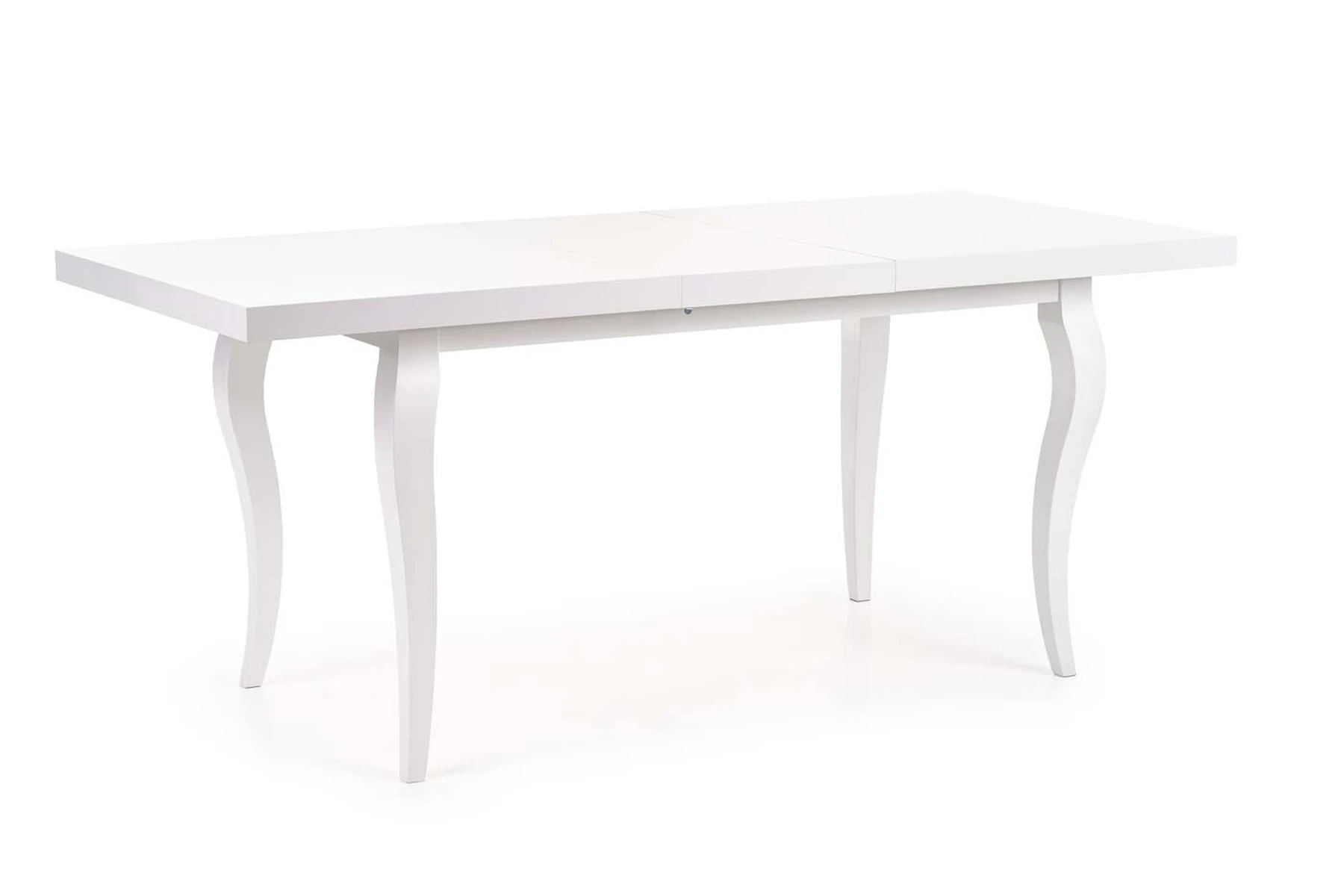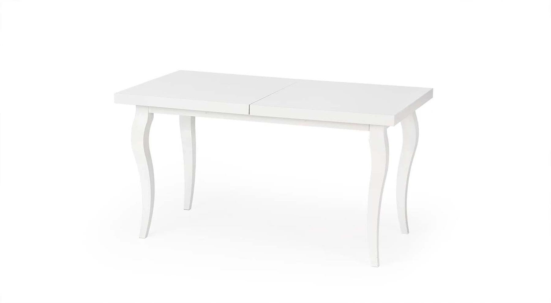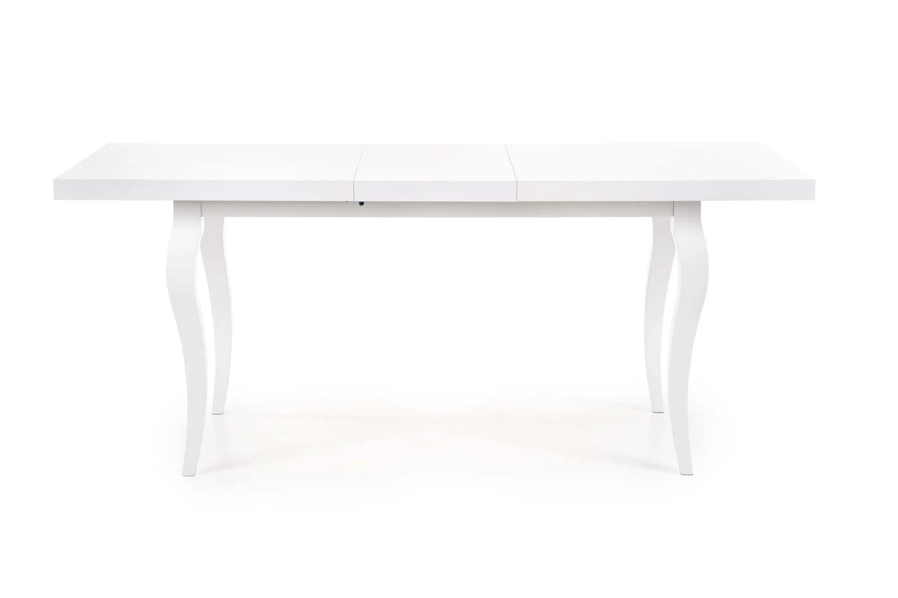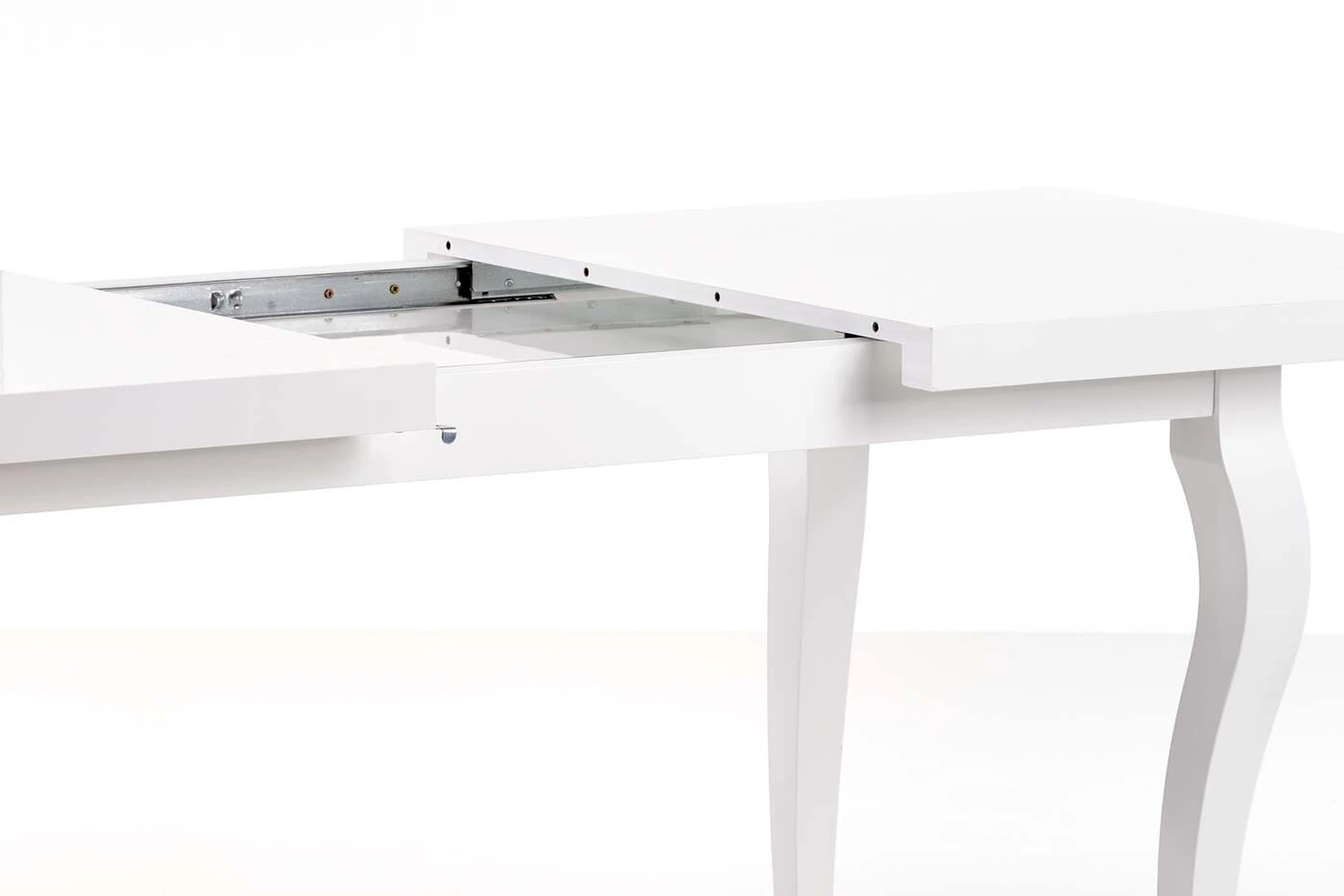 prailginimo stalas, matmenys: 140-180/80/75 cm, medžiaga: viršus - laminuotas MDF + ABS briaunos, kojos - buko masyvo, spalva: balta