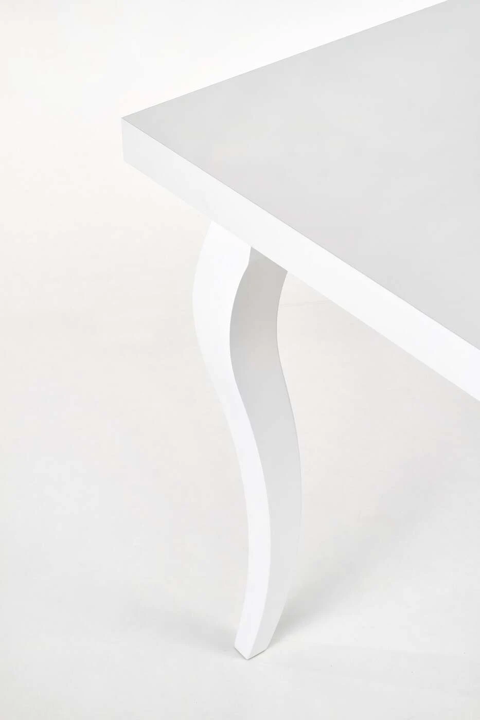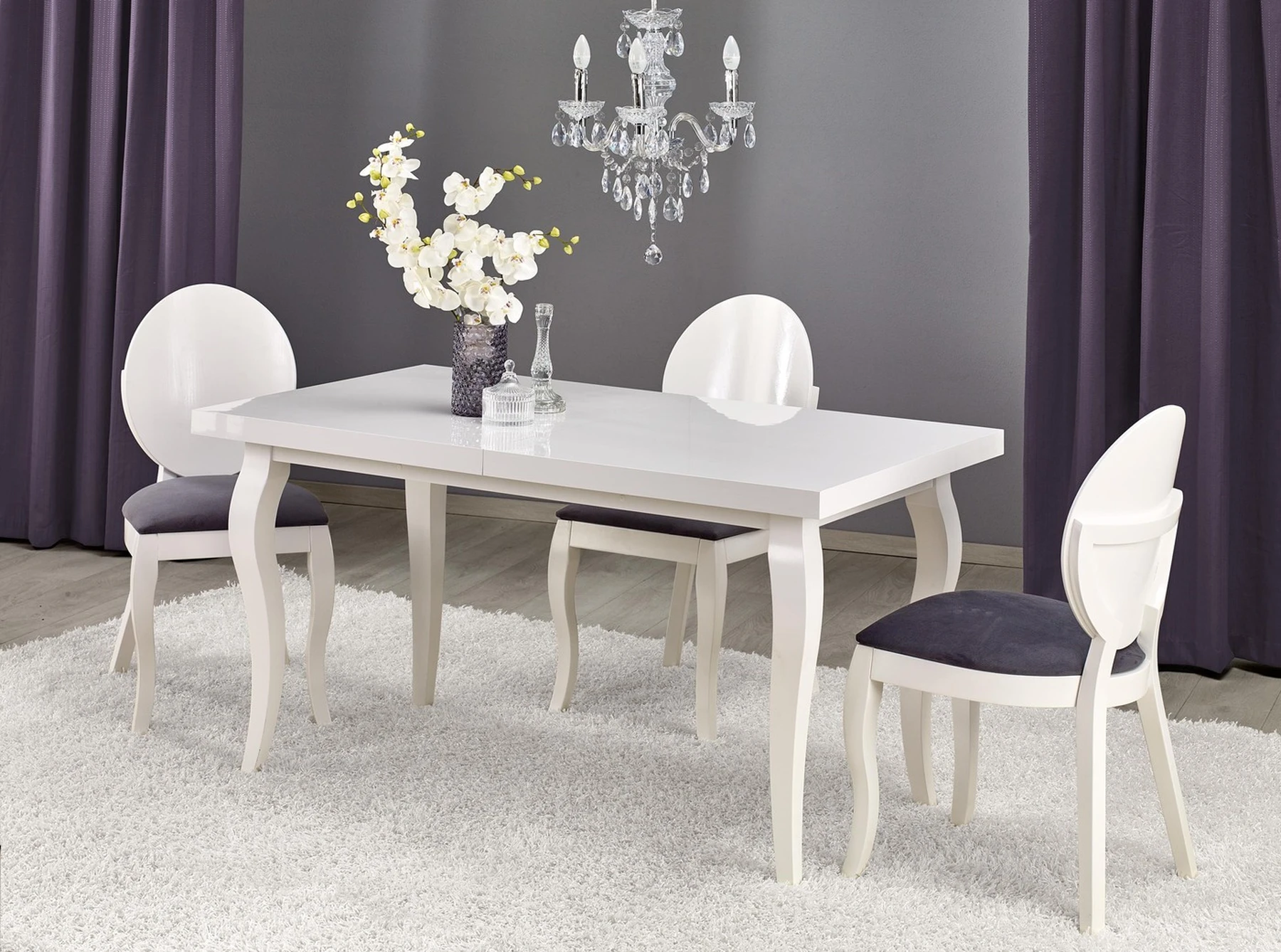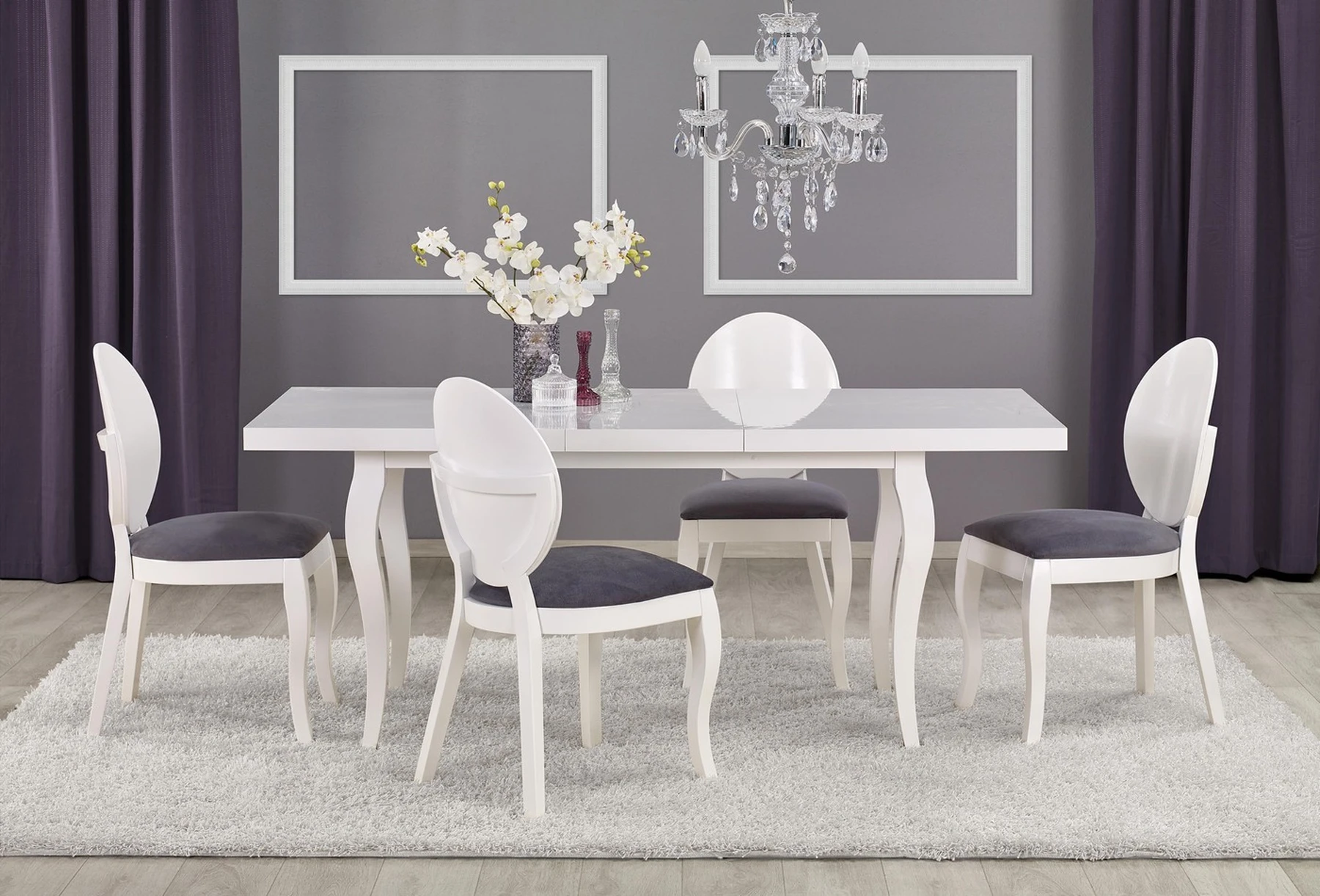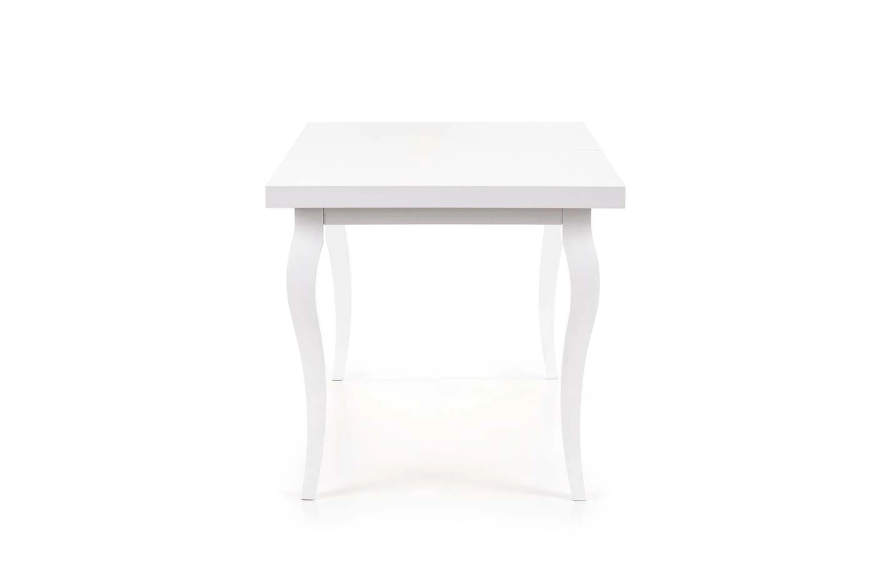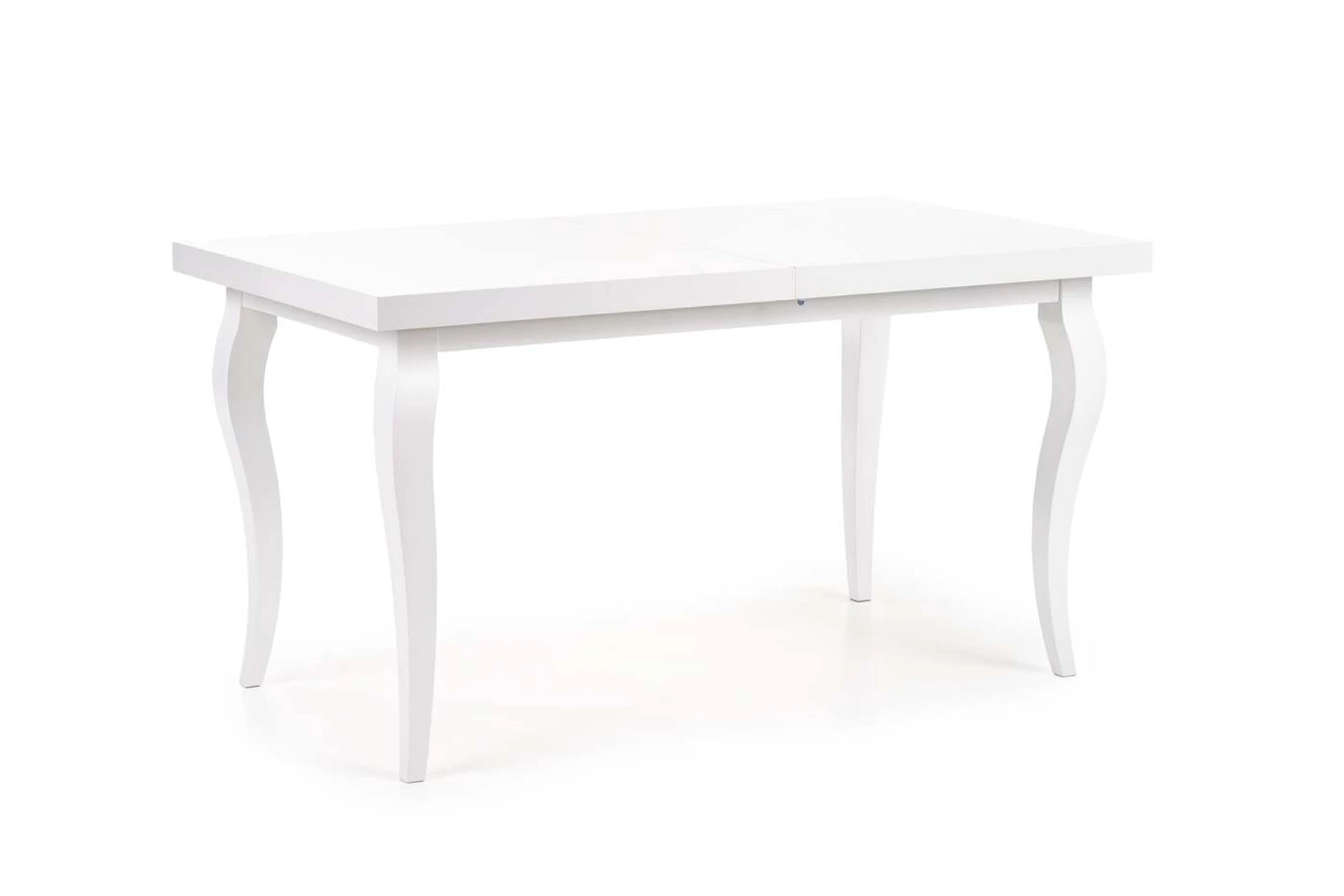 prailginimo stalas, matmenys: 140-180/80/75 cm, medžiaga: viršus - laminuotas MDF + ABS briaunos, kojos - buko masyvo, spalva: balta