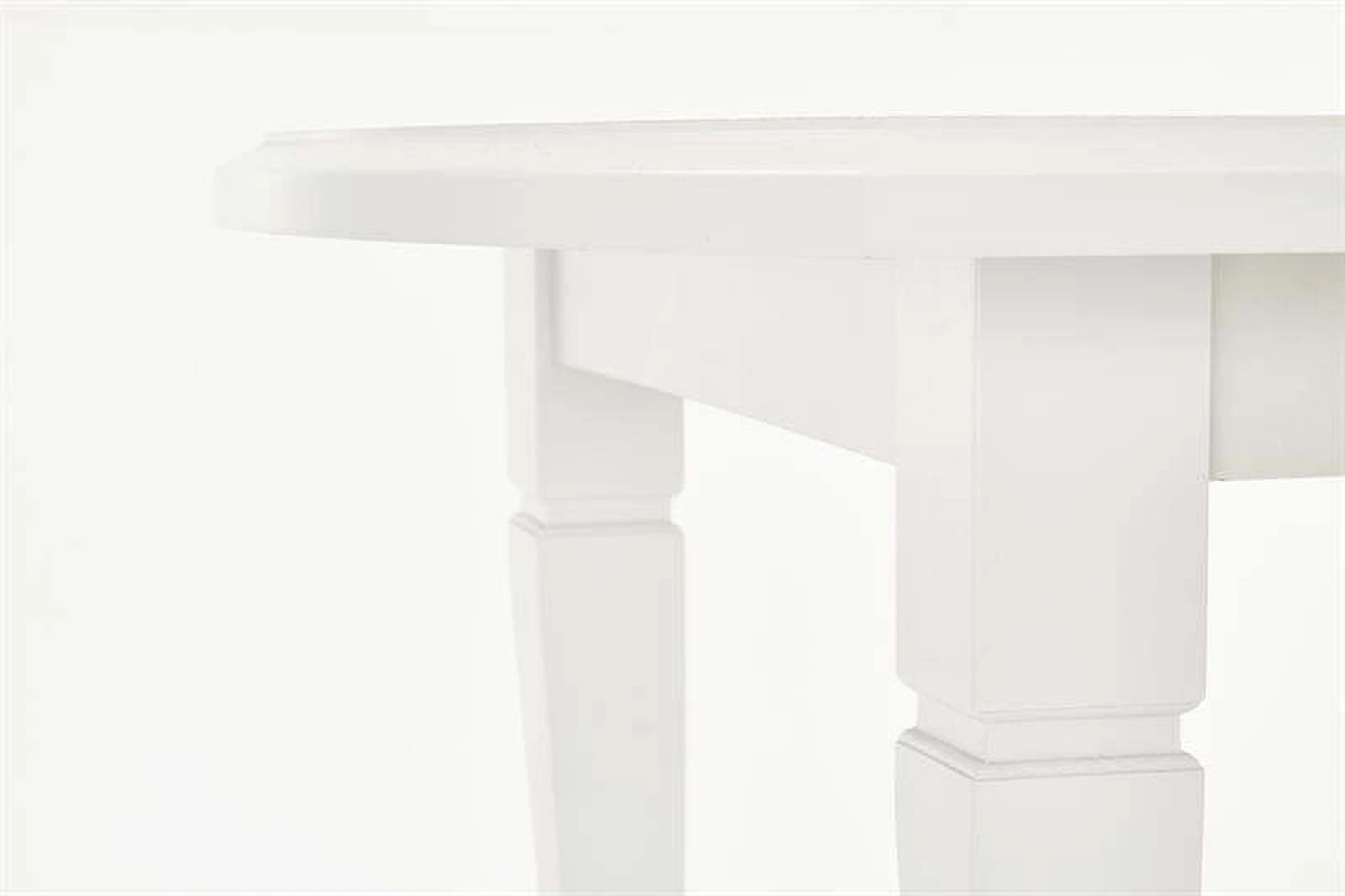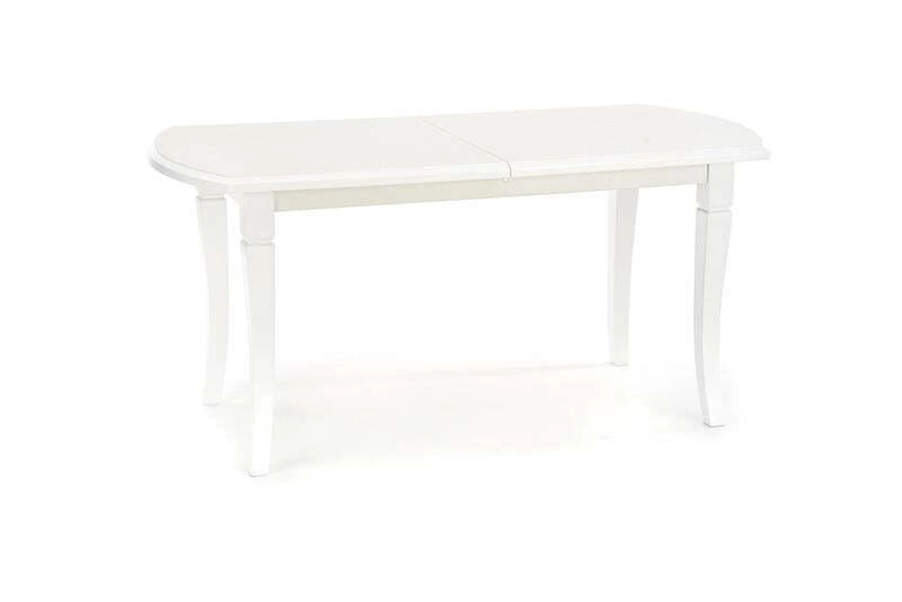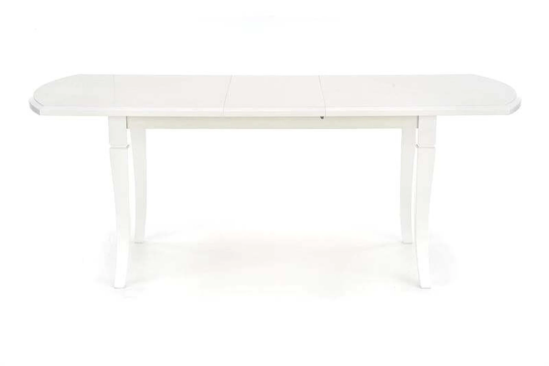 prailginimo stalas (metalinė tvora + volelis), matmenys: 160÷240/90/74 cm, medžiaga: viršus - laminuota MDF plokštė, kojos - buko masyvo, spalva: balta
