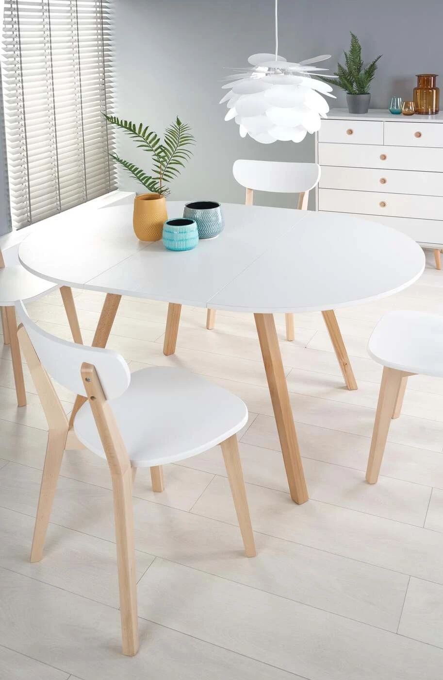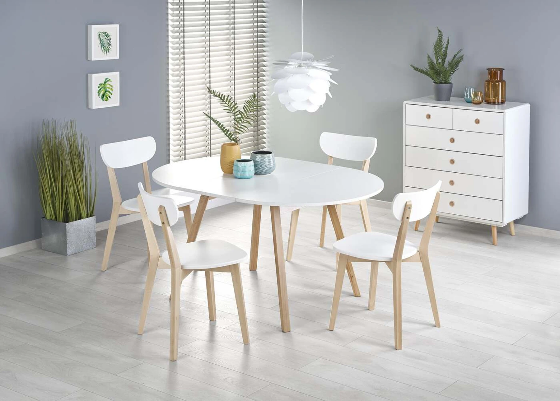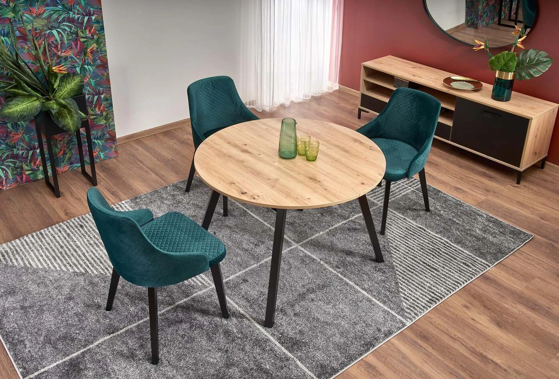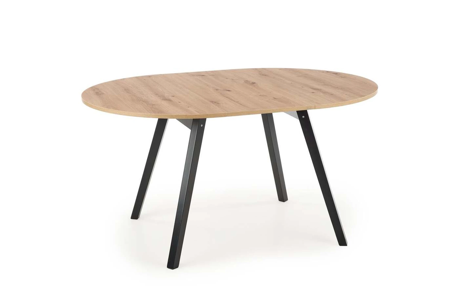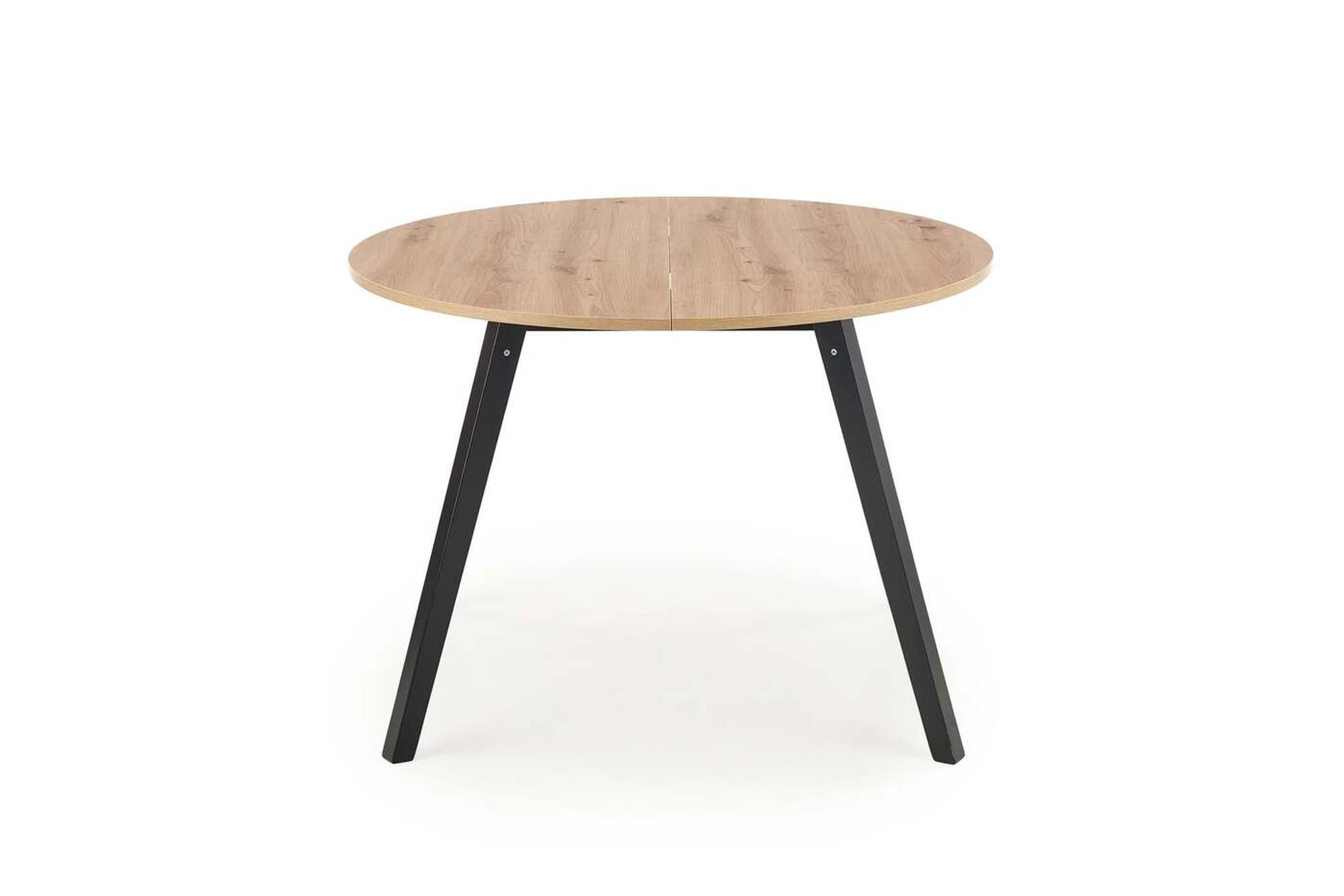 matmenys: 102-142/102/73 cm, prailginamas stalas, medžiaga: laminuota medžio drožlių plokštė / buko masyvas, spalva: viršus - amatinis ąžuolas, kojos - juodos
