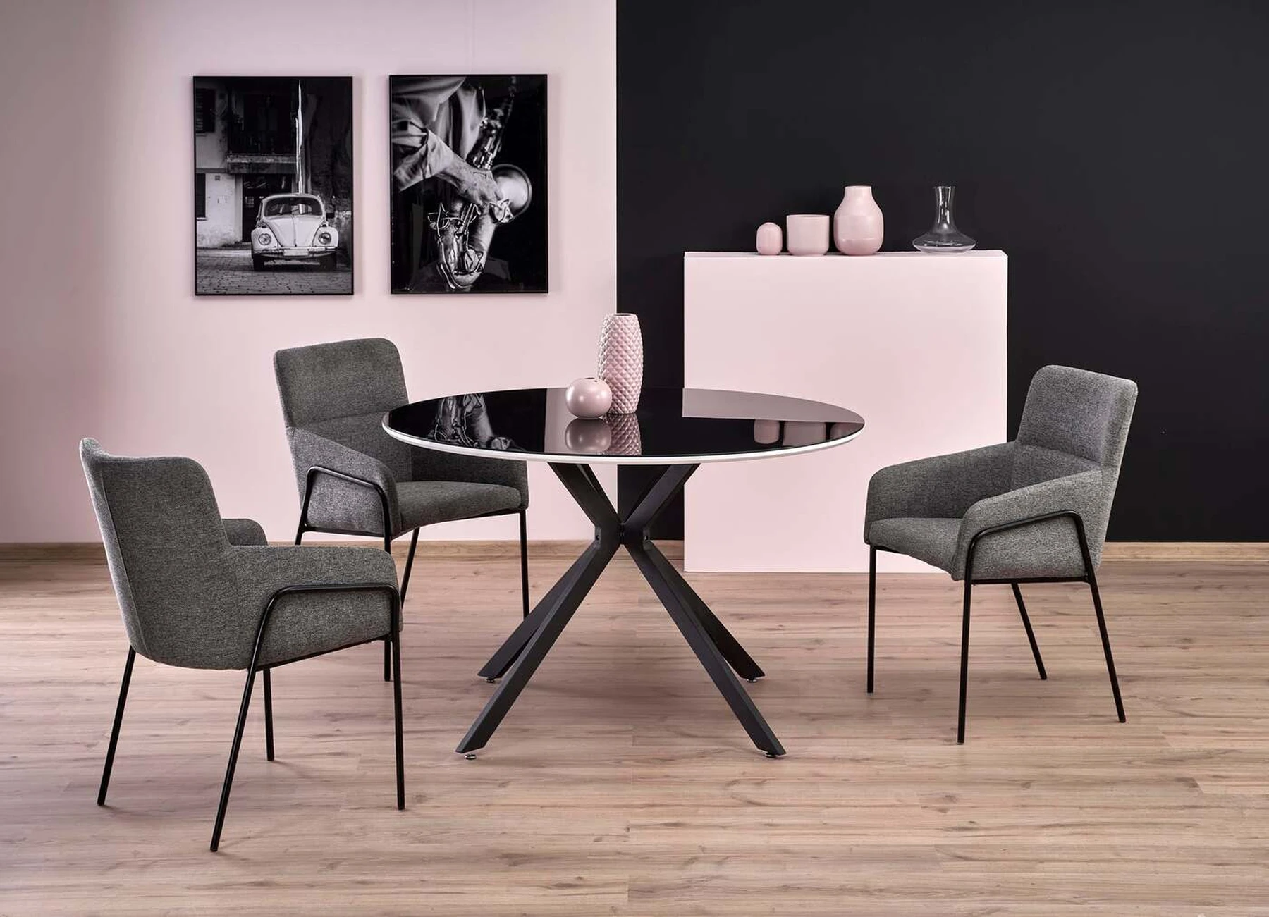 matmenys: fi120/76 cm, medžiaga: stiklas / lakuotas MDF / milteliniu būdu dažytas plienas, spalva: viršus - juoda / balta, kojos - juodos