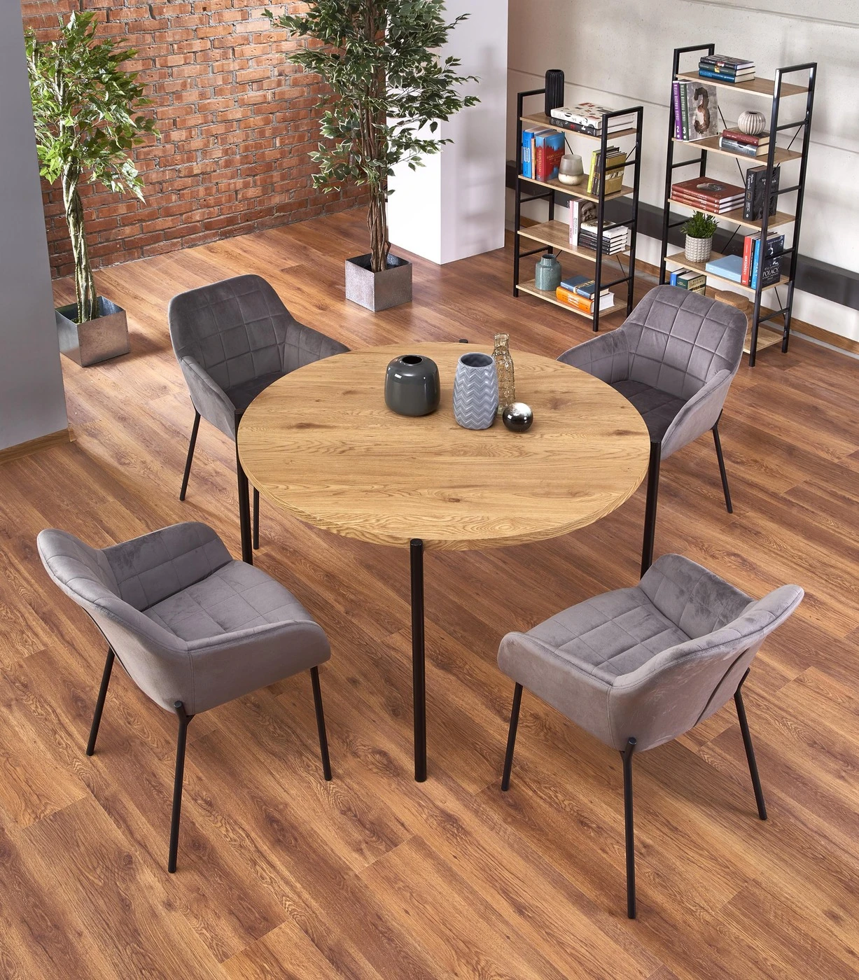 matmenys: fi120/76 cm, medžiaga: laminuotas MDF / milteliniu būdu dažytas plienas, spalva: viršus - auksinis ąžuolas, kojos - juodos