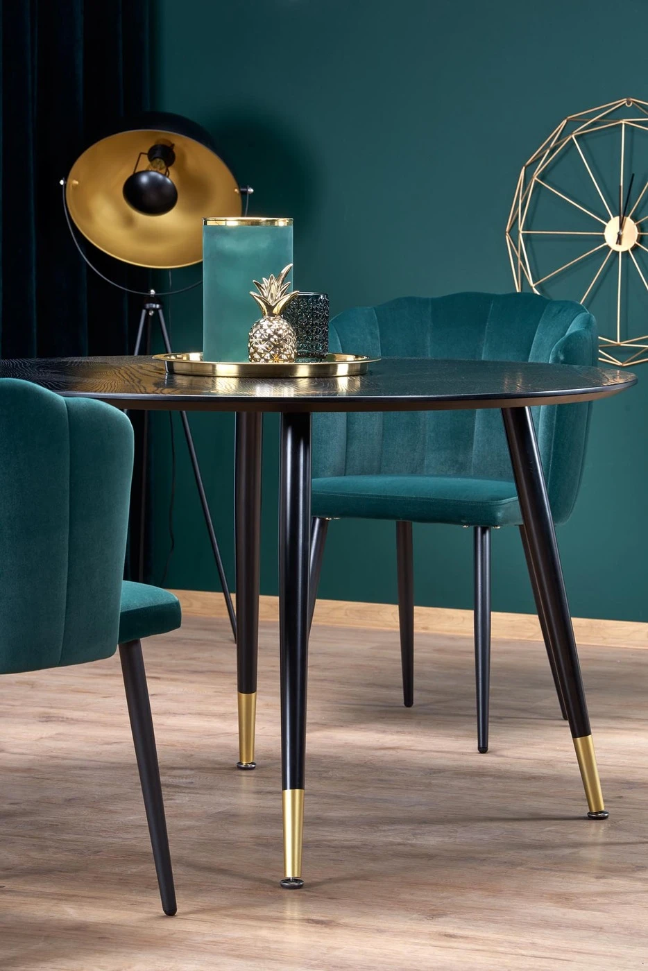 matmenys: o120/75 cm, medžiaga: lakuotas MDF / milteliniu būdu dažytas plienas / chromuotas plienas, spalva: viršus - juoda, kojos - juoda / auksinė