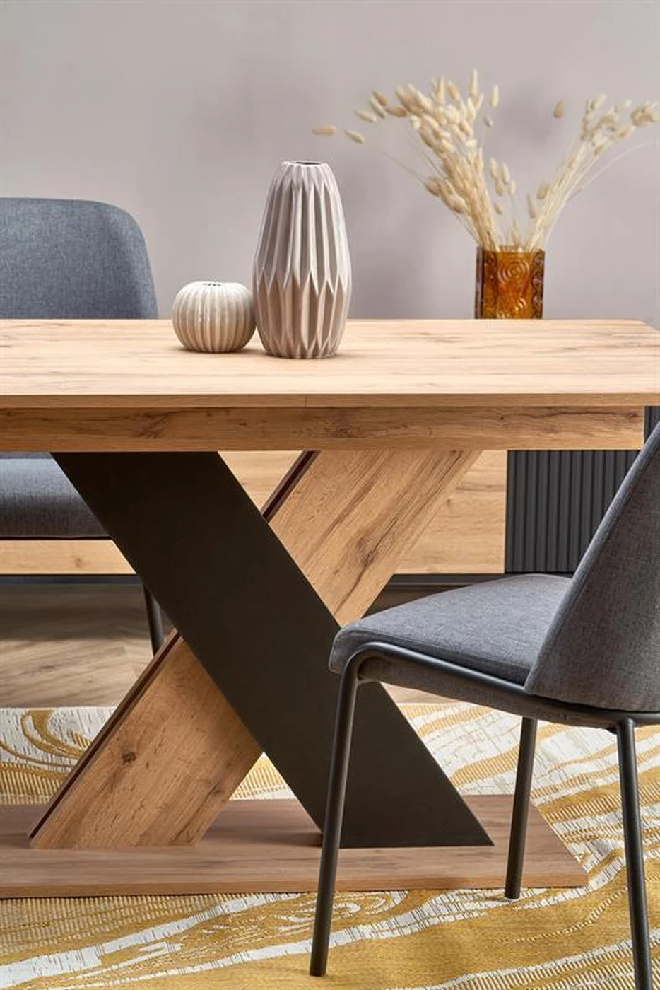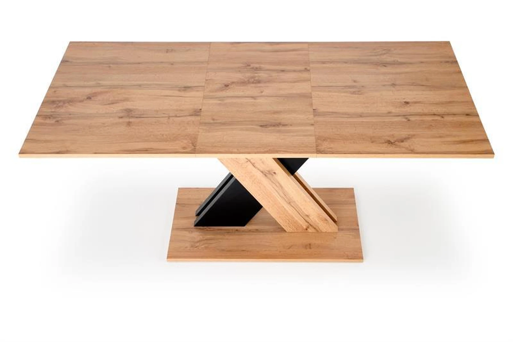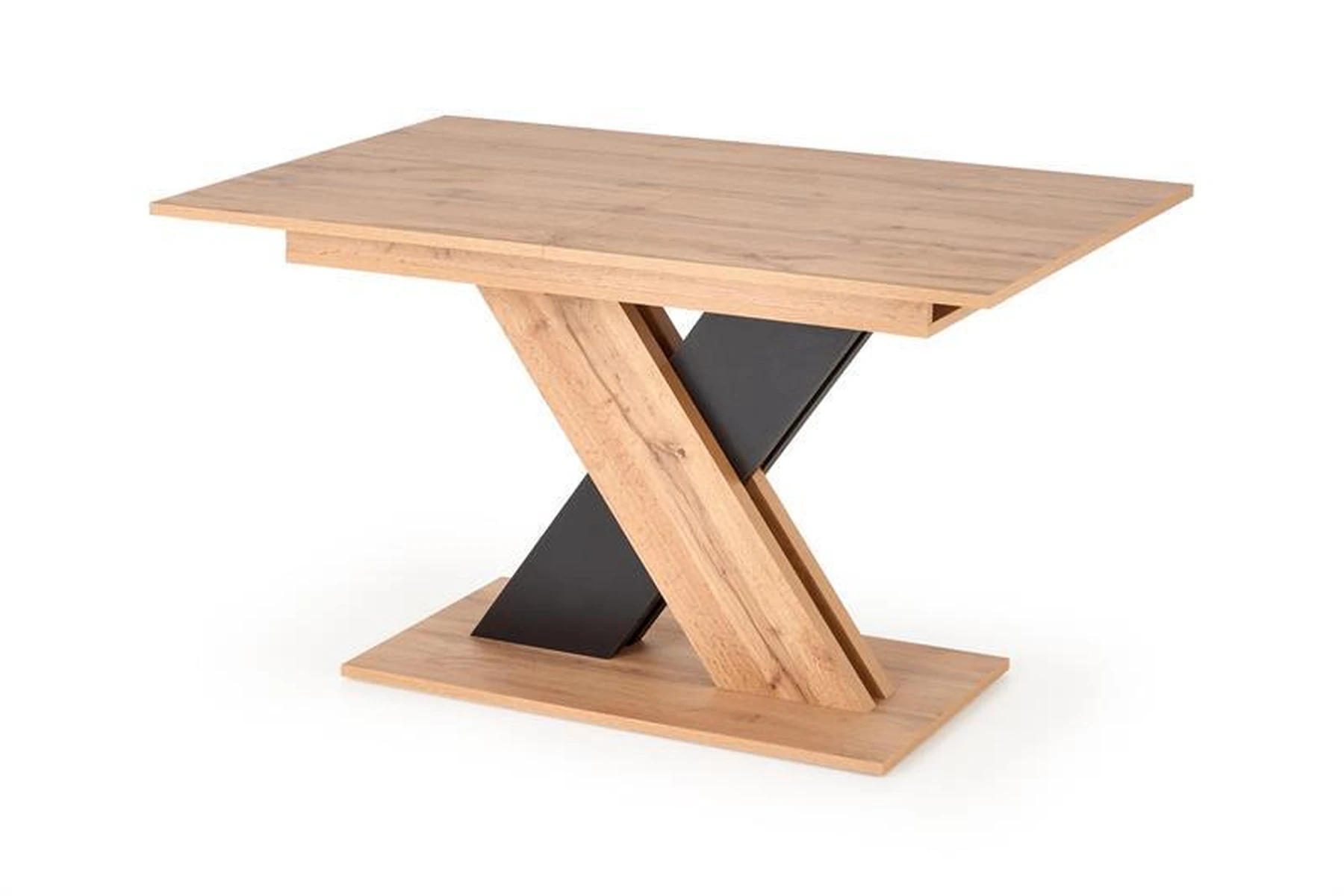 matmenys: 130-175/85/76 cm, prailginamasis stalas, medžiaga: laminuota medžio drožlių plokštė, spalva: ąžuolas / juodas