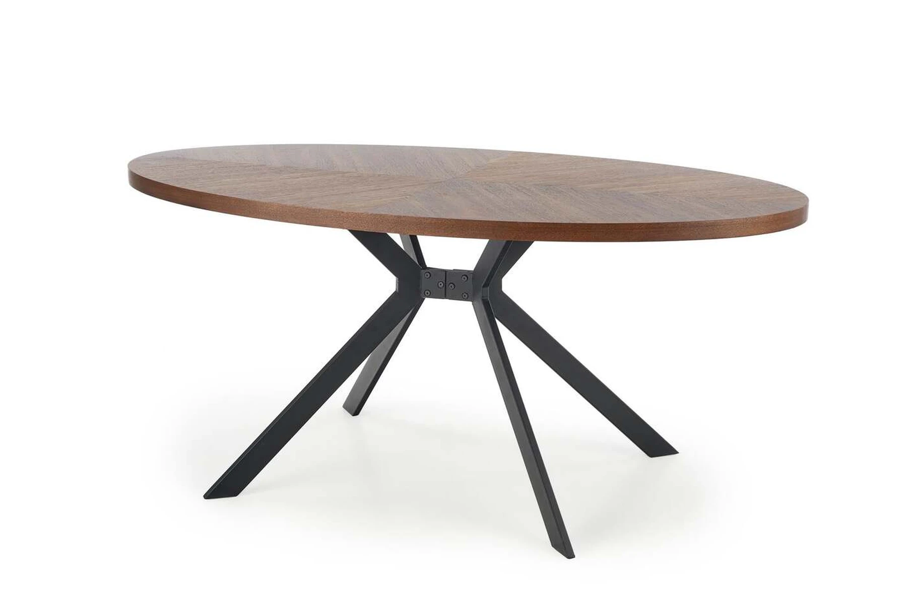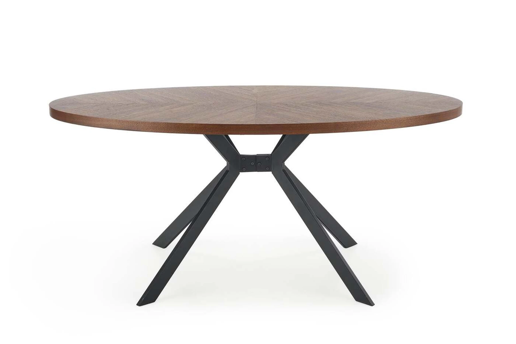 stalas, matmenys: 170/90/75 cm, medžiaga: MDF + natūrali fanera / milteliniu būdu dažytas plienas, spalva: viršus - riešutas, kojos - juodos
