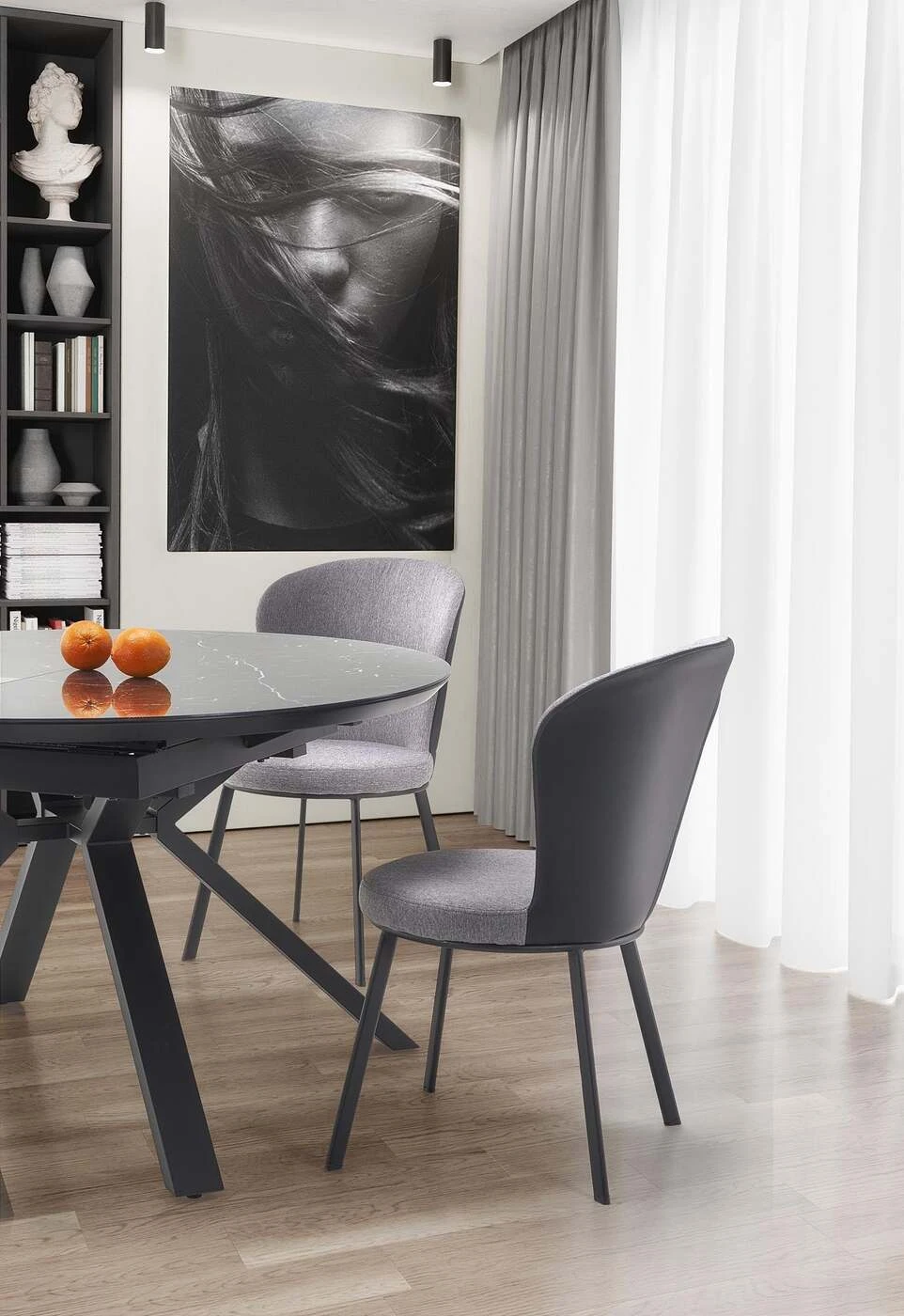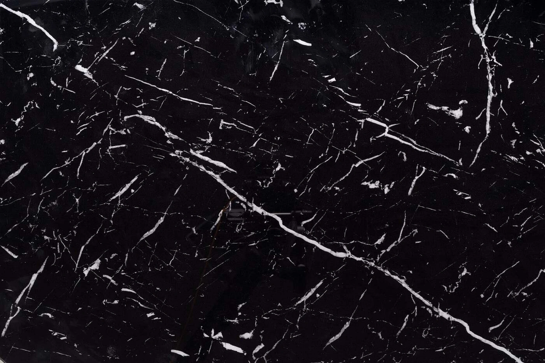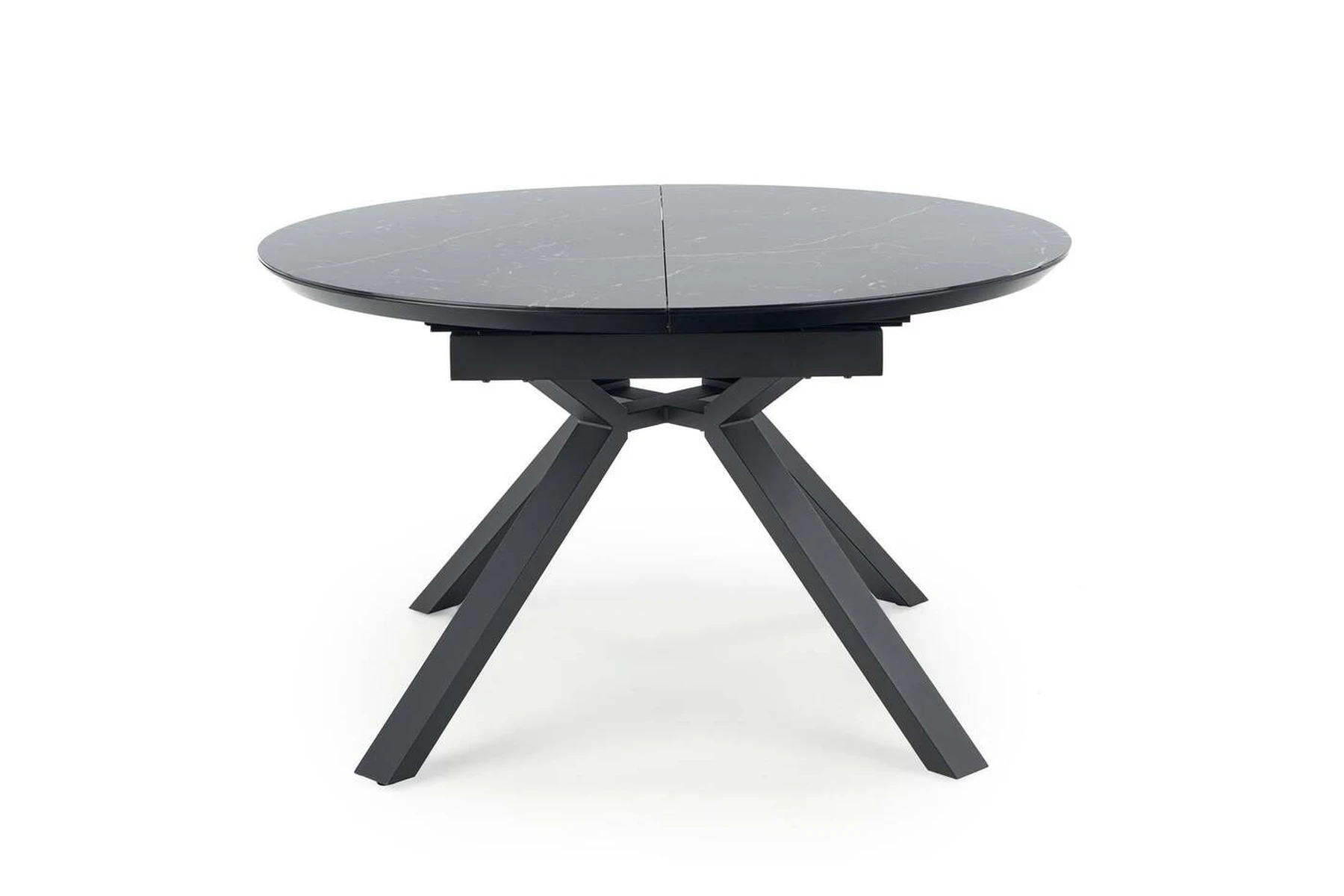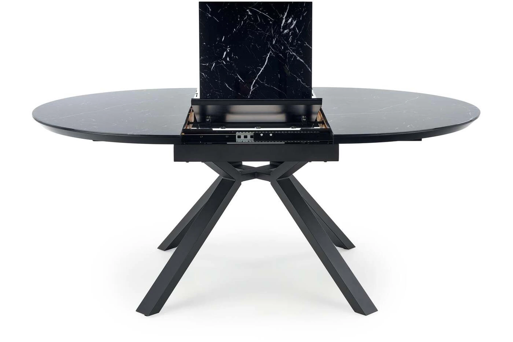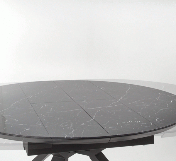 prailginamasis stalas, matmenys: 130-180/130/76 cm, medžiaga: stiklas / lakuotas MDF / milteliniu būdu dažytas plienas, spalva: viršus - juodas marmuras, kojos - juodos