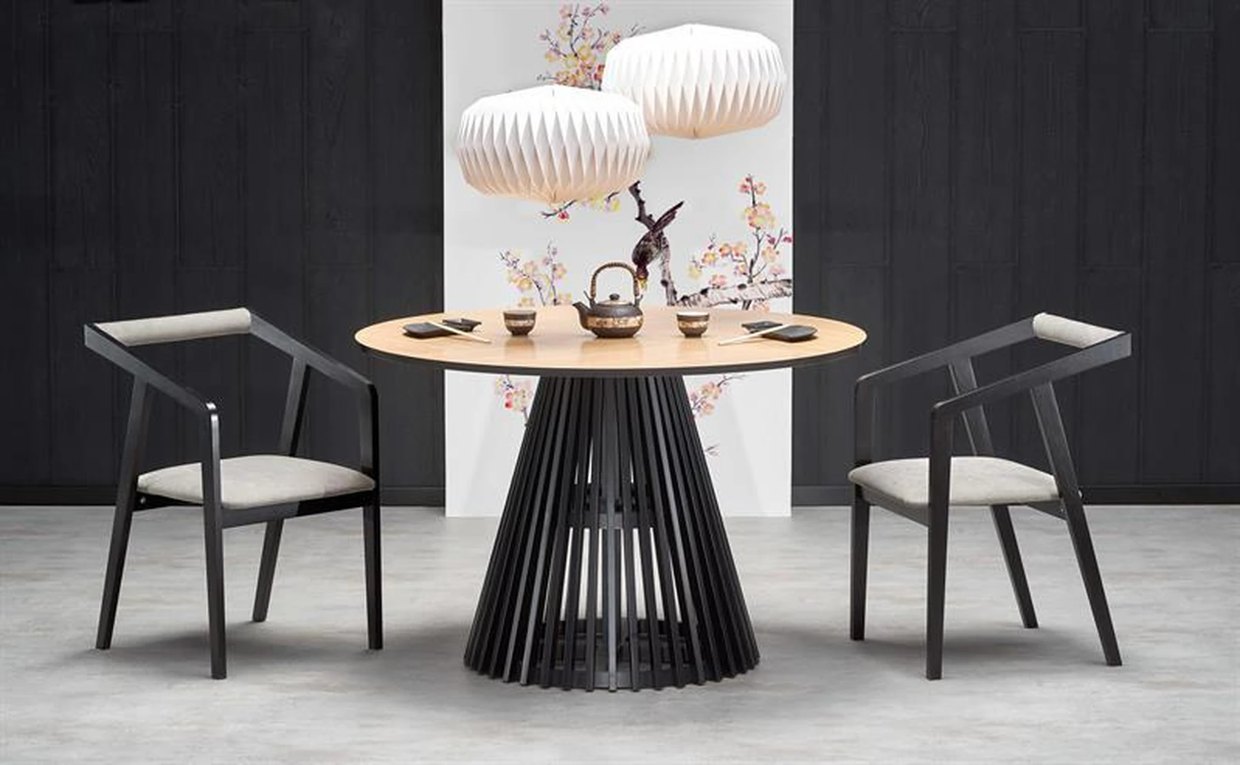 matmenys: fi120/77 cm, medžiaga: MDF + natūrali fanera - ąžuolas / buko masyvas / fanera, spalva: viršus - natūralus ąžuolas, kojos - juoda