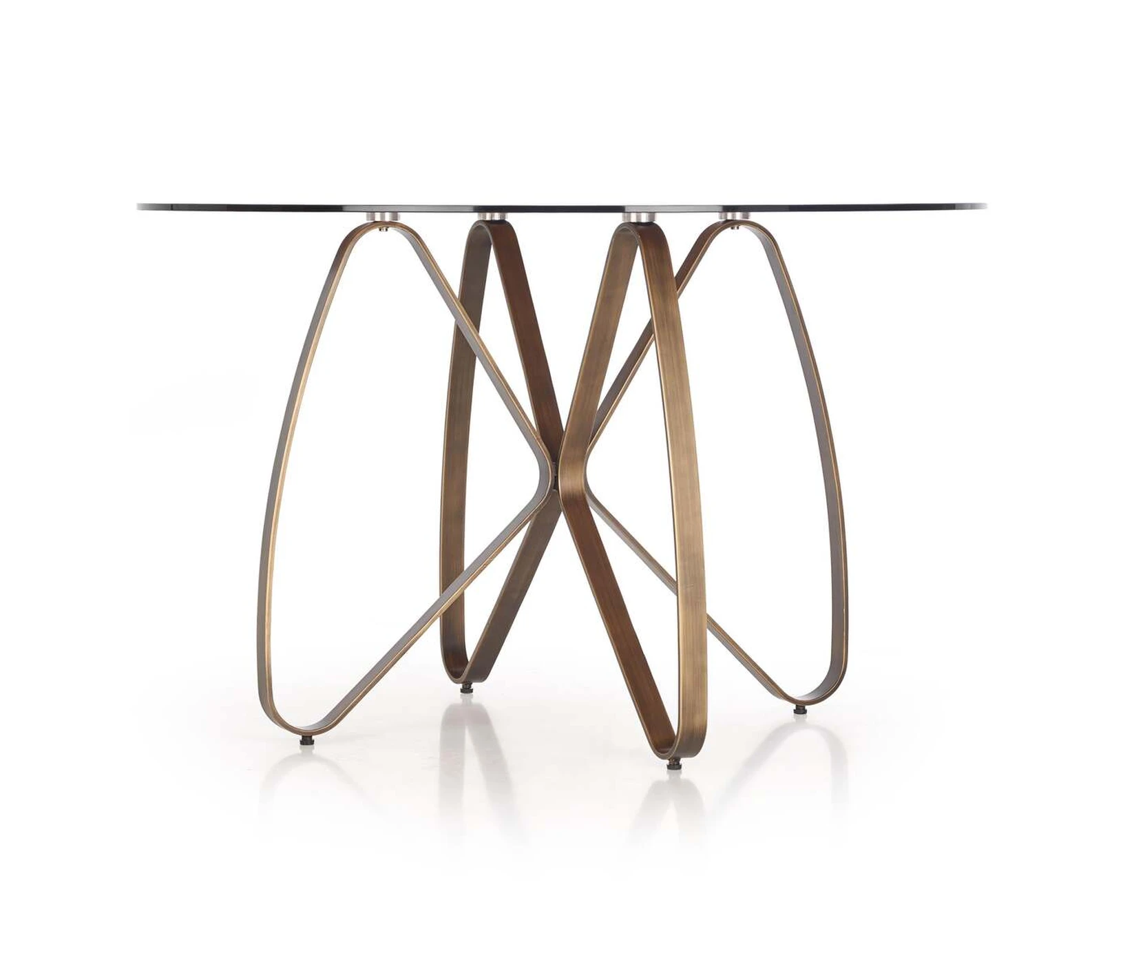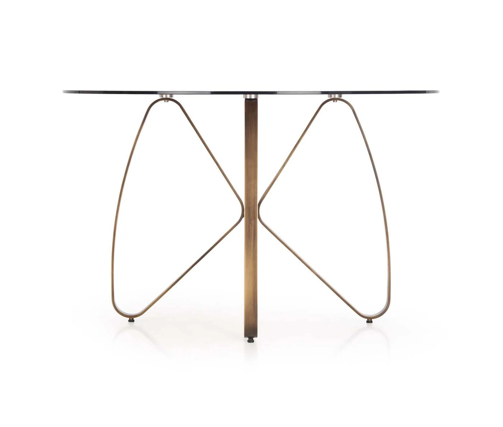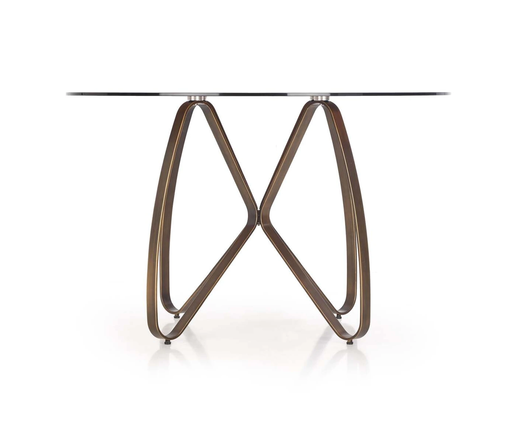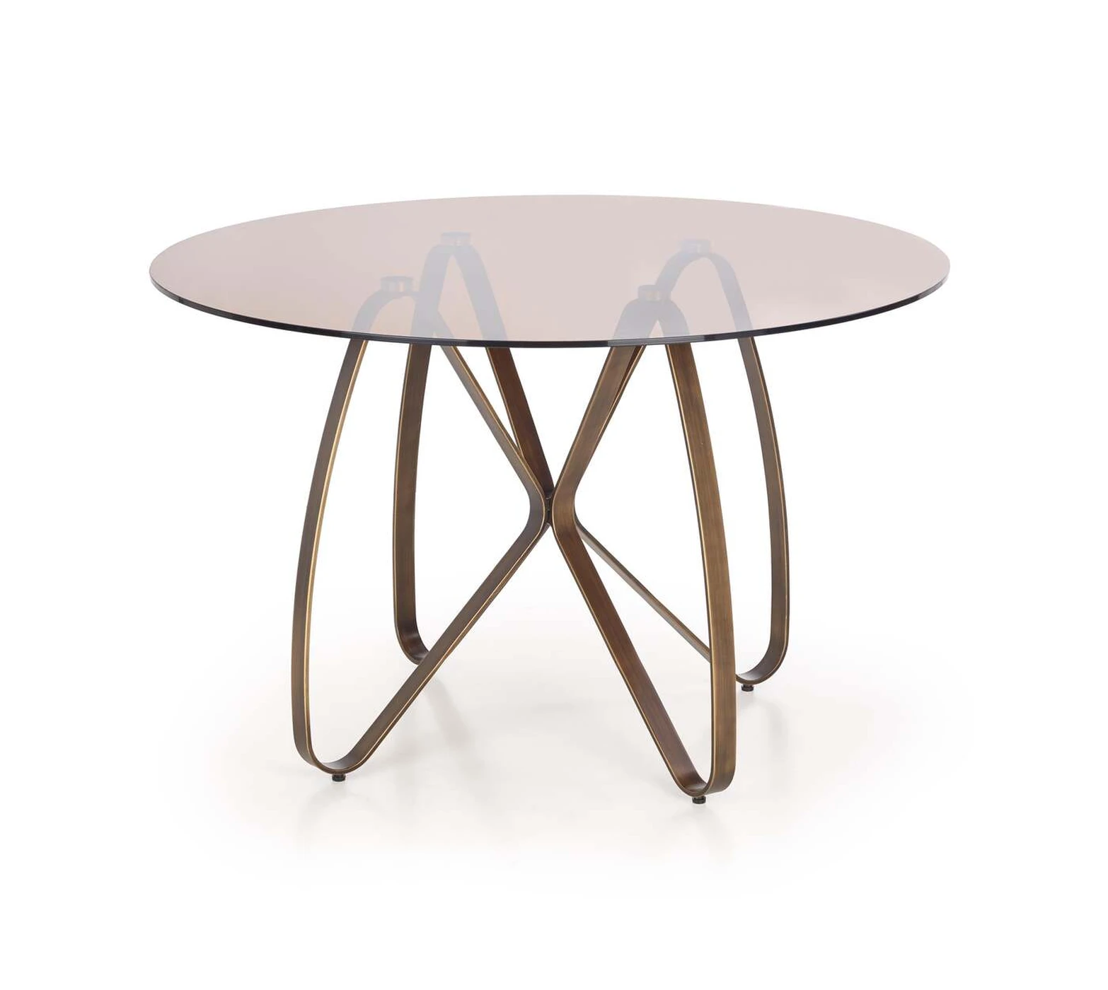 matmenys: O120/76 cm, medžiaga: stiklas / dažytas plienas, spalva: viršus - ruda, kojos - antikvarinis auksas
