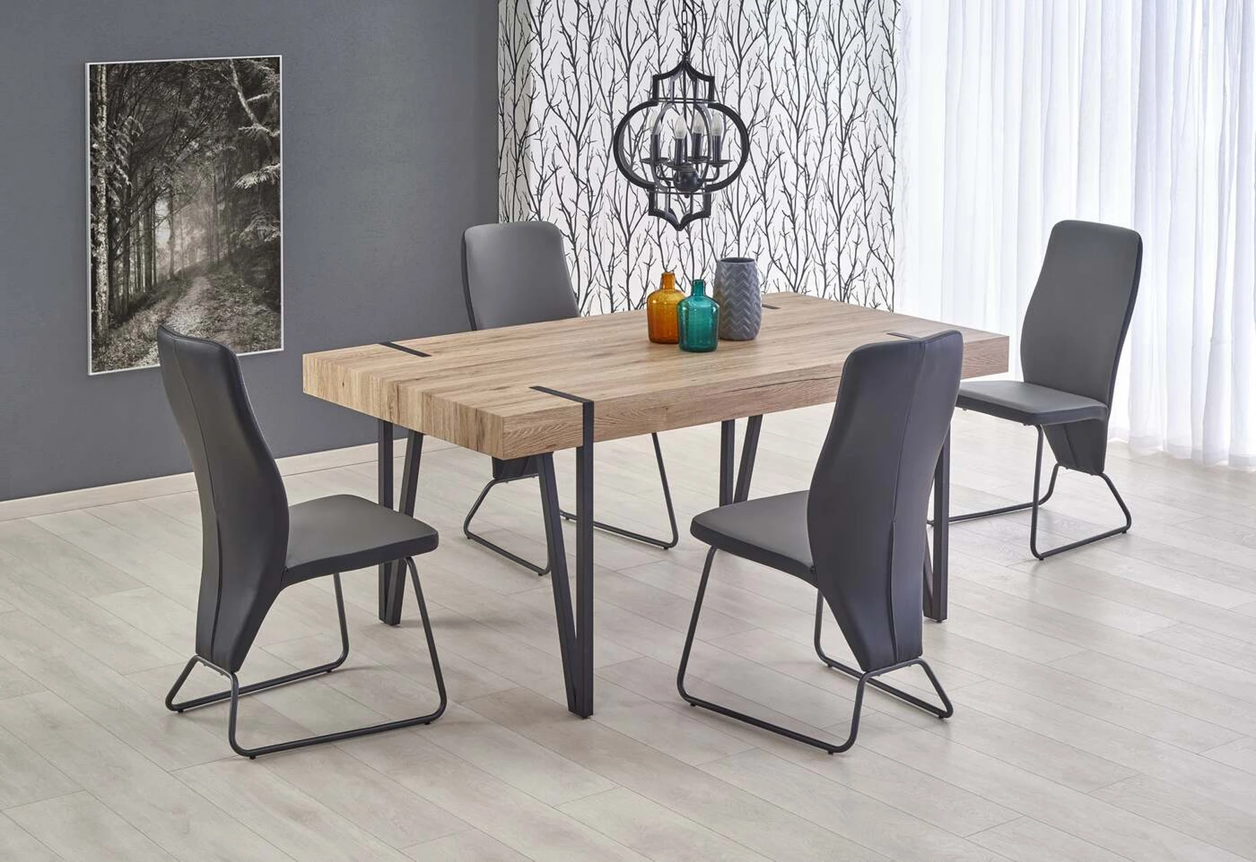 matmenys: 170/90/76 cm, medžiaga: laminuotas MDF / milteliniu būdu dažytas plienas, spalva: viršus - san remo ąžuolas, kojos - juodos
