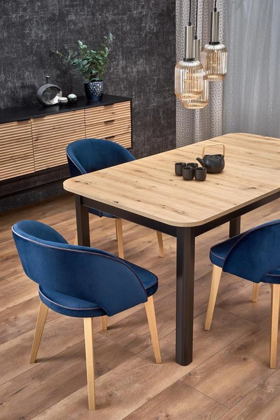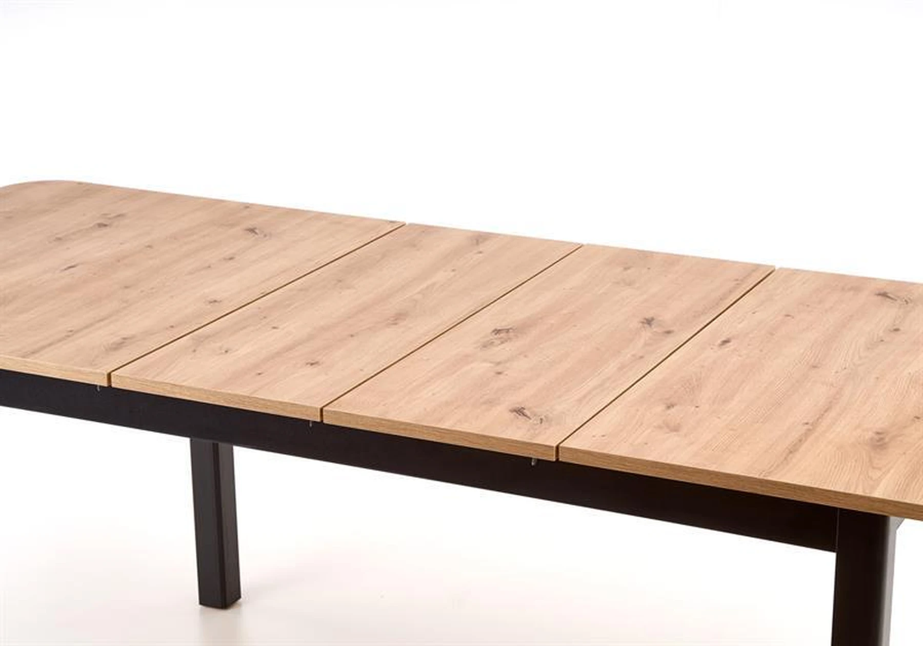 matmenys: 160-228/90/78 cm, prailginamasis stalas, medžiaga: laminuota medžio drožlių plokštė / laminuotas MDF, spalva: viršus - amatinis ąžuolas, kojos - juodos