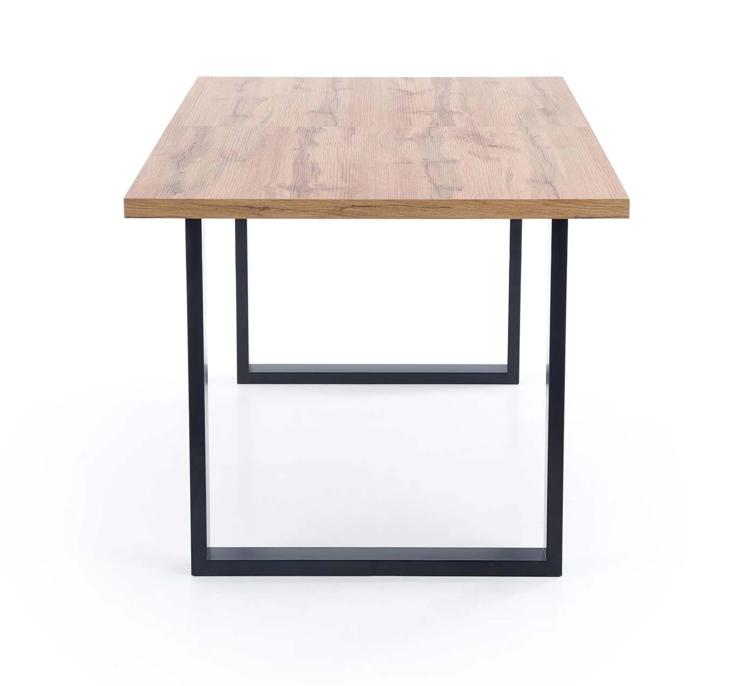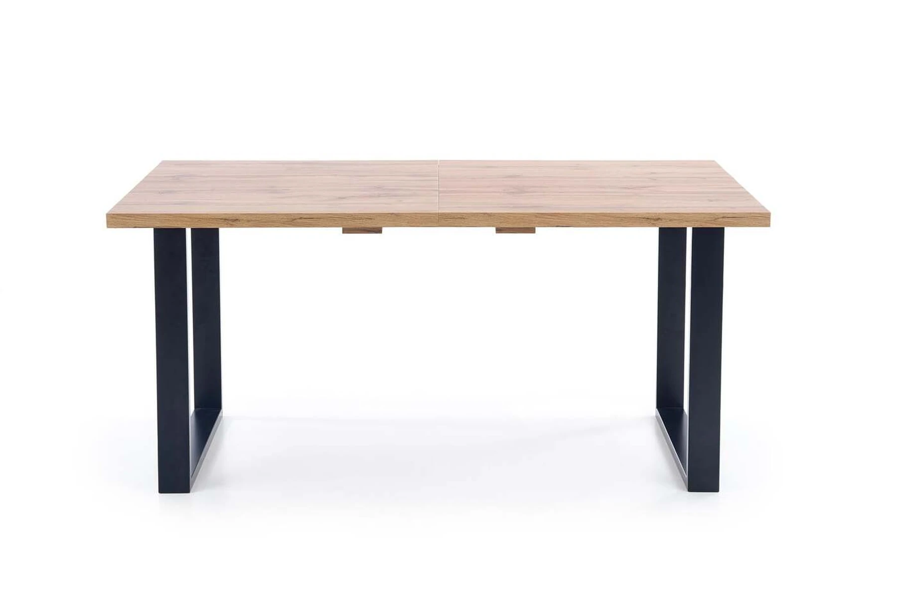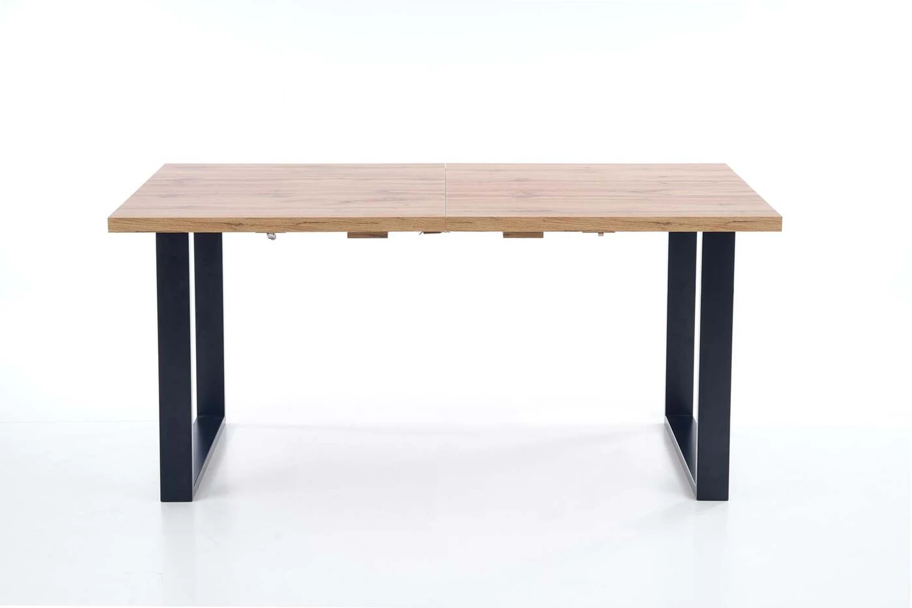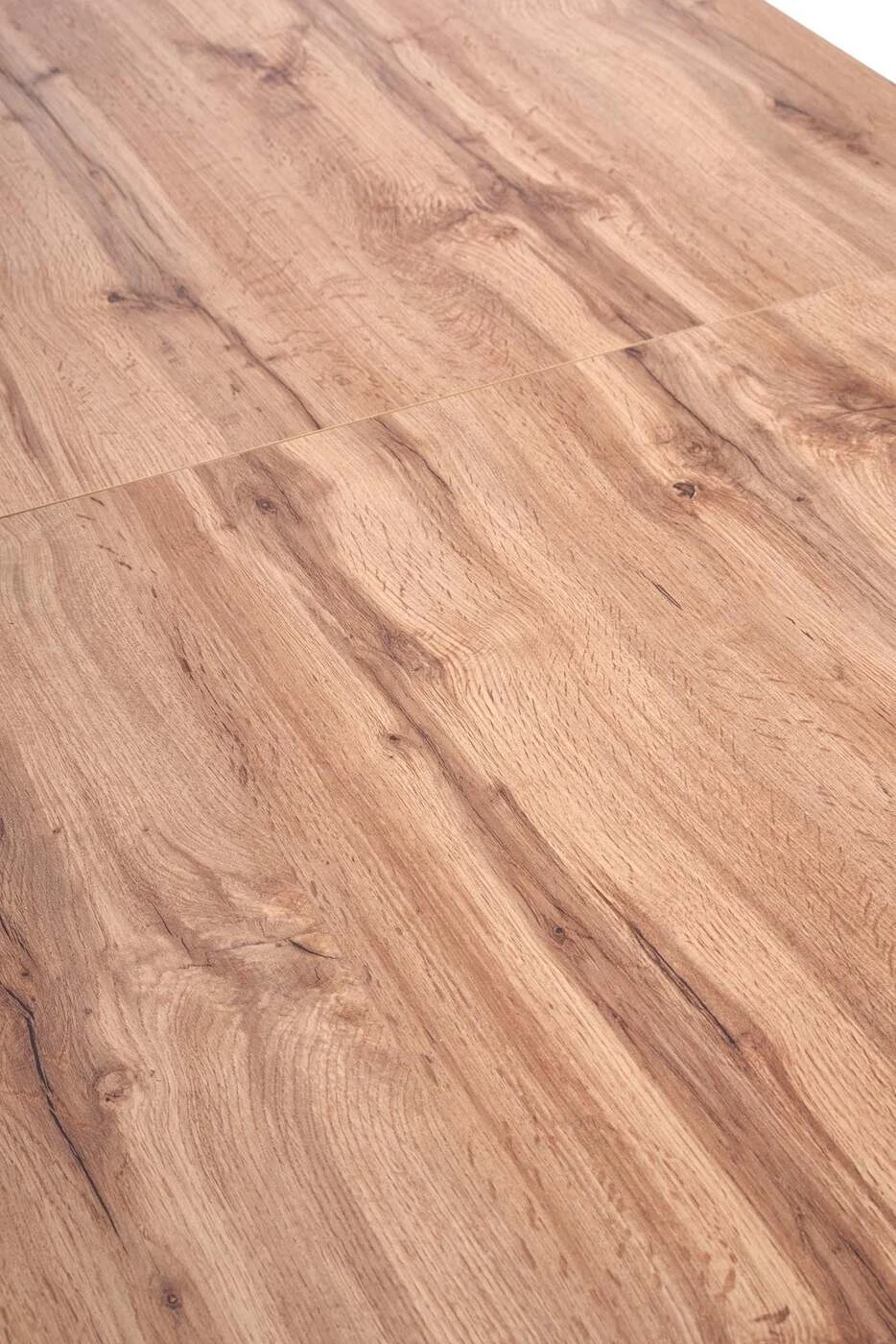 matmenys: 135÷185/85/74 cm, prailginamasis stalas, medžiaga: viršus - laminuota medžio drožlių plokštė, ABS plastikas iš kraštų, kojos - milteliniu būdu dažytas plienas, spalva: viršus - ąžuolas, kojos - juodos