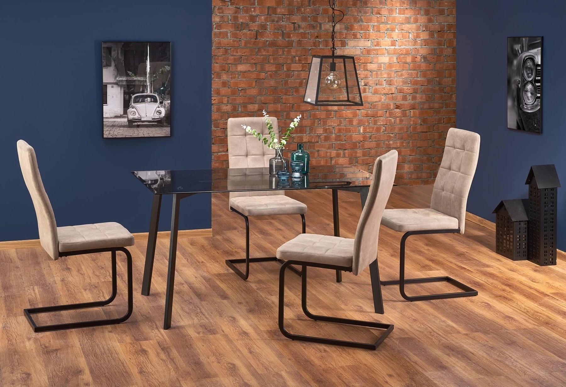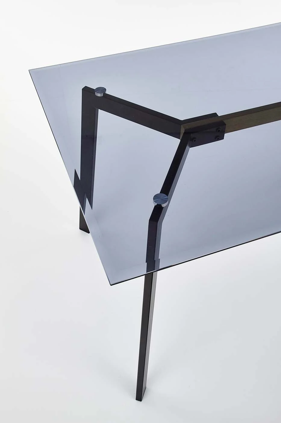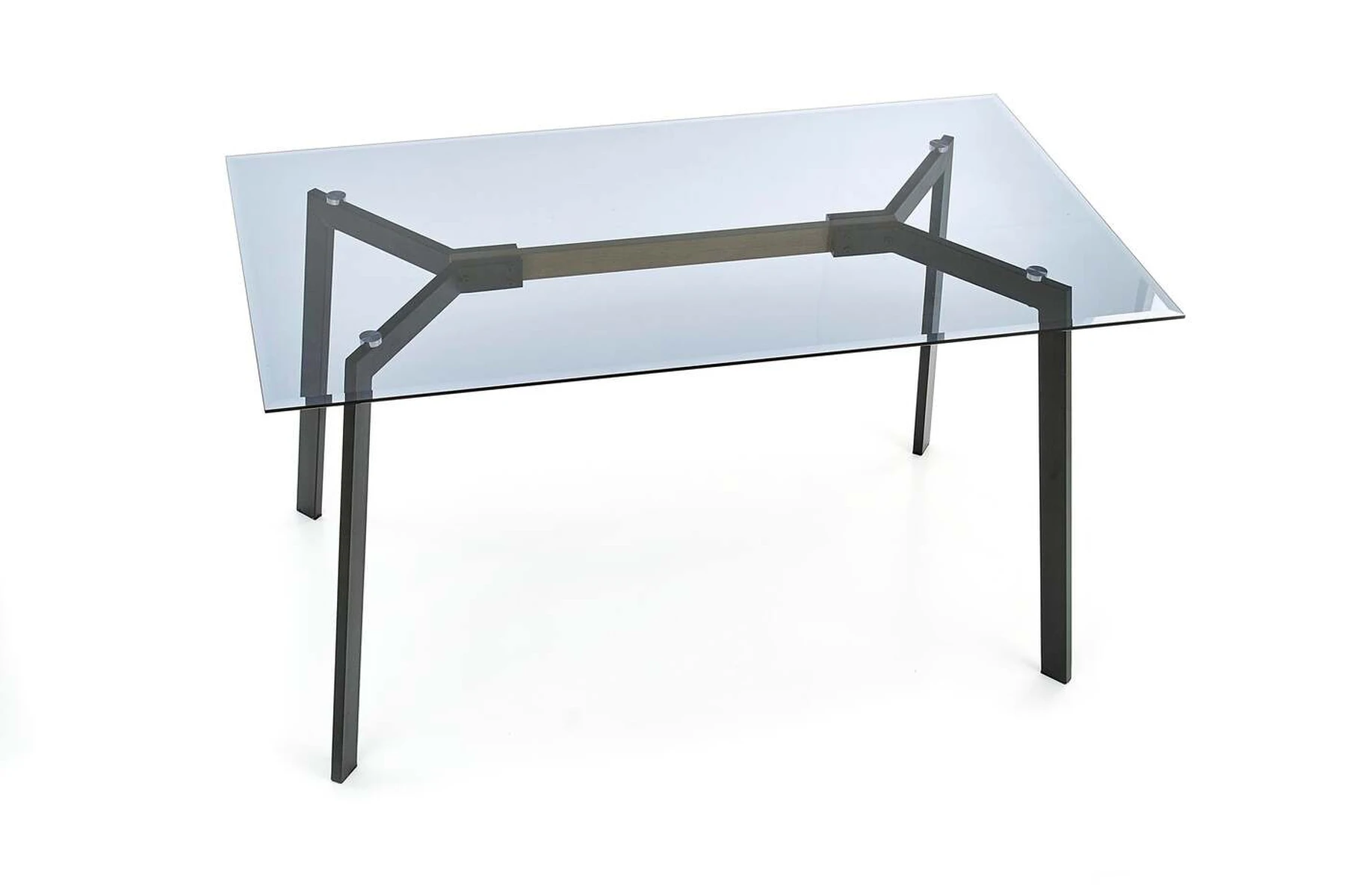 matmenys: 140/80/75 cm, medžiaga: stiklas / medžio masyvas / milteliniu būdu dažytas plienas, spalva: viršus - rūkytas, kojos - juodos