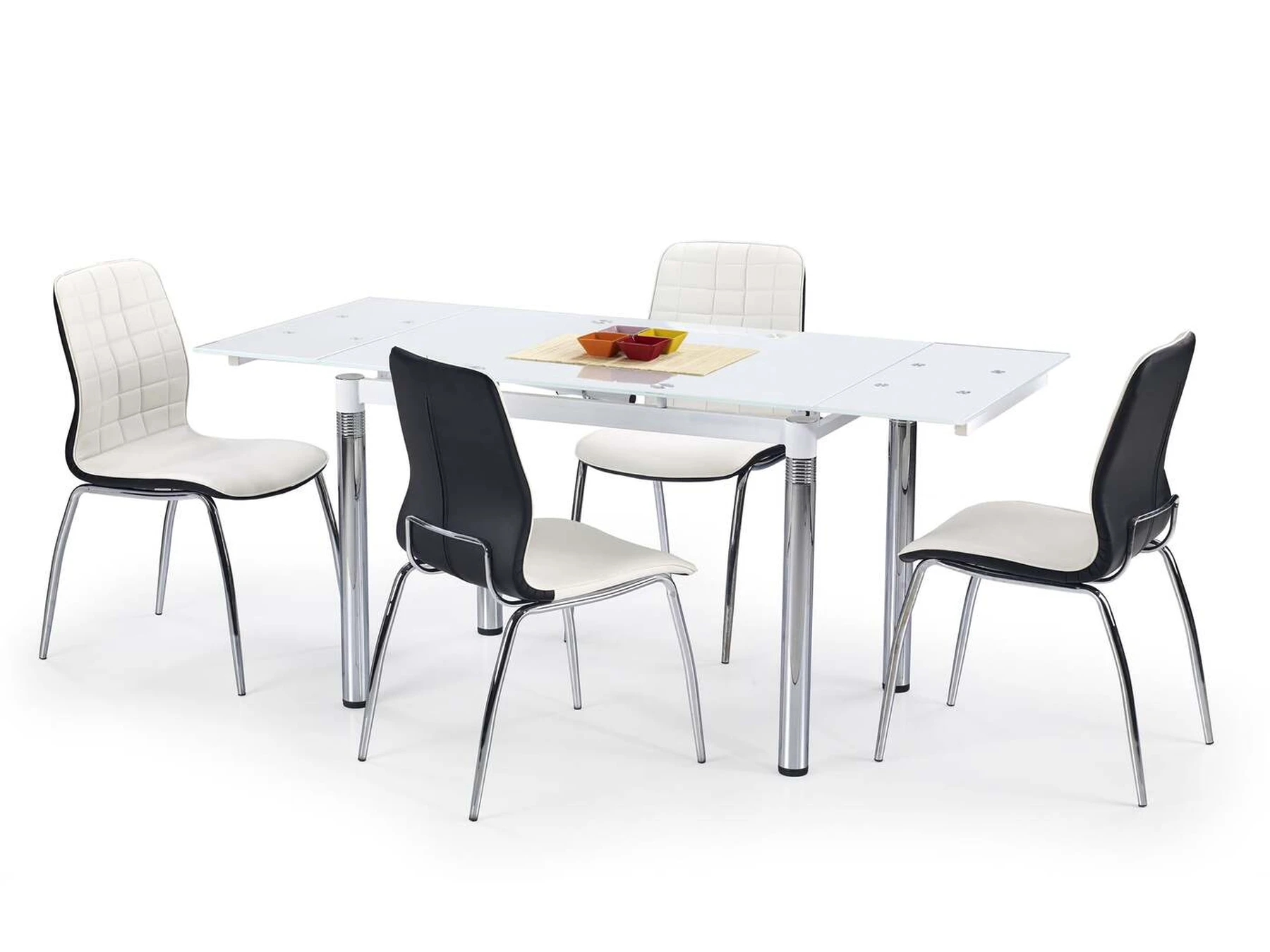 prailginamasis stalas, matmenys: 110÷170/74/76 cm, medžiaga: stiklas / chromo plienas, spalva: stiklas - balta