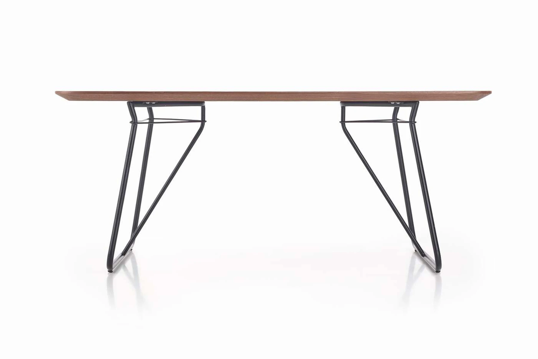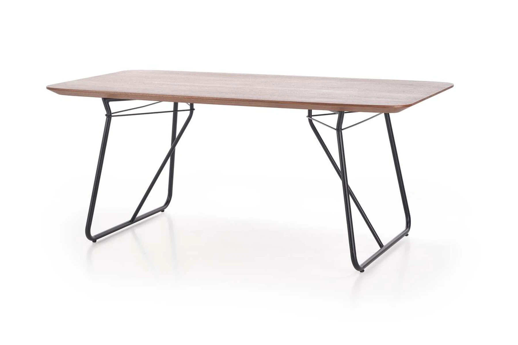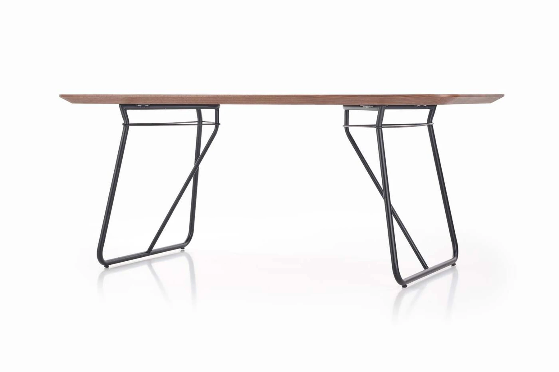 matmenys: 180/90/76 cm, medžiaga: MDF + natūrali fanera / milteliniu būdu dažytas plienas, spalva: viršus - riešutas, kojos - juodos