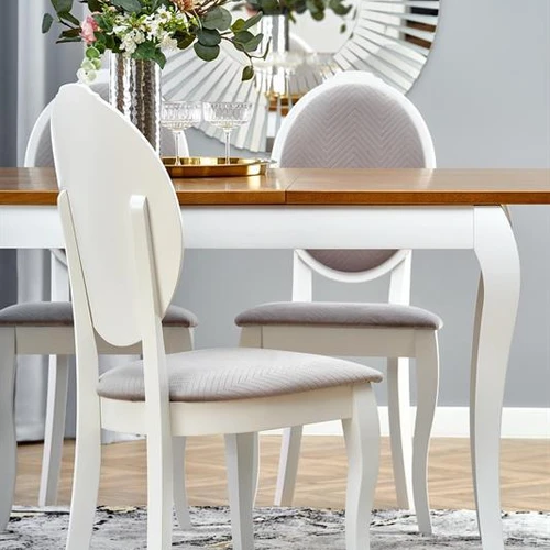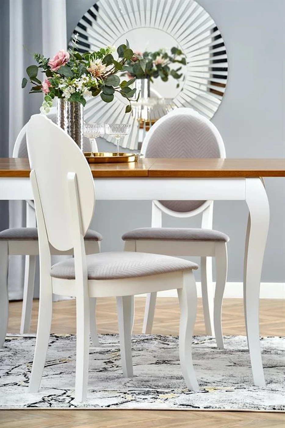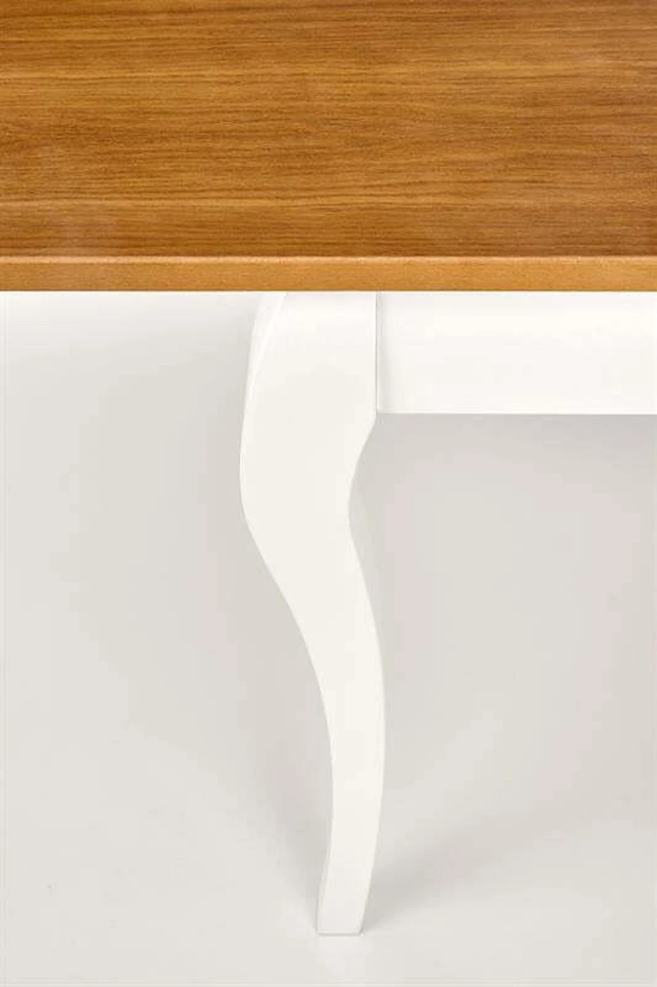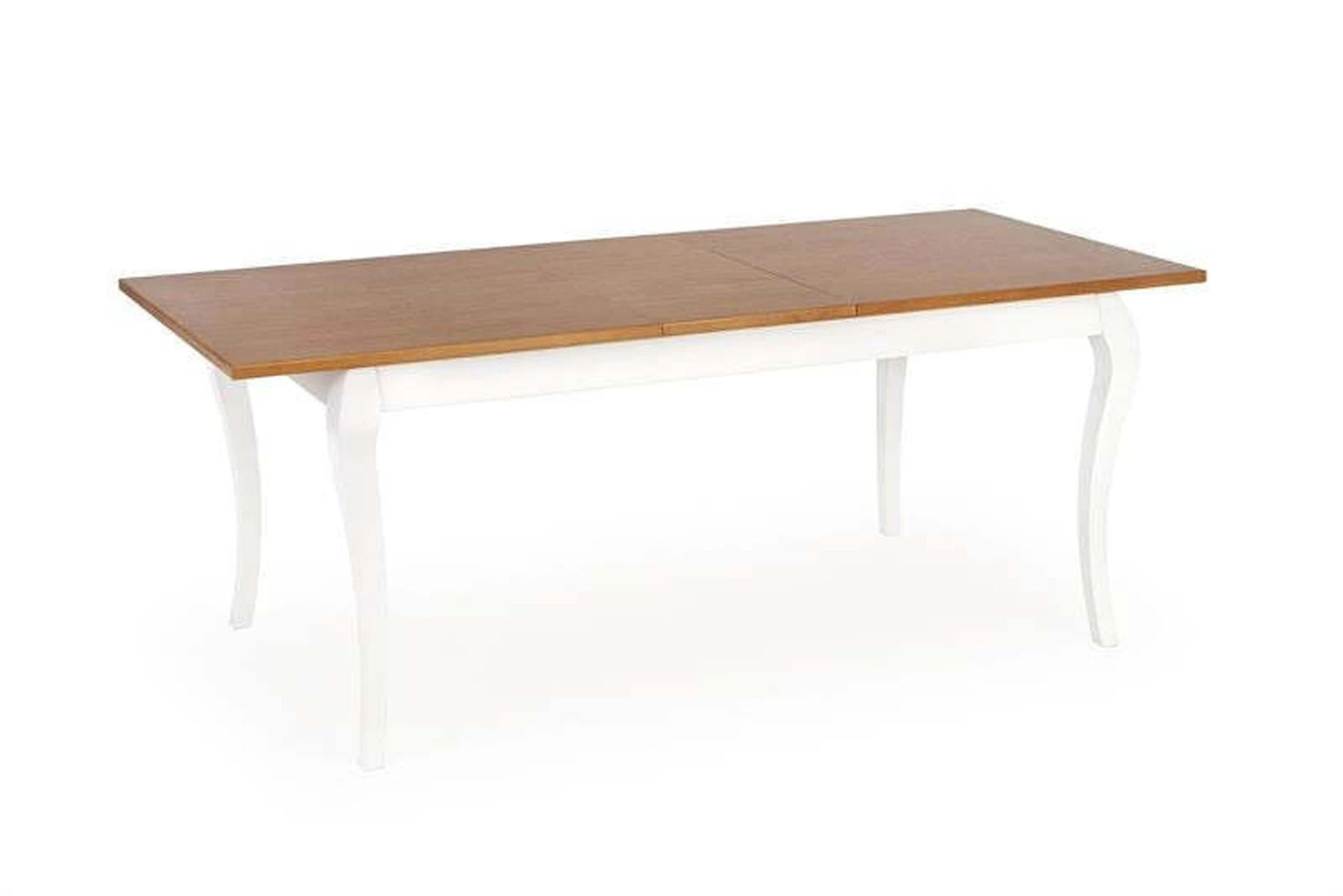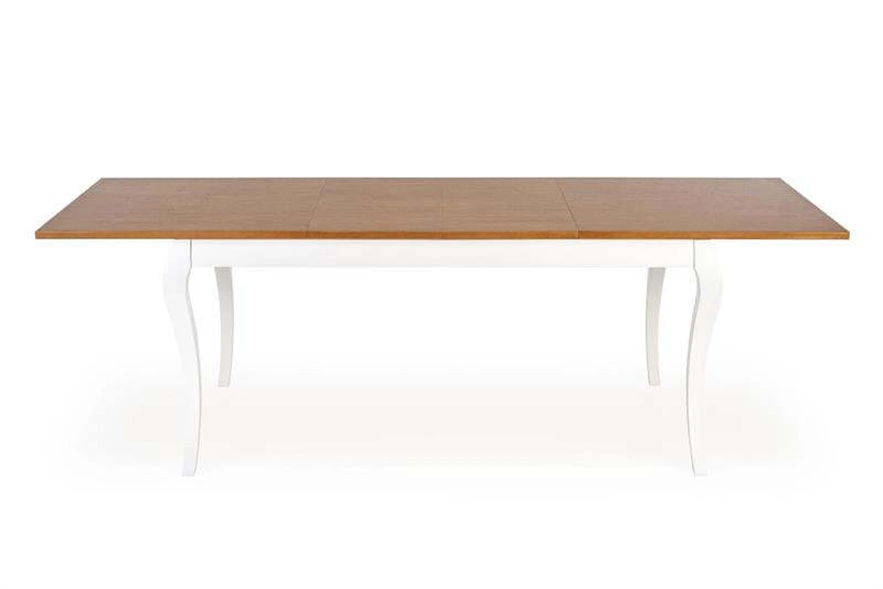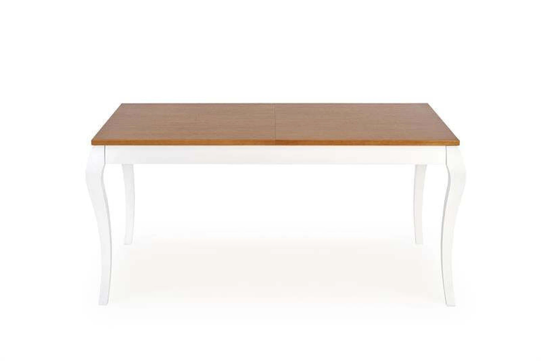 prailginamasis stalas, matmenys: 160-240/90/76 cm, medžiaga: viršus - baldinė lenta + natūralaus ąžuolo vanera, kojos - buko masyvo, spalva: viršus - tamsus ąžuolas, kojos - balta