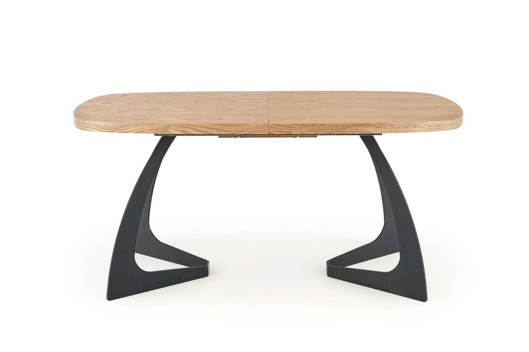 prailginimo stalas, matmenys: 160-200/90/75 cm, medžiaga: MDF + natūrali fanera / milteliniu būdu dažytas plienas, spalva: viršus - natūralus ąžuolas, kojos - juodos