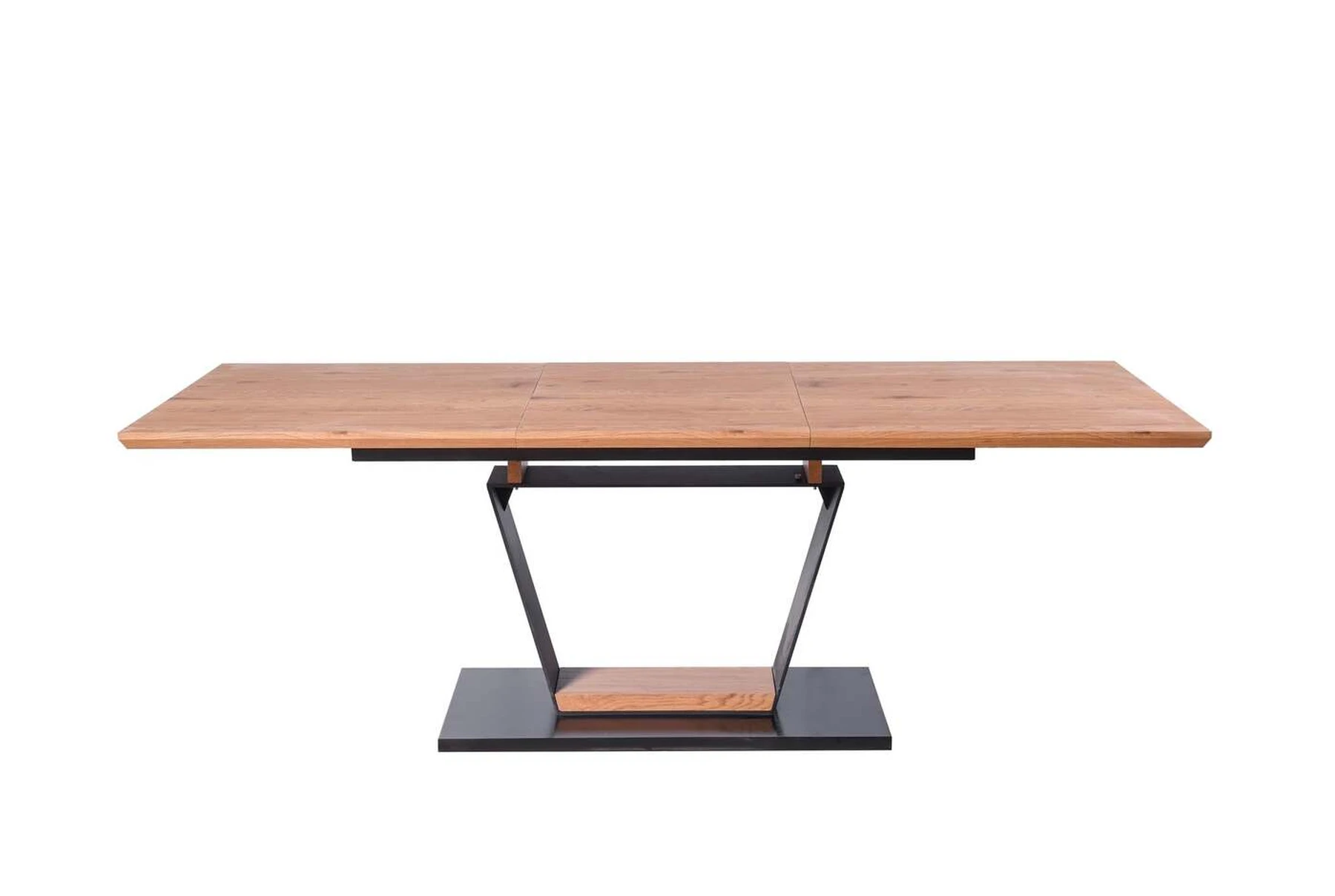 prailginamasis stalas, matmenys: 160-220/90/77 cm, medžiaga: laminuotas MDF / lakuotas MDF, spalva: viršus - auksinis ąžuolas, koja - juodas / auksinis ąžuolas