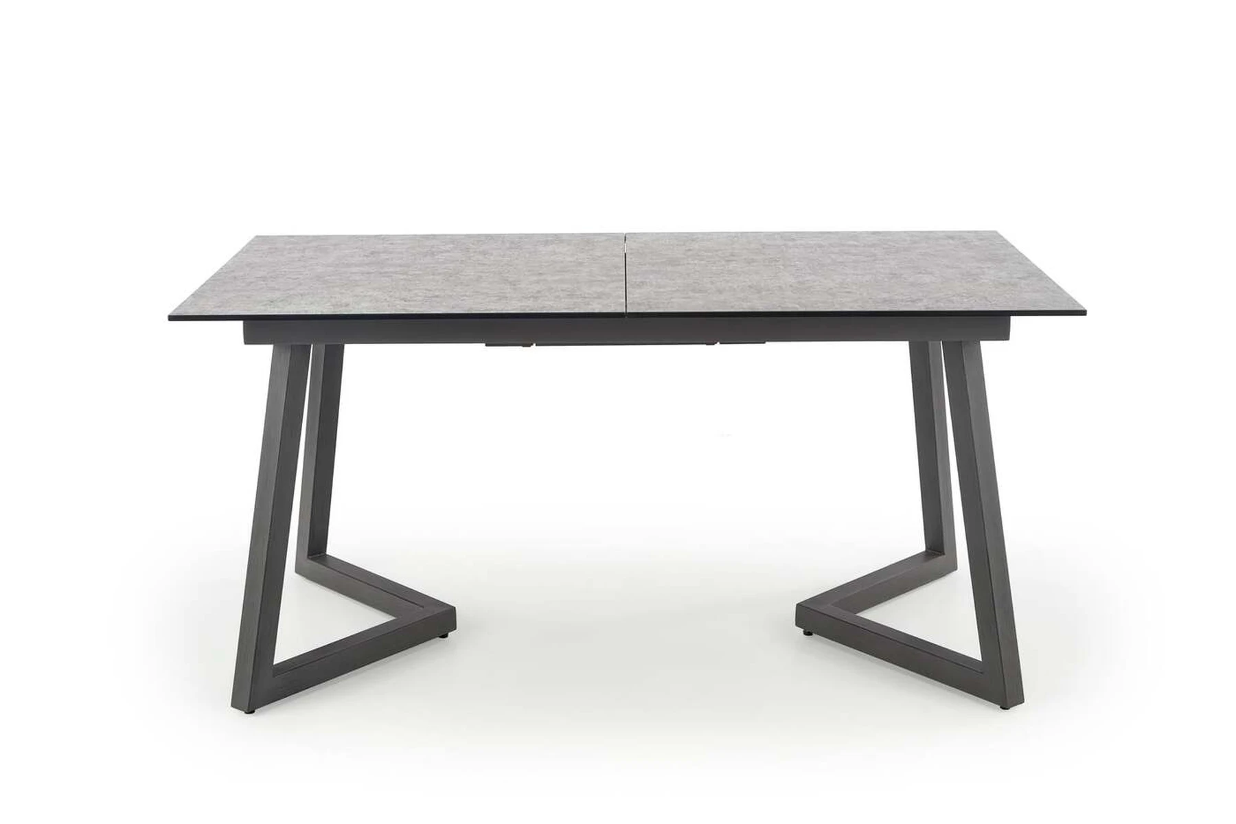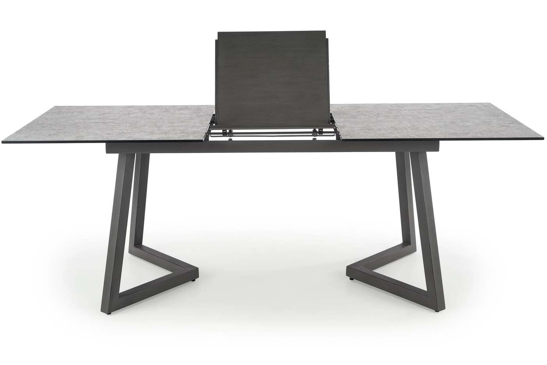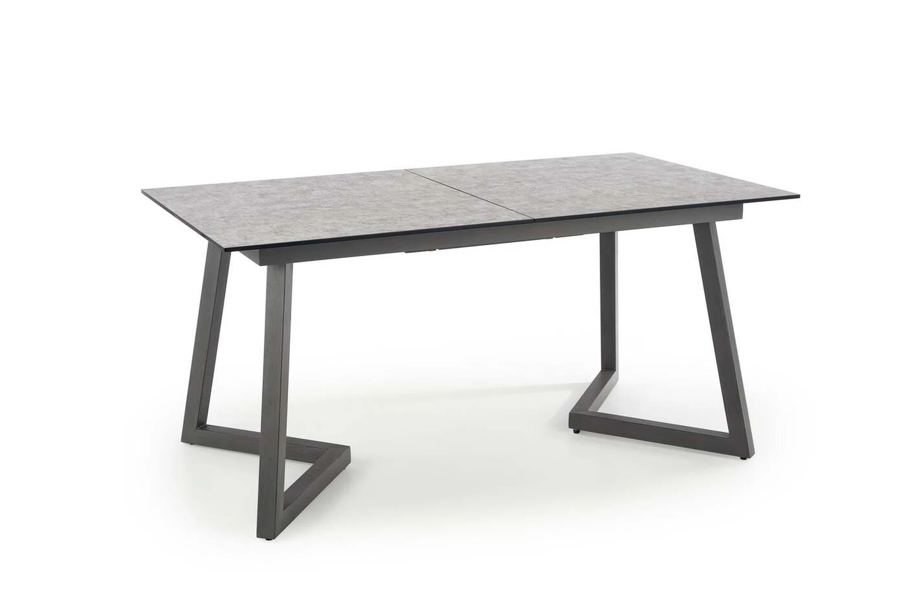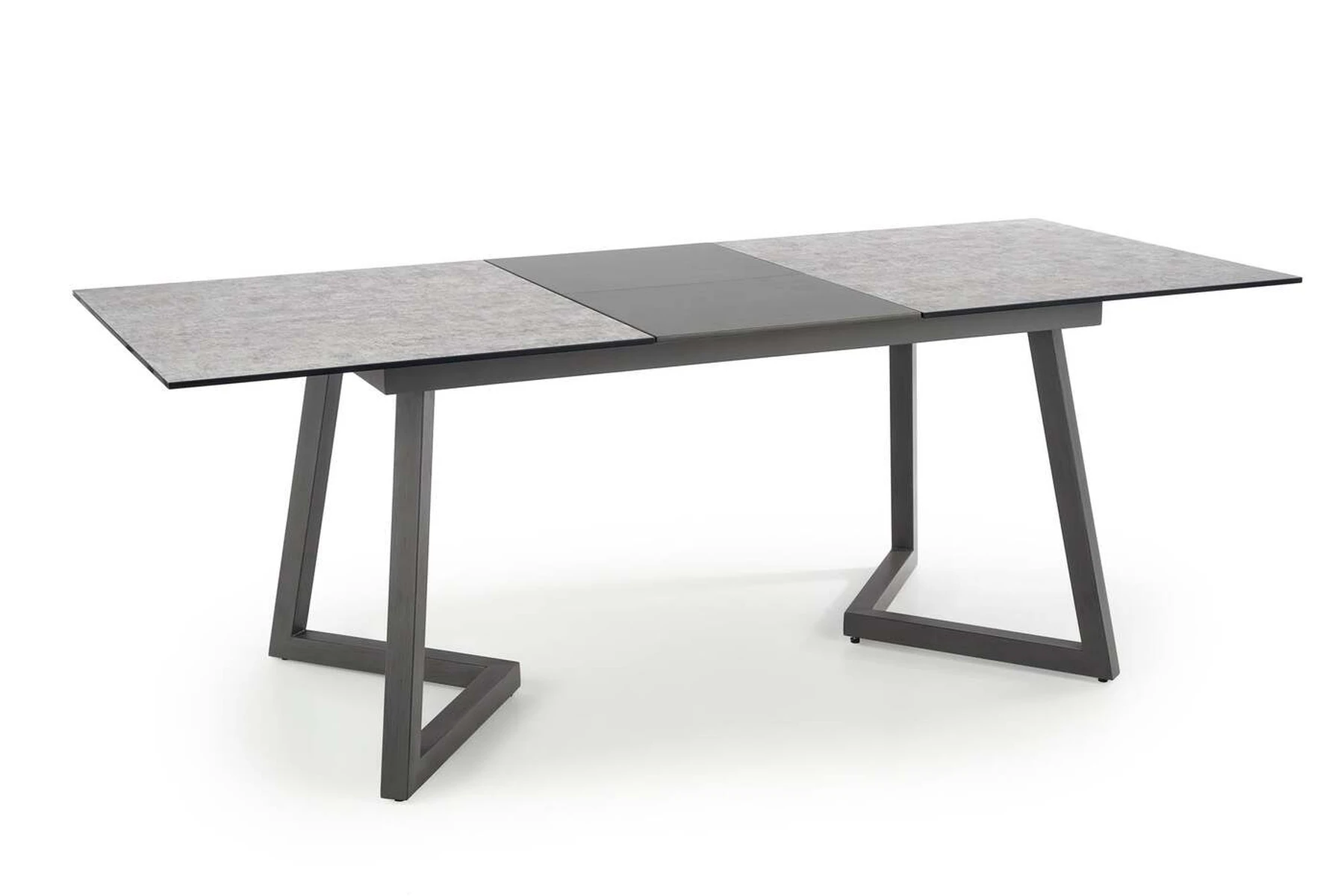 prailginamasis stalas, matmenys: 160-210/90/76 cm, medžiaga: stiklas / lakuotas MDF / milteliniu būdu dažytas plienas, spalva: viršus - šviesiai pilka / tamsiai pilka, kojos - tamsiai pilka