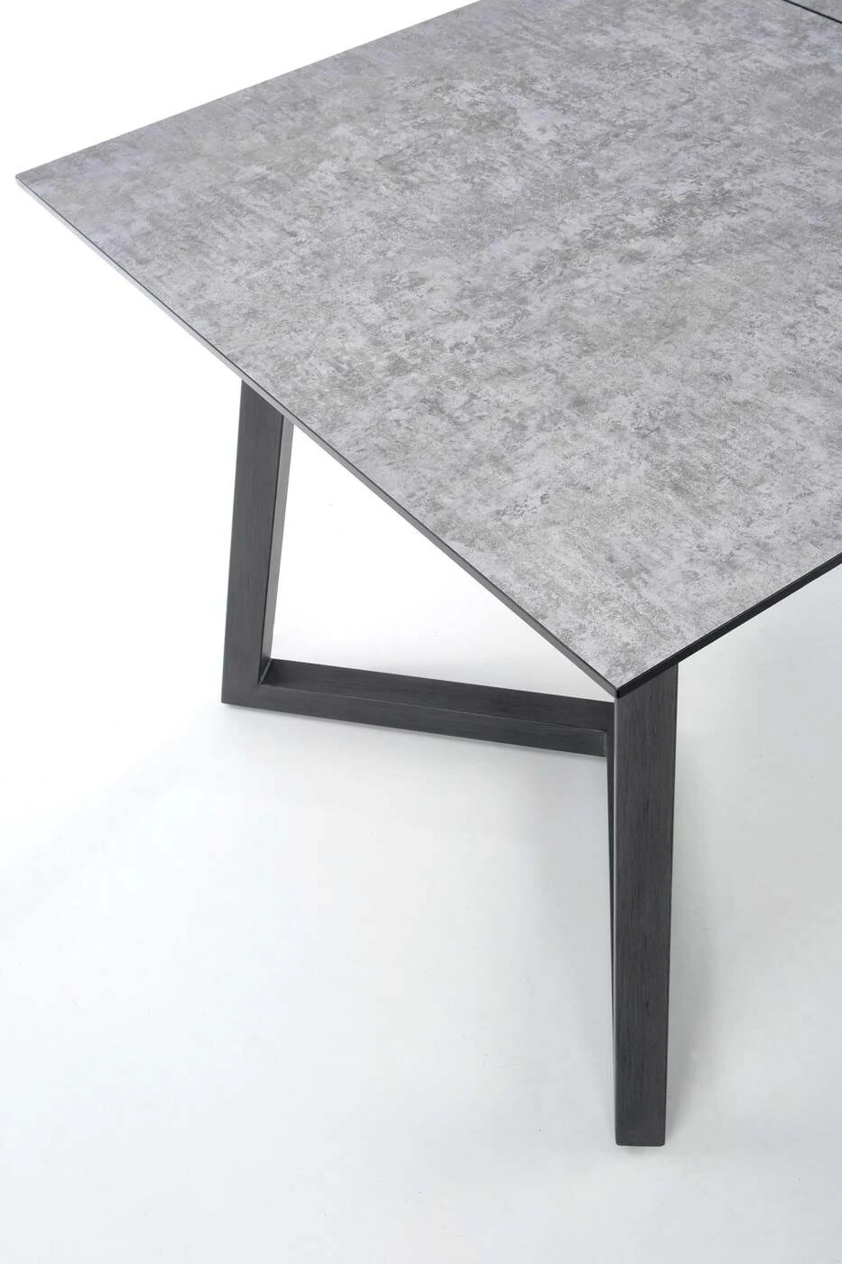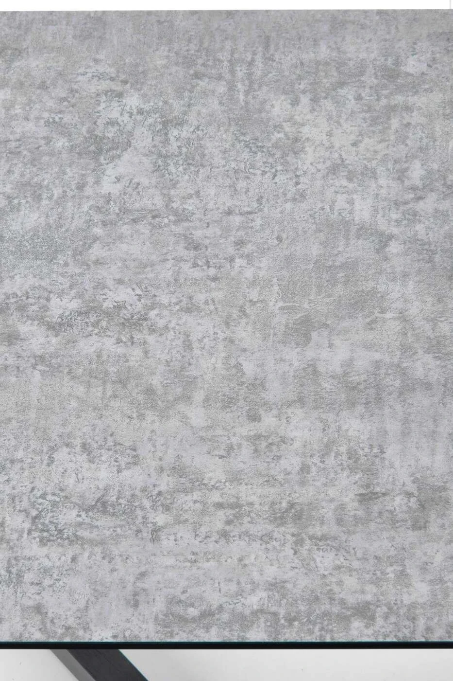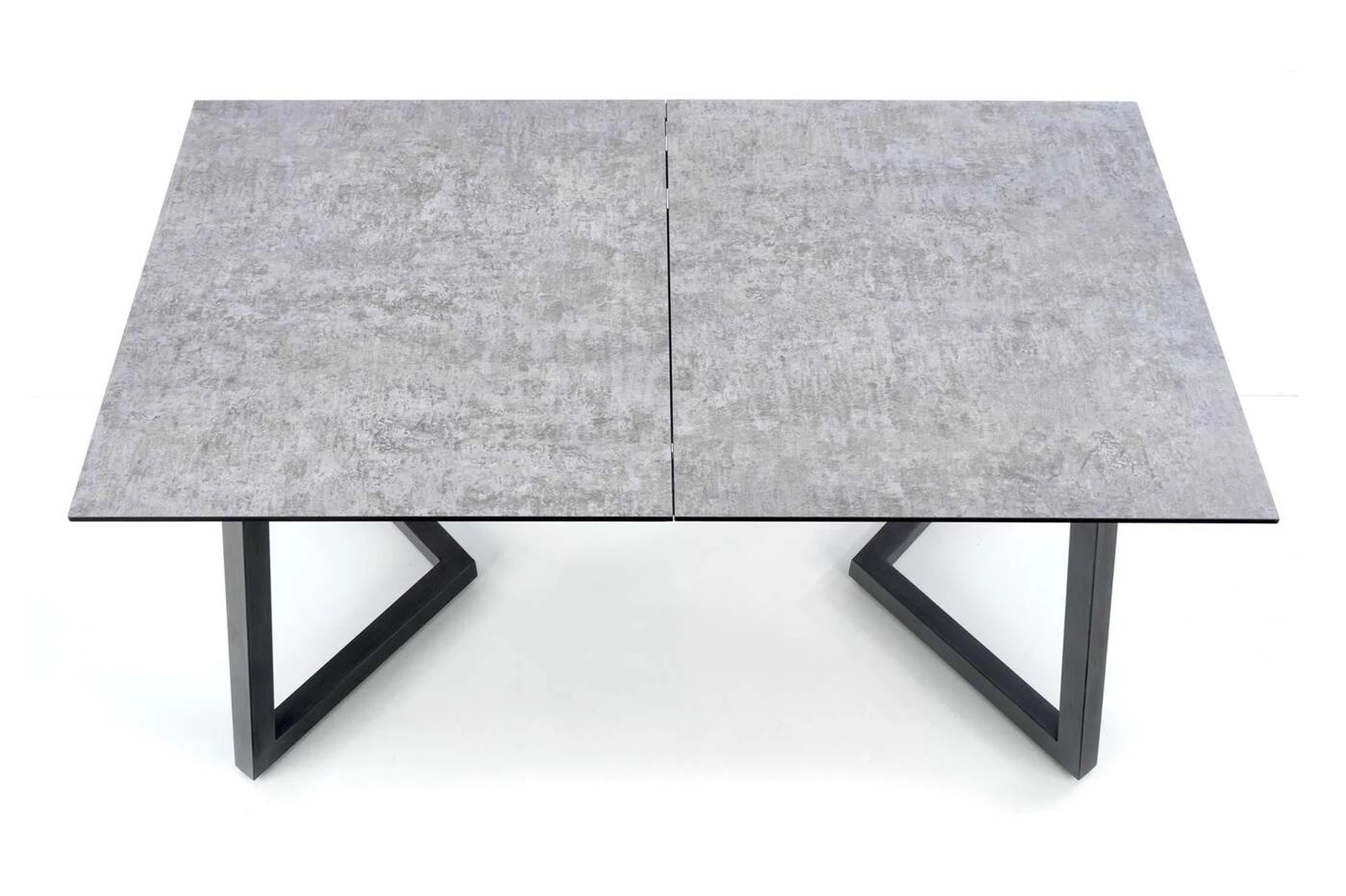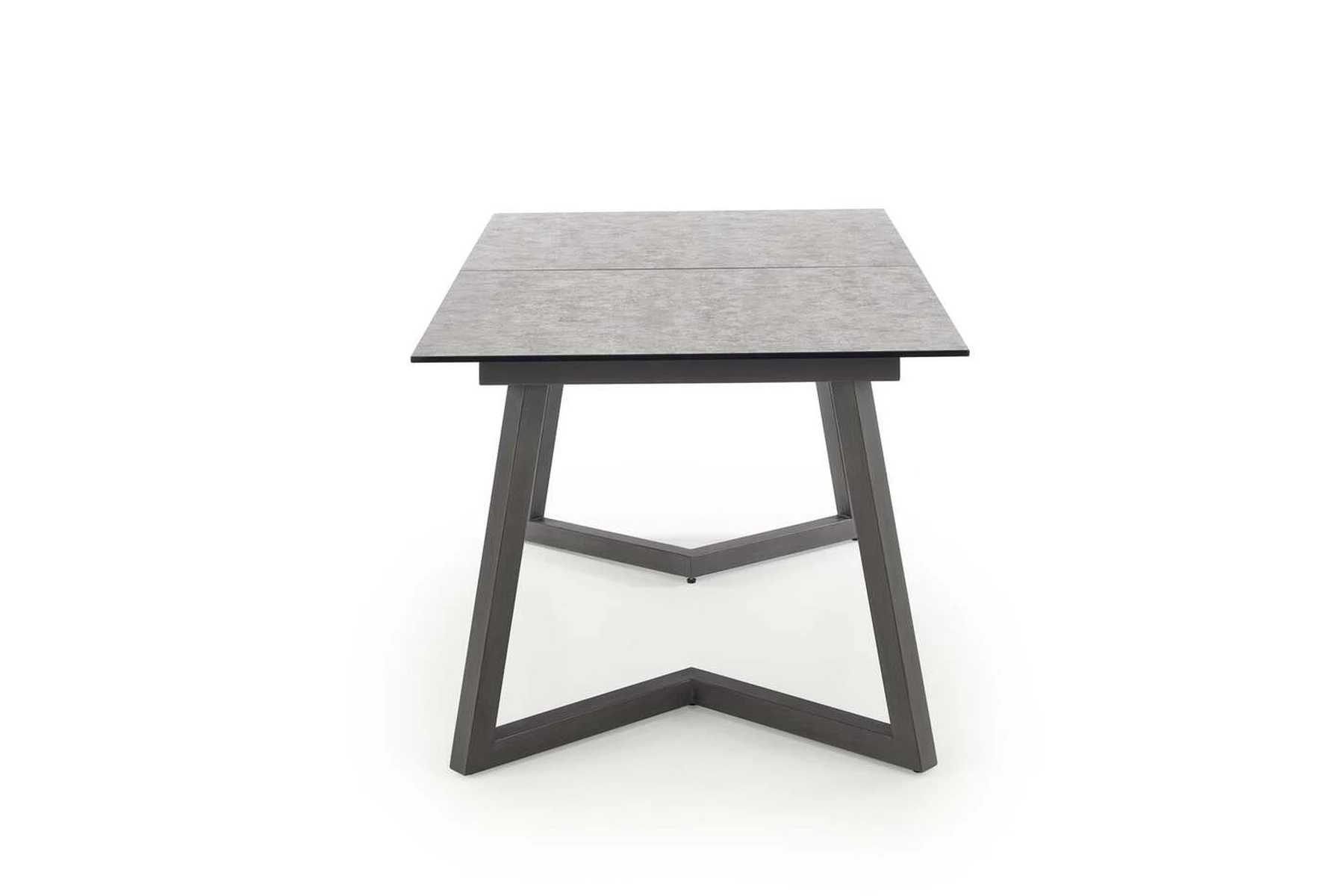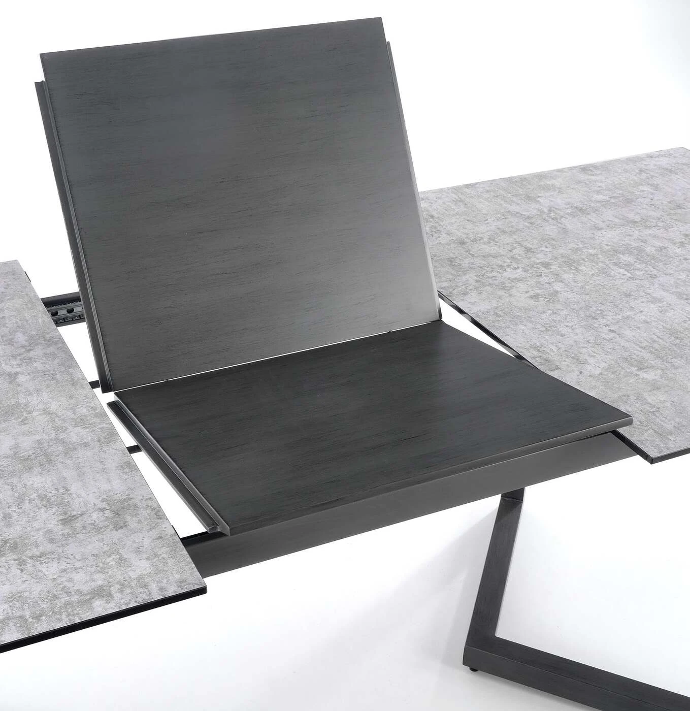 prailginamasis stalas, matmenys: 160-210/90/76 cm, medžiaga: stiklas / lakuotas MDF / milteliniu būdu dažytas plienas, spalva: viršus - šviesiai pilka / tamsiai pilka, kojos - tamsiai pilka